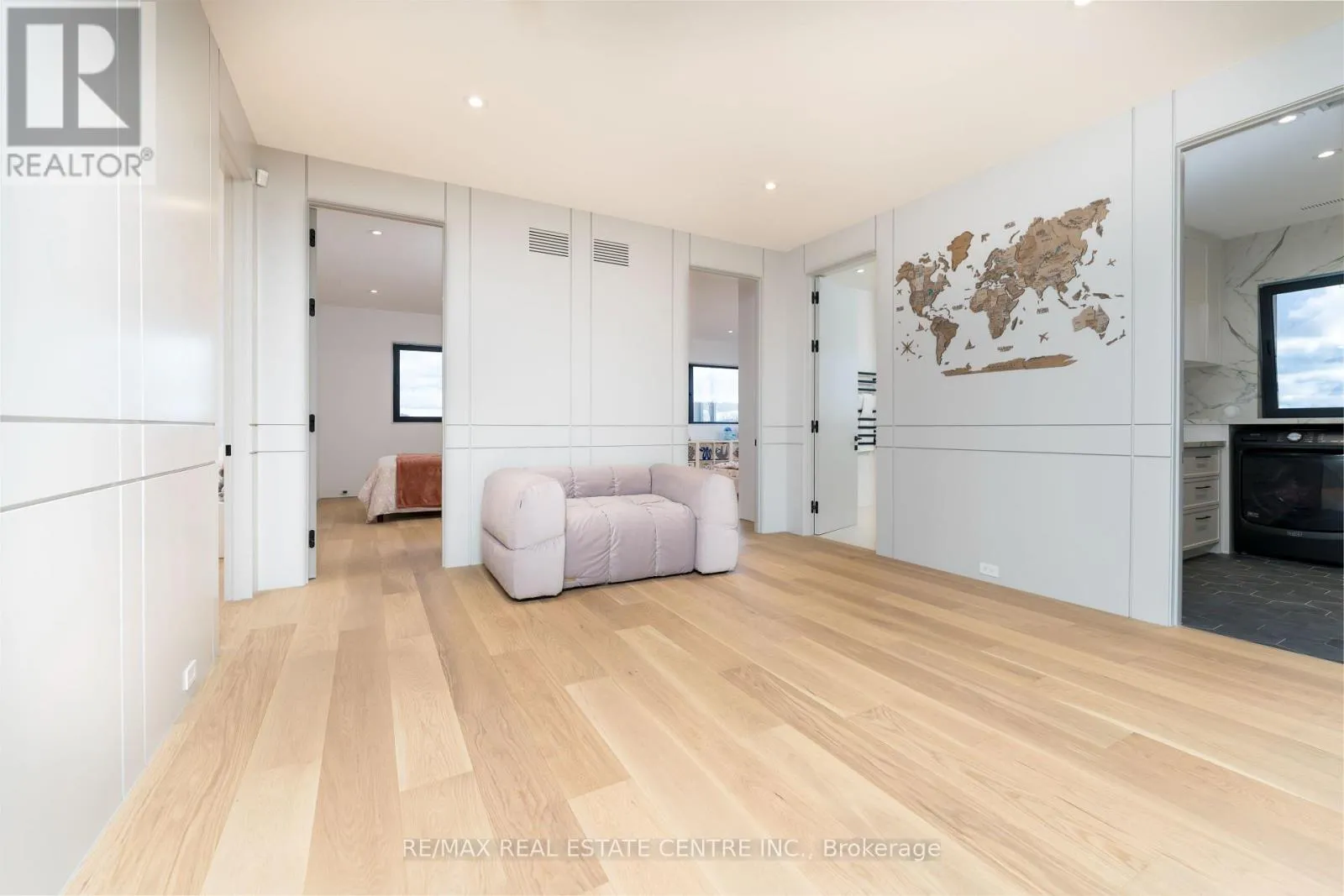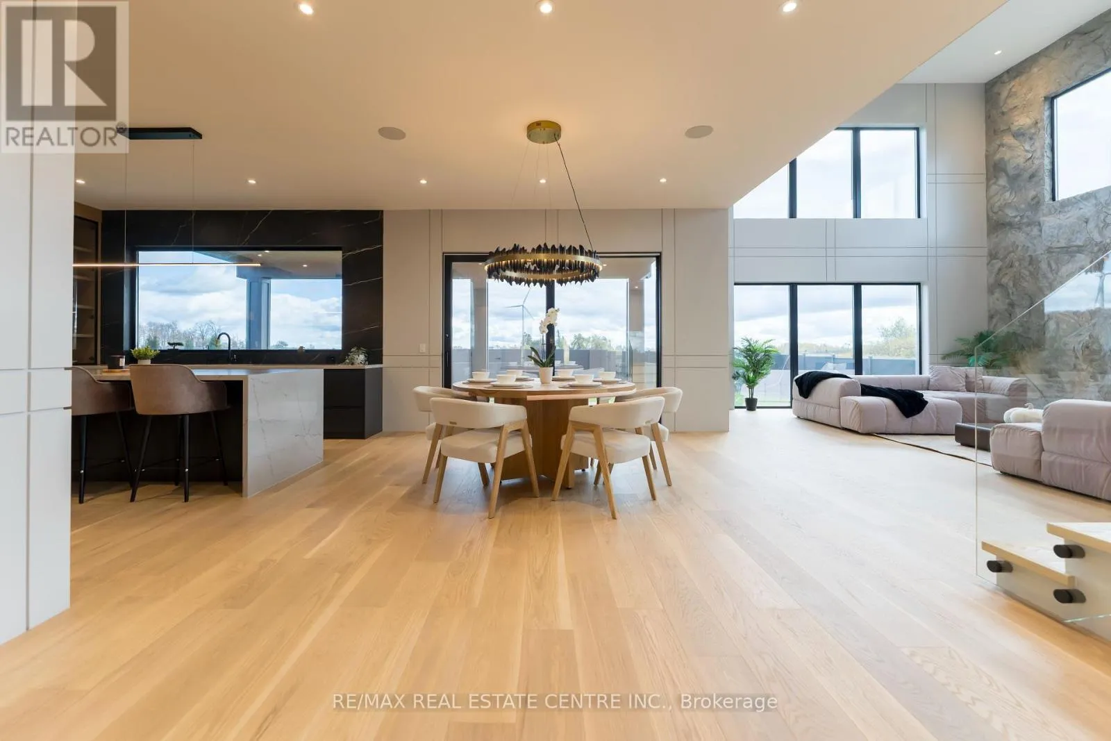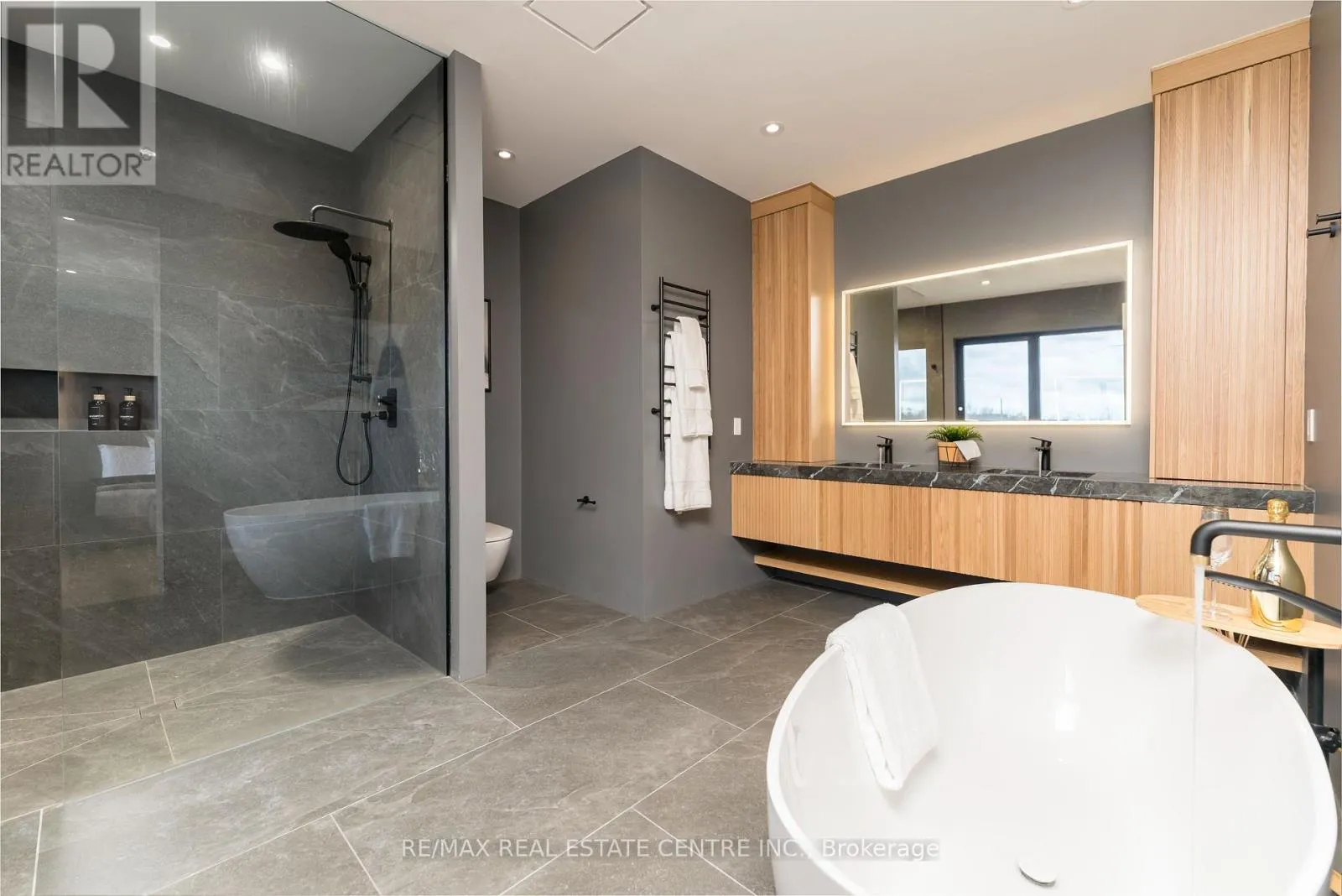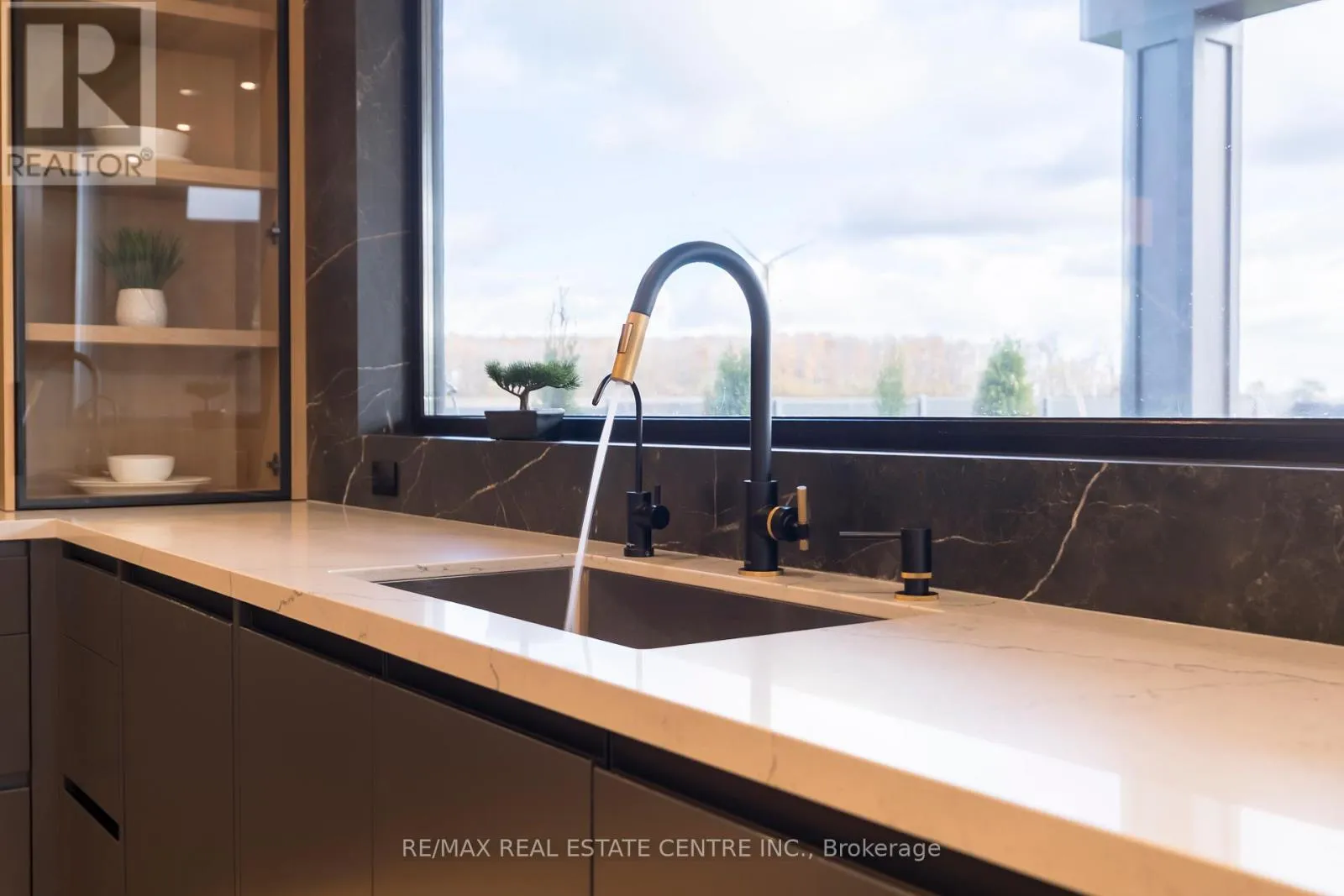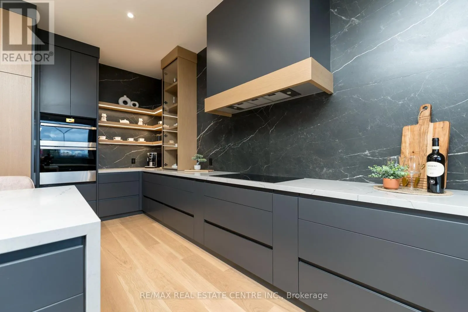 Cross Streets: Hwy 89 & 8th Line. ** Directions: Hwy 89 to 8th Line. Modern Luxury on 2.5 Acres. Discover the epitome of sophistication and architectural excellence. Completed in 2025, this 3,240 sq ft. super-modern luxury estate is a flawless fusion of European design, cutting-edge technology, and elegance-set on 2.5 acres of landscaped privacy. Step inside through grand 8-ft doors and be greeted by 10-ft ceilings, sleek black-framed triple-pane windows, and a dramatic 20-foot rock feature wall with mountain-inspired character. The showstopping grand staircase, adorned with glass railings and in-floor lighting is breathtaking The chef's kitchen is a masterpiece of function and style-featuring quartz waterfall countertops, porcelain backsplash, JennAir appliances, an induction cooktop, and hidden fridge dishwasher for a seamless aesthetic. Integrated cabinet handles, MDF wall paneling, and a walk-in pantry elevate the design. The living space flows outdoors to a covered composite deck and outdoor kitchen, overlooking a backyard with aluminum composite fencing, fire pit with Muskoka chairs, and a dug pond-creating an entertainer's dream. Every element of comfort has been considered-from heated floors and on-demand hot water, to 3 heat pumps, propane furnace, and full spray foam insulation. A Generac generator ensures whole-home reliability. The heated garage is a showpiece featuring epoxy floors, finished ceiling, electric car charger rough-in, and walkout through a custom mudroom. A detached 18'x40' workshop adds additional space for projects or storage. Luxury continues with built-in speakers, full security system, Ring doorbell, Ecobee thermostat, exterior timed lighting, and reflective window film for privacy and efficiency. The primary suite defines modern indulgence with a walk-behind custom closet, built-in organizers, heated shower floors, and wall-mount toilets with flush-mount floor and wall vents. From the composite siding to the magnetic door latches, every inch of this home reflects premium quality and forward-thinking. (id:27476)