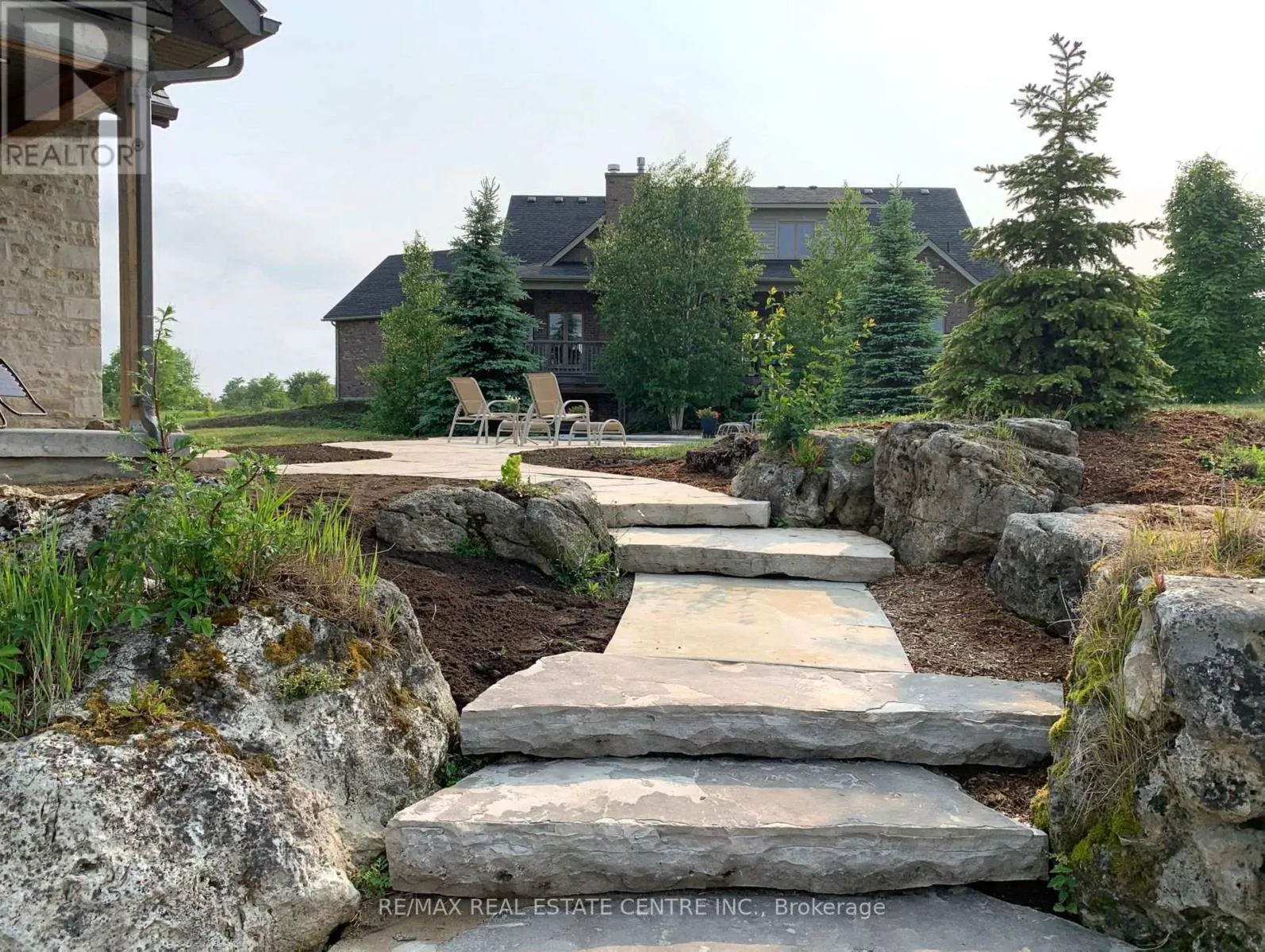 Cross Streets: Cty Rd 109 and 8th line. ** Directions: North on 8th Line from Cty Rd 109. Stunning custom built country estate home on 30 acres of peace, privacy and tranquility. Located just west of Orangeville with easy access to major highways. Features quality workmanship and materials top to bottom. Roof updated (new shingles) October 2025. Extensive landscaping, pool, hot tub, pool house and patios. Chef's delight kitchen with center island overlooking front gardens. Lots of counterspace for the gourmet. Formal living and dining rooms. Cosy and comfortable great room with propane fireplace overlooking the rear grounds and surrounding countryside with walkout to the deck overlooking the pool, hot tub and pool house. Handy main floor laundry and 2 piece powder room with entrance to the garage and front patio. Main floor primary suite with walkin closet and spa like 4 piece ensuite. Upper level features two sun filled bedrooms and a 4 piece bath. Lower level recreation area features a unique stone/brick wood burning fireplace and a walkout to the patio overlooking the pool area. In floor heating in lower level. Ideal set up for inlaw suite or casual entertaining. 26' x 42' handy man shop with separate driveway and well. Suitable for home occupation business. Rogers Fibre optic internet available. Possibility for second dwelling on property (Township of Amaranth). Central metering hydro. 2 wells. This lovely home is built with pride of ownership and has been lovingly maintained and updated by original owners. (id:27476)
