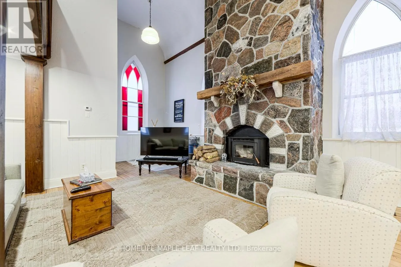 Cross Streets: Church St. ** Directions: Hwy 109 to 10th Line to Waldemar. Corner of Church and Mill St. Welcome to 10 Mill Street in the beautiful Hamlet of Waldemar. This remarkable 1887 church conversion offers exceptional flexibility for multi-generational living across its thoughtfully designed multi-level layout. With 5 bedrooms and 4 bathrooms, the home provides generous shared spaces along with private retreats for families of all sizes. The main floor features a dramatic 17-ft granite fireplace, an inviting open-concept living area, and a spacious gourmet kitchen ideal for everyday living and entertaining. The upper levels include three bedrooms and a private third-level suite, offering comfort and separation for growing or blended households. The lower level presents a complete two-bedroom in-law suite with its own kitchen, wood-burning fireplace, and separate entrance-perfect for extended family, guests, or those seeking additional independent space. Set on a 46 * 143 ft corner lot with greenbelt views, the property also includes a detached two-car garage with a heated basement, a double-wide drive, and parking for up to six vehicles. With over 2,400 sq. ft. of finished living space and close proximity to Orangeville, Grand Valley, and major commuter routes, this unique residence blends character, versatility, and convenience in a sought-after rural community. (id:27476)