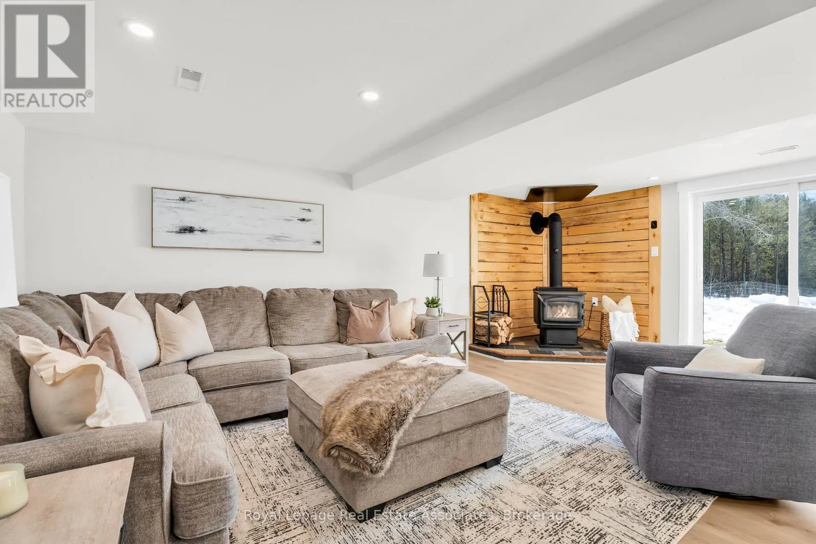 County Rd 11 & 25th Sideroad Welcome to your private country retreat, fully renovated, beautifully finished & truly move-in ready. This tastefully updated raised bungalow sits on a serene 1.82-acre lot, offering the perfect blend of modern comfort & peaceful rural living.Step inside & instantly appreciate the more than $250,000 in upgrades. The main level showcases luxury vinyl plank flooring, pot lights throughout & fresh paint (2026). The stunning new kitchen features quartz countertops, under-cabinet lighting, a stylish backsplash & brand-new stainless steel appliances, all flowing seamlessly into the open-concept living & dining areas.Walk out to the spacious deck, complete with a propane BBQ hookup & picturesque views of mature trees and rolling hills.The main level offers 2 generously sized bedrooms, including a spacious primary suite with a walk-in closet & custom built-ins, plus a beautifully updated 3-piece bathroom.The fully finished lower level expands your living space with a large family room centered around a wood-burning stove, a walkout to the backyard, a third bedroom & a modern 3-piece bathroom with a stand-up shower. The upgraded laundry room includes new cabinetry & a new washer/dryer.Extensive mechanical & exterior updates offer complete peace of mind: New furnace, heat pump, Triple-pane windows & new entry doors (all completed 2024), New siding on house, shed & garage, New roof on house & garage and new driveway (all completed in 2025), Owned hot water tank, updated electrical with Generlink (2026), Advanced water system: UV lights, reverse osmosis, water softener (2023)Car enthusiasts & hobbyists will love the fully renovated heated garage with a 100-amp panel, plus a third unheated garage-perfect for storing tools, toys, or equipment.Located just 5 minutes from Shelburne & 15 minutes from Orangeville, you'll enjoy peaceful country living with easy access to shopping, amenities & conveniences. This exceptional property offers country living without compromise. (id:27476)