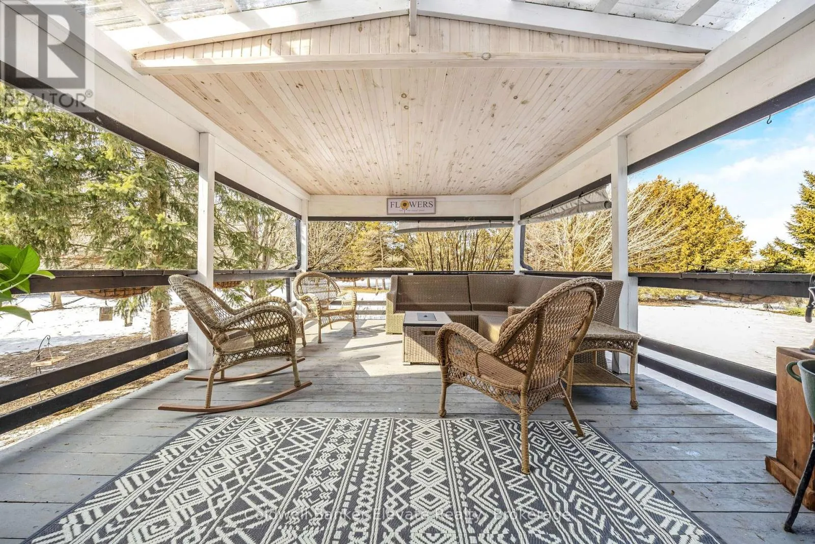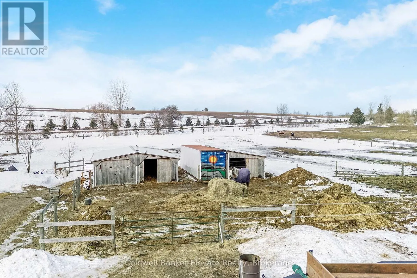Cross Streets: Hwy 109/10th Line. ** Directions: 10th Line, North of Hwy 109, South of Side Rd 5. Renovated from top to bottom, this perfect family home is set on 13+ scenic acres across from the Grand River with more than 10 acres of fenced paddocks, a versatile three-stall barn with tack room & direct access to the Upper Grand Trailway! This property is ideal for those looking to bring their horses home, or anyone seeking space, tranquility and room to roam. Thousands spent on upgrades!! This four-bedroom home has it all and is waiting for you! Classic centre hall plan with fresh paint and all new wide plank hardwood flooring throughout including the brand-new staircase! Bright, spacious living areas create an inviting atmosphere for everyday living & entertaining with stylish kitchen, granite countertops, shaker-style cabinetry, tile backsplash and all new appliances! The open concept kitchen features sit-up breakfast bar & walkout to a cozy covered screened-in porch overlooking the private yard of mature trees & perennial gardens. A warm, inviting family room features floor-to-ceiling fireplace with new wood-burning insert, creating the perfect gathering space. The main floor is completed by formal living & dining rooms, a convenient laundry room, & mudroom with direct garage access. Upstairs includes a spacious primary retreat with walk-in closet, built-in storage & makeup vanity along with a new three-piece ensuite with glass walk-in shower. Three additional bedrooms - one used as a den - and a full 4-piece family bathroom round out the upper level. The finished lower level provides flexibility with a large recreation room, music and sewing room, & above grade windows! Long-paved driveway with tons of parking to the oversized double garage with epoxy floors. Enjoy this peaceful setting backing onto the trails in the cute little Hamlet of Waldemar. Major updates completed in 2019, include siding, soffits, fascia, windows, furnace, air conditioning & more! This move-in ready country property is just steps from nature & only a 15-minute drive to Orangeville. (id:27476)
