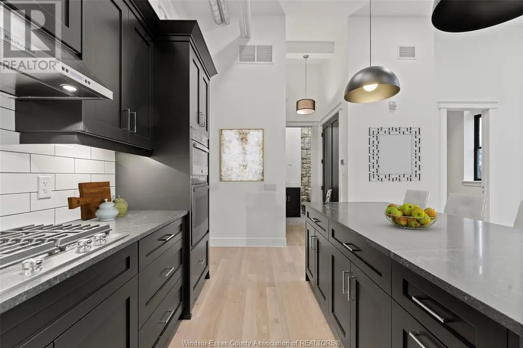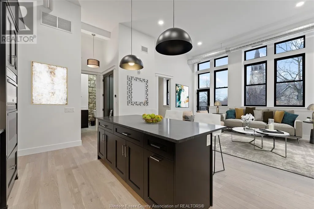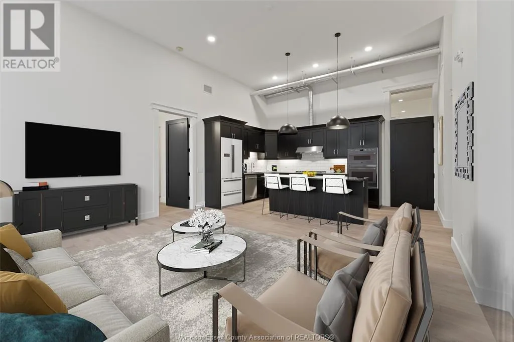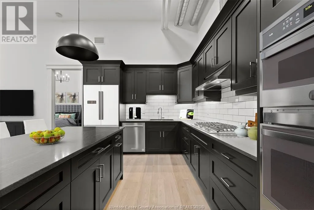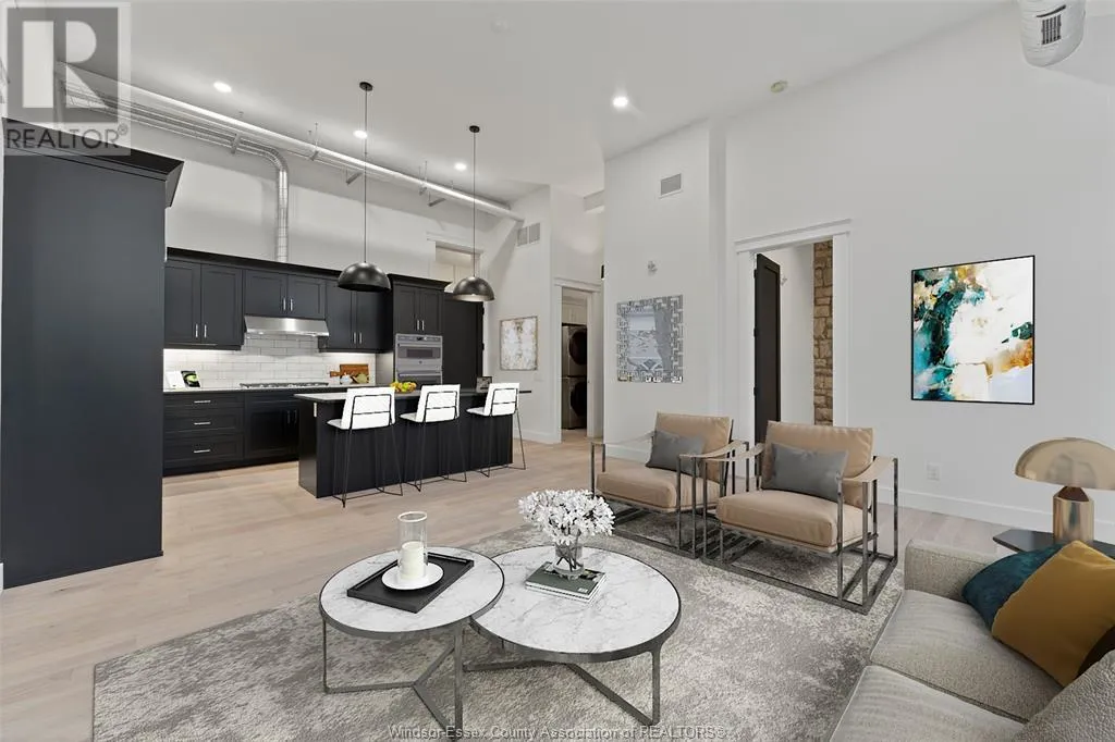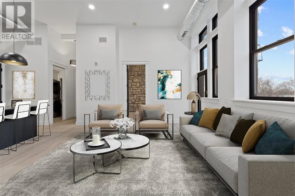 2.99% FINANCING NOW AVAILABLE FOR A 3 YEAR TERM. CONDITIONS APPLY, WELCOME TO THE 1405 SQFT CAPTAIN MODEL AT THE HIGHLY ANTICIPATED LOFTS AT ST. ANTHONY. ENJOY THE PERFECT BLEND OF OLD WORLD CHARM & MODERN LUXURY WITH THIS UNIQUE LOFT STYLE CONDO. FEATURING GLEAMING ENGINEERED HARDWOOD FLOORS, QUARTZ COUNTER TOPS IN THE SPACIOUS MODERN KITCHEN FEATURING LARGE CENTRE ISLAND AND FULL APPLIANCE PACKAGE. 2 SPACIOUS BEDROOMS COMPLETE WITH PRIMARY SUITE WITH WALK IN CLOSET AND BEAUTIFUL 5 PIECE ENSUITE BATHROOM. IN SUITE LAUNDRY, BRIGHT AIRY LIVING ROOM WITH PLENTY OF WINDOWS. PRIVATE BALCONY WITH BBQ HOOKUP. THIS ONE OF A KIND UNIT FEATURES SOARING CEILINGS & PLENTY OF ORIGINAL EXPOSED BRICK AND STONE, SITUATED IN A PRIME LOCATION WALKING DISTANCE TO ALL AMENITIES INCLUDING AMHERSTBURG'S DESIRABLE DOWNTOWN CORE. DON'T MISS YOUR CHANCE TO BE PART OF THIS STUNNING DEVELOPMENT. (id:27476)