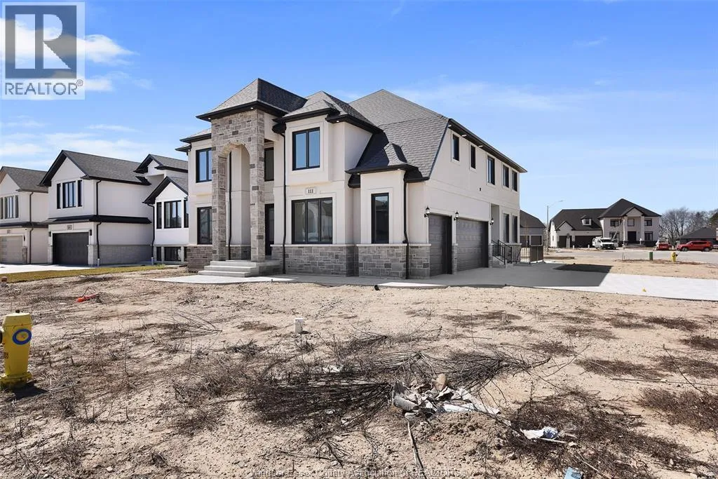 Welcome to 111 Bonnet, a brand new, 2 storey spacious home(3,075 sq.ft)that is sure to impress. Enter through the double front doors and you will find a bright living room with 17ft ceilings and gas fireplace, a den/office, an inviting dining room with access to a covered patio, a functional kitchen with w/ quartz counter tops, and a 4 PC bath. The second story offers two suites each with an ensuite bath, a laundry room and a 4 pc bath. 3 car garage, unfinished basement and finished driveway. (id:27476)