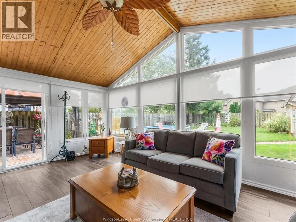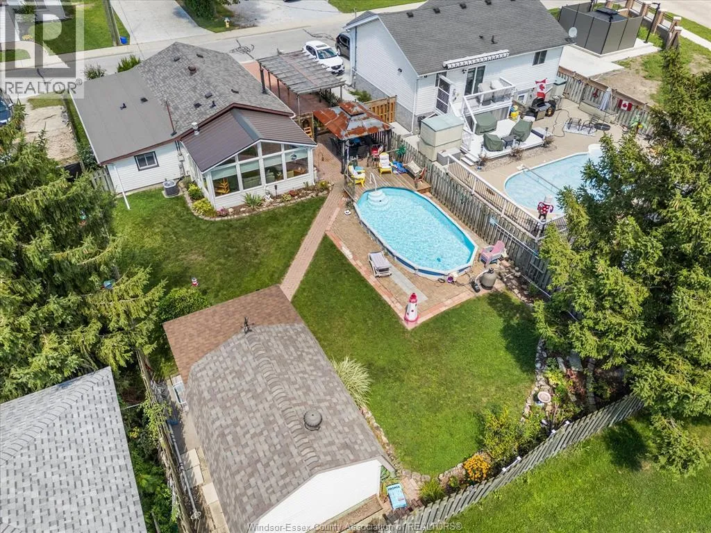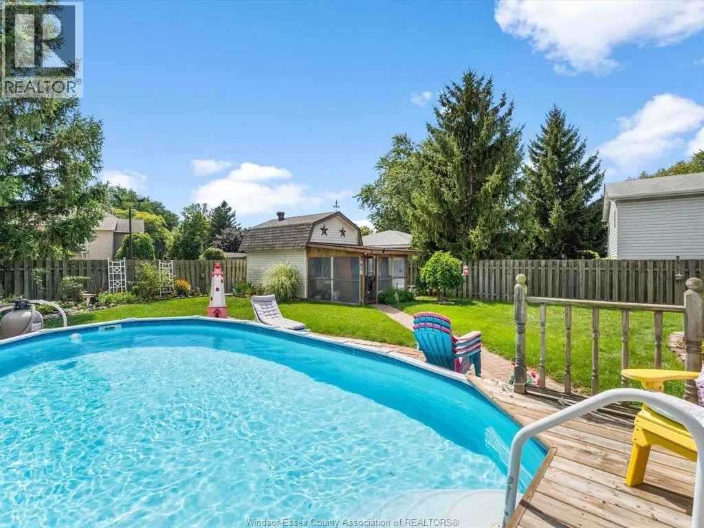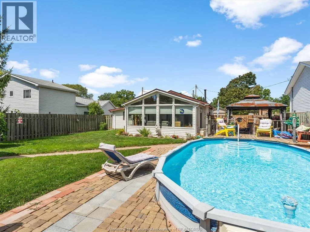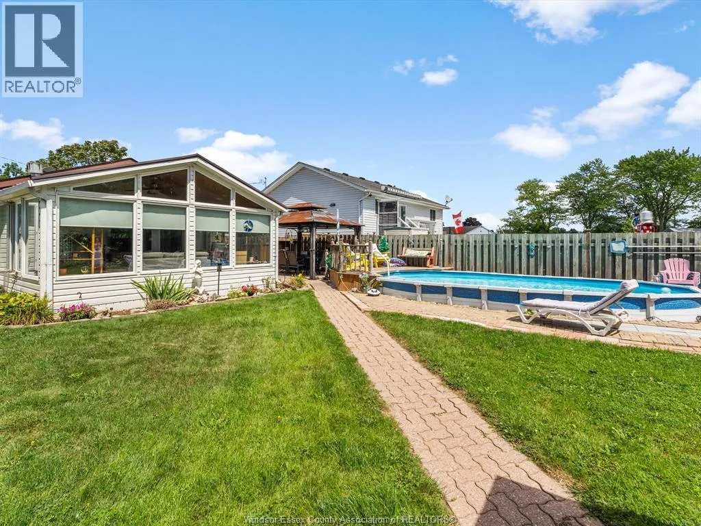 Pride of ownership is evident throughout this beautifully maintained home, located in beautiful Amherstburg- one of the safest places to live in Canada! Located in a quiet neighbourhood with walking distance to shopping and close to 3 schools. This home is approximately 1,050 sq. ft. on the main floor with 3 bedrooms and 1.5 bathrooms. The kitchen is designed with abundant cabinetry and comes refinished and complete with updated stainless steel appliances, including fridge, stove, dishwasher, and microwave range hood, plus a separate eat-in area. The inviting living room features a cozy gas fireplace, complemented by updated vinyl windows. A stunning four-season sunroom addition, complete with a gas fireplace, opens to a peaceful backyard retreat. Enjoy summer days with the on-ground pool, gazebo, and a large storage shed perfect for a man cave, with hydro and its own sunroom. Recent updates include a new roof, new pool filter, new sump pump all for peace of mind. This property is a perfect blend of comfort and functionalityâyou wonât want to miss it! (id:27476)