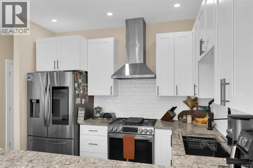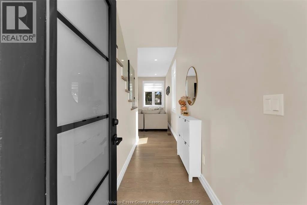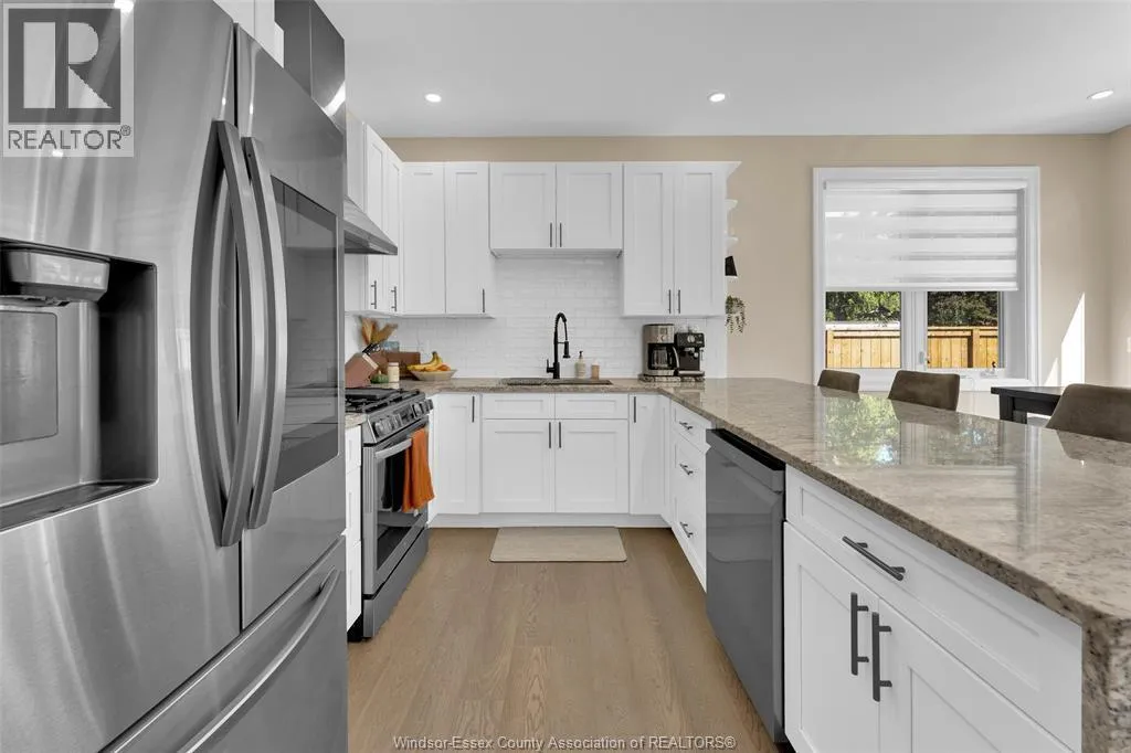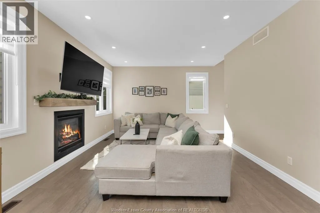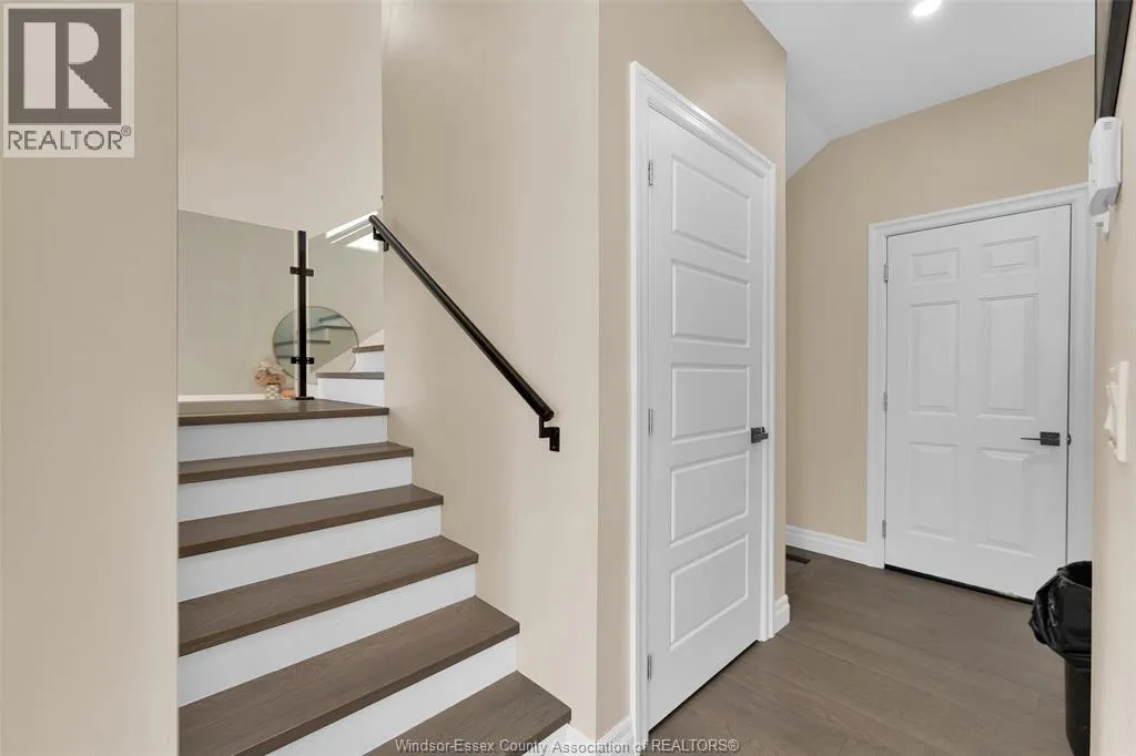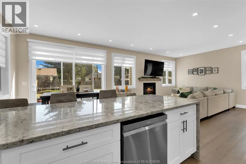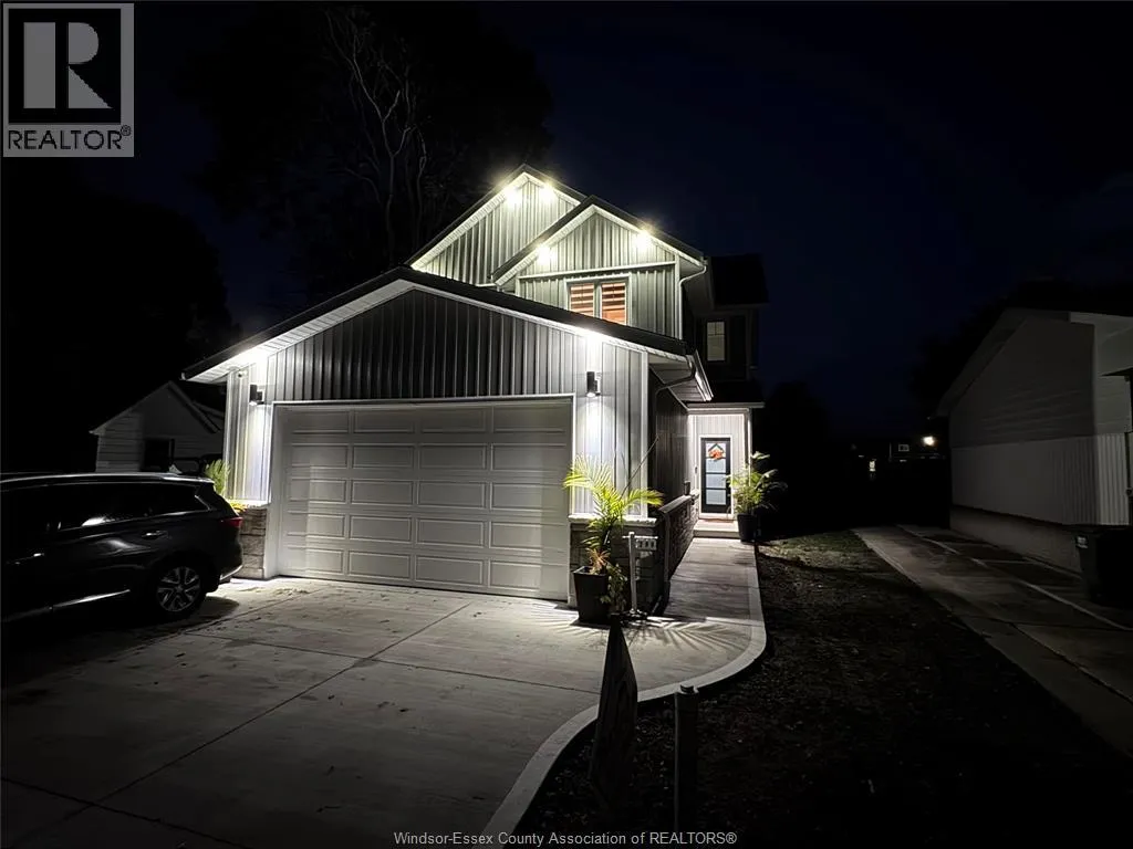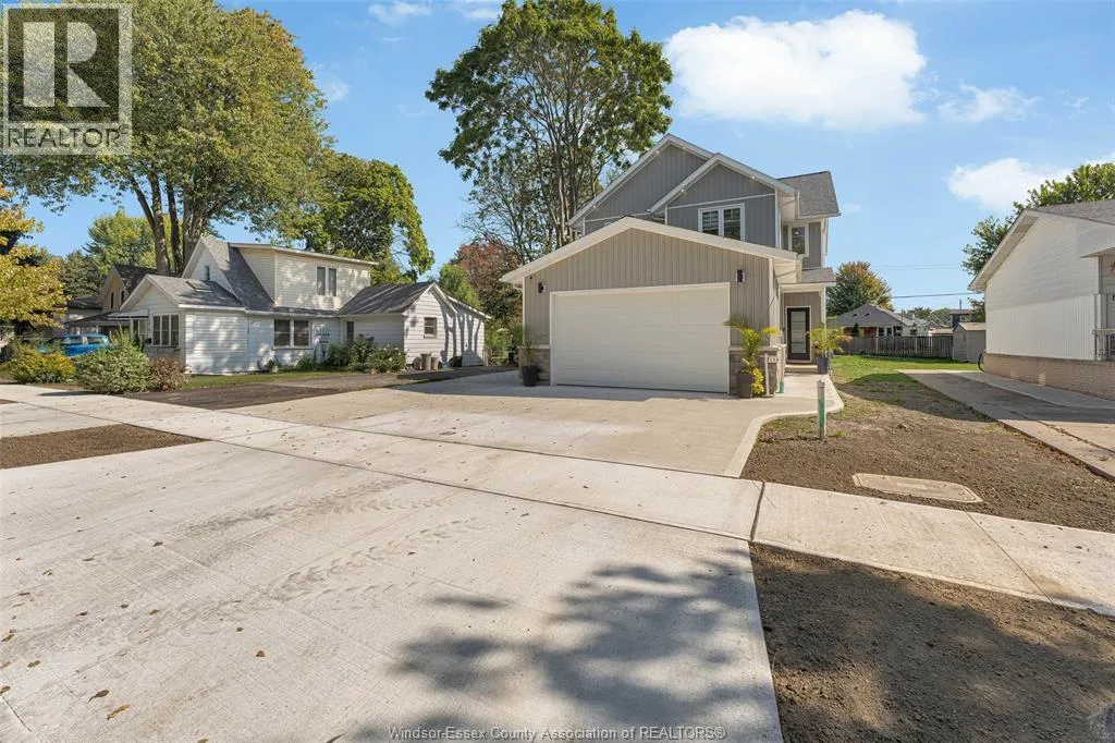 Custom built in 2023, this stunning 2-storey Amherstburg home offers 3+1 bedrooms, 2.5 baths, and an attached double garage with 1,727 SQFT of above-grade living space plus a mostly finished basement featuring an additional bedroom with large window, spacious living area, and bathroom rough-in. The exterior showcases stone wainscot detailing, board-and-batten with vinyl siding, new privacy fence (2025) along north side of yard, and paved triple-wide driveway, walkways and rear patio (front drive parks 3 cars wide comfortably). Inside, youâll find engineered hardwood floors, custom glass railings, second-floor laundry and a modern kitchen with waterfall-edge granite countertops, gas stove, all new (2023) appliances and oversized sliding patio doors leading to paved rear patio. The primary suite boasts a walk-in closet and spa-style 5-piece ensuite. The home has a sump pump with battery back-up system & backflow valve. Located walking distance to vibrant downtown Amherstburg waterfront, walking trails, restaurants, shops & more. This block of George Street is just recently completely redone; sewers, road, sidewalks, boulevard sod all brand new! (id:27476)