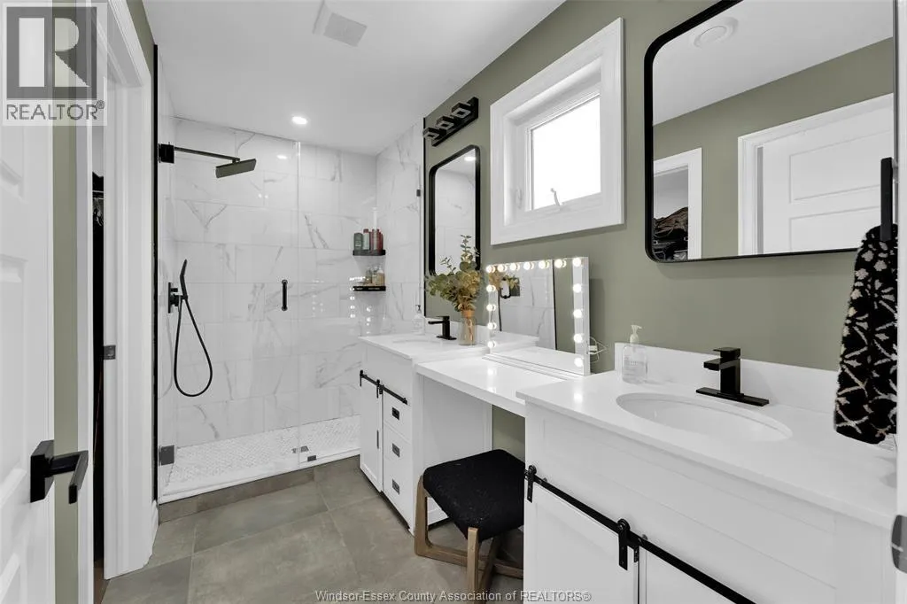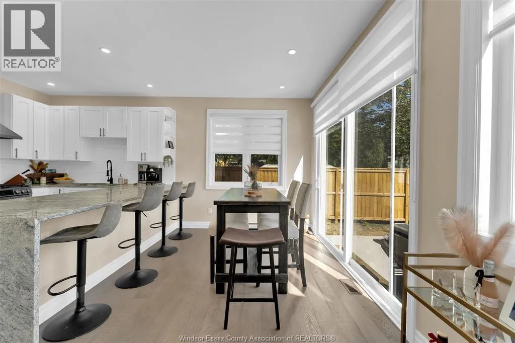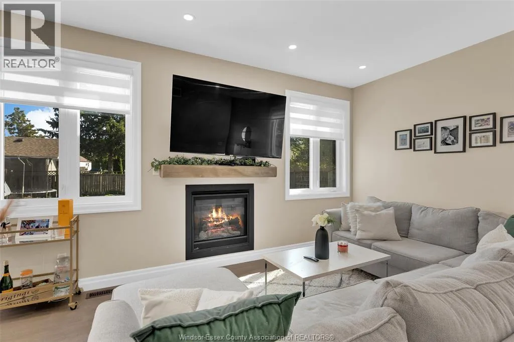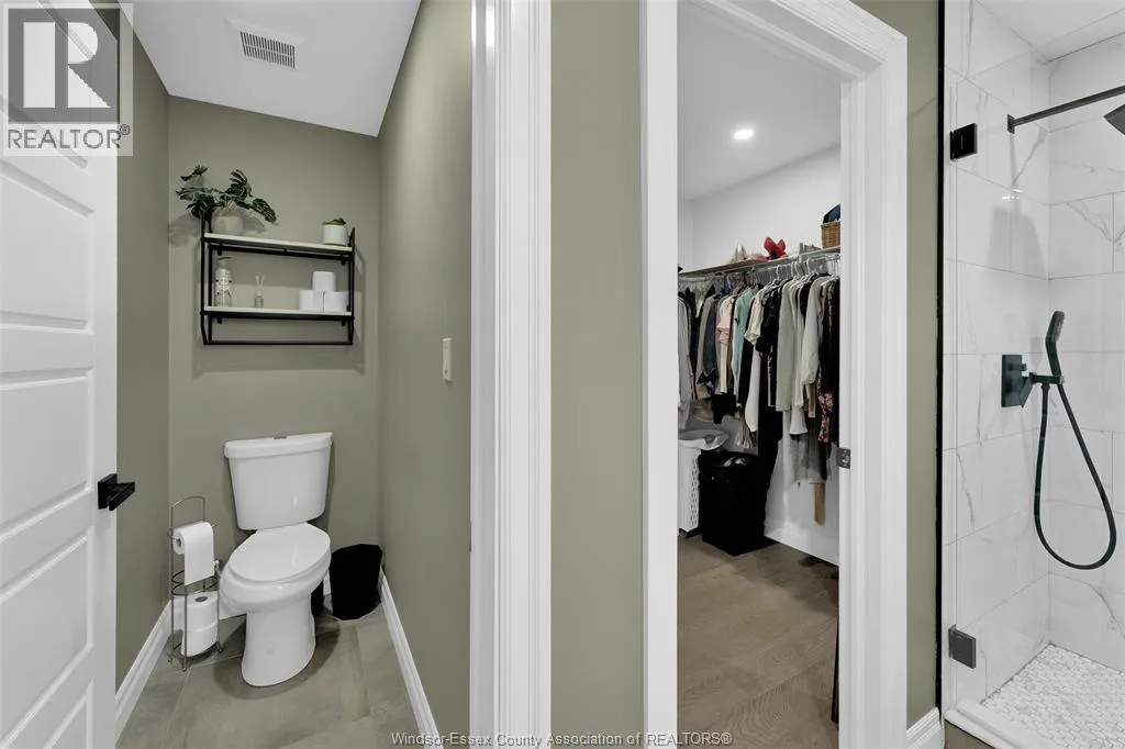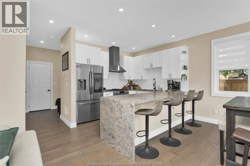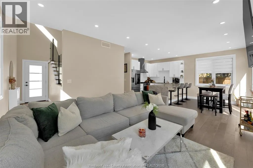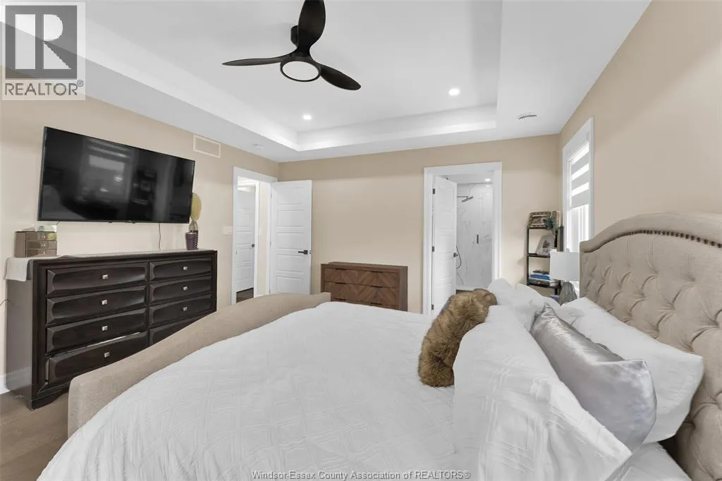 Custom built in 2023, this stunning 2-storey Amherstburg home offers 3+1 bedrooms, 2.5 baths, and an attached double garage with 1,727 SQFT of above-grade living space plus a mostly finished basement featuring an additional bedroom with large window, spacious living area, and bathroom rough-in. The exterior showcases stone wainscot detailing, board-and-batten with vinyl siding, new privacy fence (2025) along north side of yard, and paved triple-wide driveway, walkways and rear patio (front drive parks 3 cars wide comfortably). Inside, youâll find engineered hardwood floors, custom glass railings, second-floor laundry and a modern kitchen with waterfall-edge granite countertops, gas stove, all new (2023) appliances and oversized sliding patio doors leading to paved rear patio. The primary suite boasts a walk-in closet and spa-style 5-piece ensuite. The home has a sump pump with battery back-up system & backflow valve. Located walking distance to vibrant downtown Amherstburg waterfront, walking trails, restaurants, shops & more. This block of George Street is just recently completely redone; sewers, road, sidewalks, boulevard sod all brand new! (id:27476)
