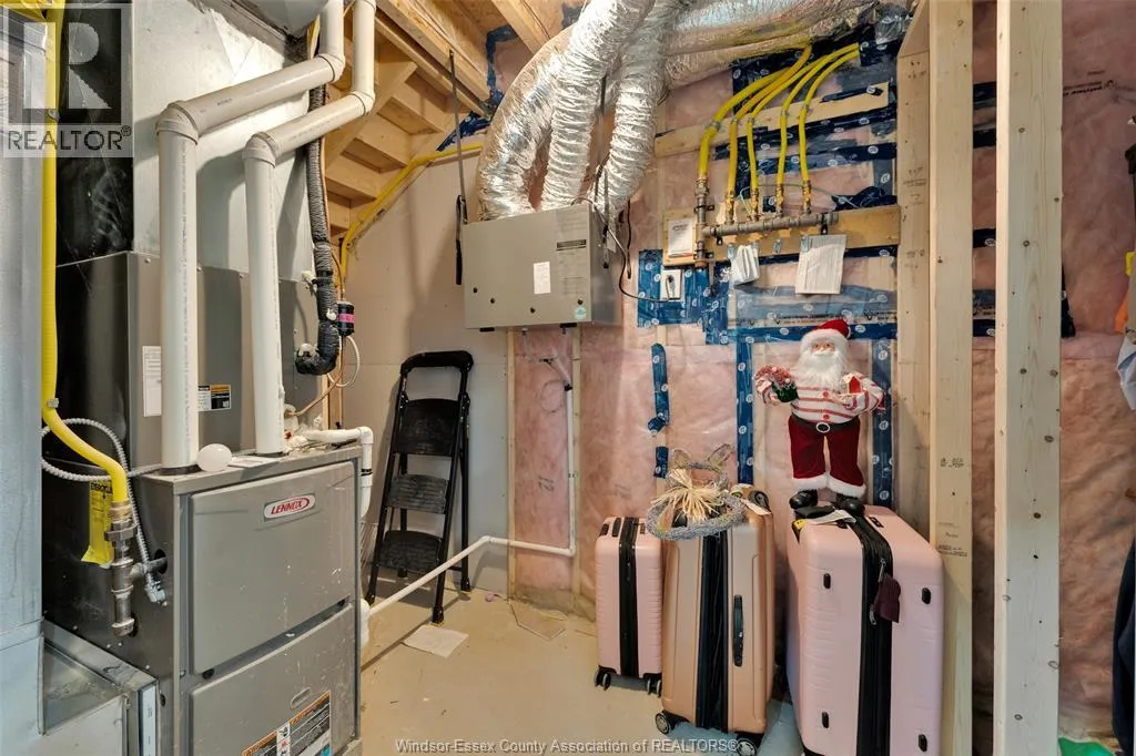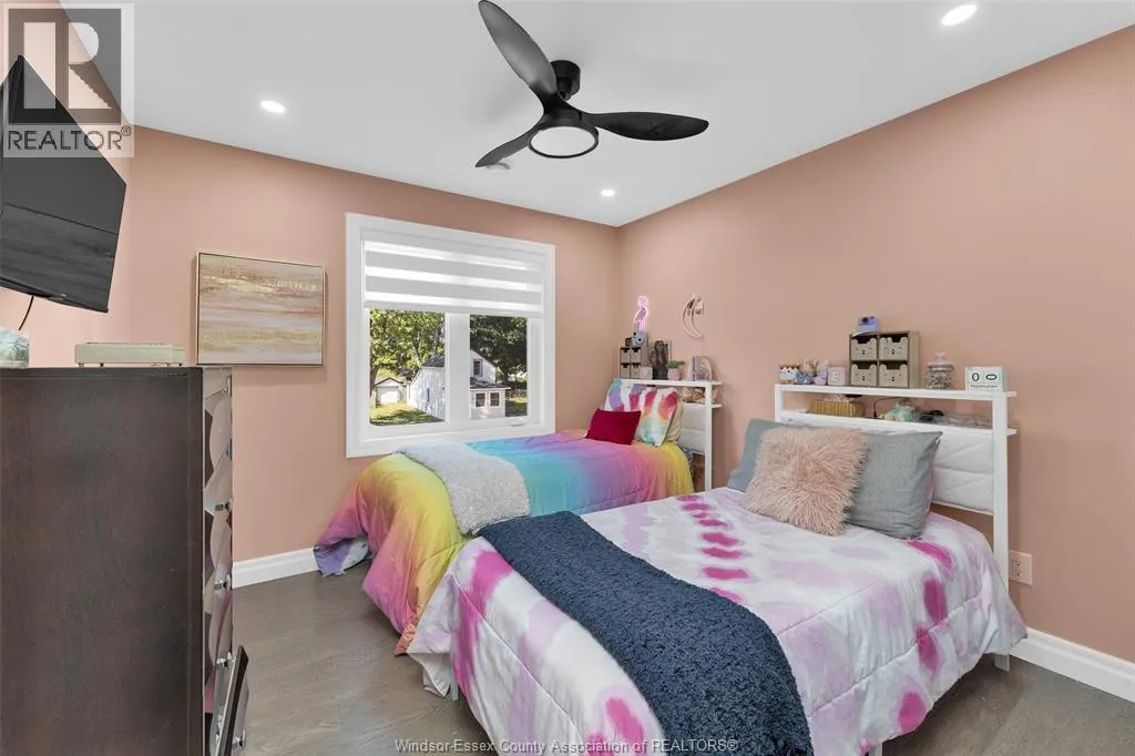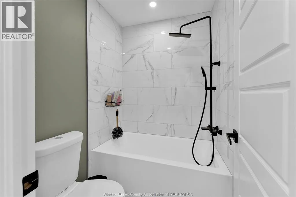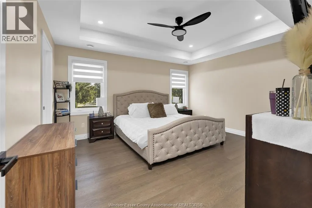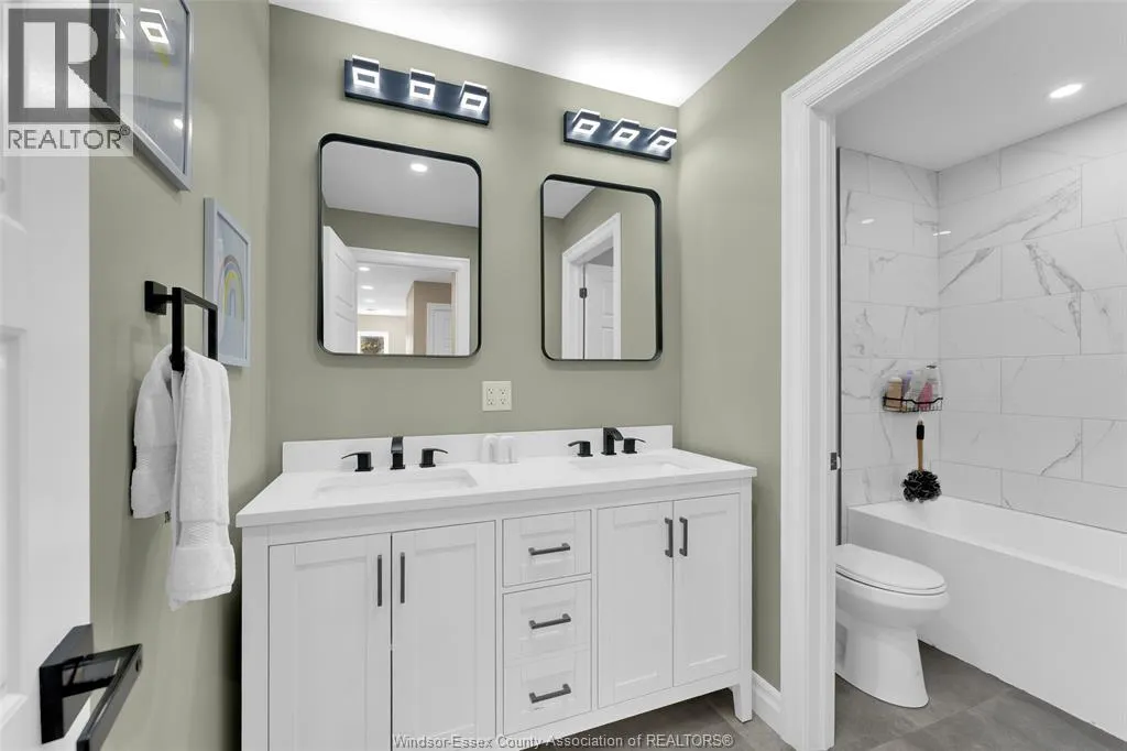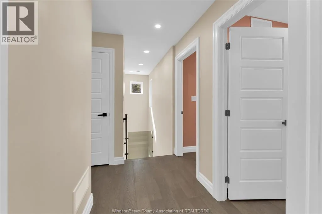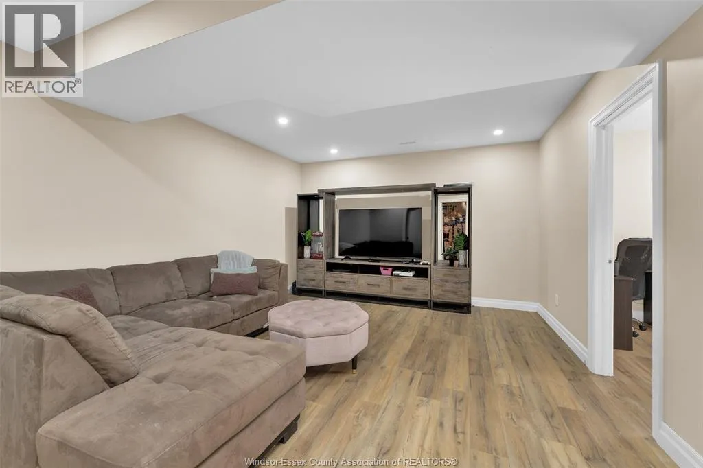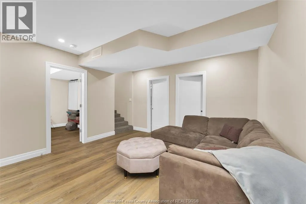 Custom built in 2023, this stunning 2-storey Amherstburg home offers 3+1 bedrooms, 2.5 baths, and an attached double garage with 1,727 SQFT of above-grade living space plus a mostly finished basement featuring an additional bedroom with large window, spacious living area, and bathroom rough-in. The exterior showcases stone wainscot detailing, board-and-batten with vinyl siding, new privacy fence (2025) along north side of yard, and paved triple-wide driveway, walkways and rear patio (front drive parks 3 cars wide comfortably). Inside, youâll find engineered hardwood floors, custom glass railings, second-floor laundry and a modern kitchen with waterfall-edge granite countertops, gas stove, all new (2023) appliances and oversized sliding patio doors leading to paved rear patio. The primary suite boasts a walk-in closet and spa-style 5-piece ensuite. The home has a sump pump with battery back-up system & backflow valve. Located walking distance to vibrant downtown Amherstburg waterfront, walking trails, restaurants, shops & more. This block of George Street is just recently completely redone; sewers, road, sidewalks, boulevard sod all brand new! (id:27476)
