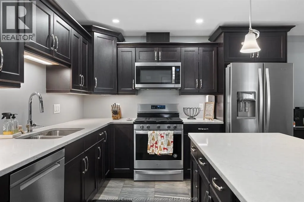 Welcome home, close to all the conveniences in the charming and historic waterfront town of Amherstburg. Built in 2019, this semi has 3 bedrooms and 3 full bathrooms with concrete drive to inside entry one car garage and a fully finished basement! Open concept kitchen to living room and main floor laundry. Primary bedroom with walk in closet and ensuite bath with shower and glass door. Lower level features a flex room, a third bedroom, a full third bathroom with shower, storage space and utilities. Fenced in backyard with extended cement pad and gas line for BBQ. Easy access to bridge and 401, for commuters. Move in ready. (id:27476)