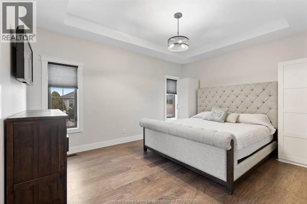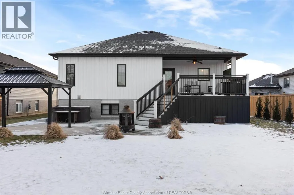 Welcome to 22 Lundy Street in the heart of Amherstburg, an attractive raised ranch built in 2021 with eye-catching curb appeal and upgrades throughout. This well-designed home offers 3+2 bedrooms and a comfortable, functional layout perfect for families or entertainers alike. The open-concept main floor is highlighted by a stunning kitchen featuring a large island, stylish coffee bar, and an abundance of premium upgrades, seamlessly flowing into the living and dining areas. Beautiful flooring runs throughout the home, adding warmth and cohesion to every space. Downstairs, the finished lower level provides additional living space with two bedrooms ideal for guests, a home office, or growing families. Step outside to enjoy the rear covered porch with an upgraded composite deck, overlooking a spacious backyard with an extended concrete patio perfect for outdoor entertaining or relaxing evenings. A move-in-ready home that blends modem style, comfort, and quality craftsmanship. (id:27476)