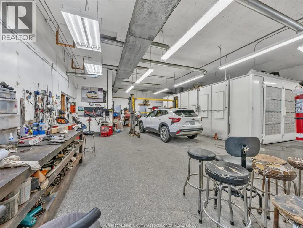 Established body shop for sale on the main road in Amherstburg, directly across from the water with great water views! Move right in to a fully functioning shop, equipped with full garage, hoist, paint shop and all you need to run! Or fantastic opportunity to possibly do low-med-high density residential. (id:27476)