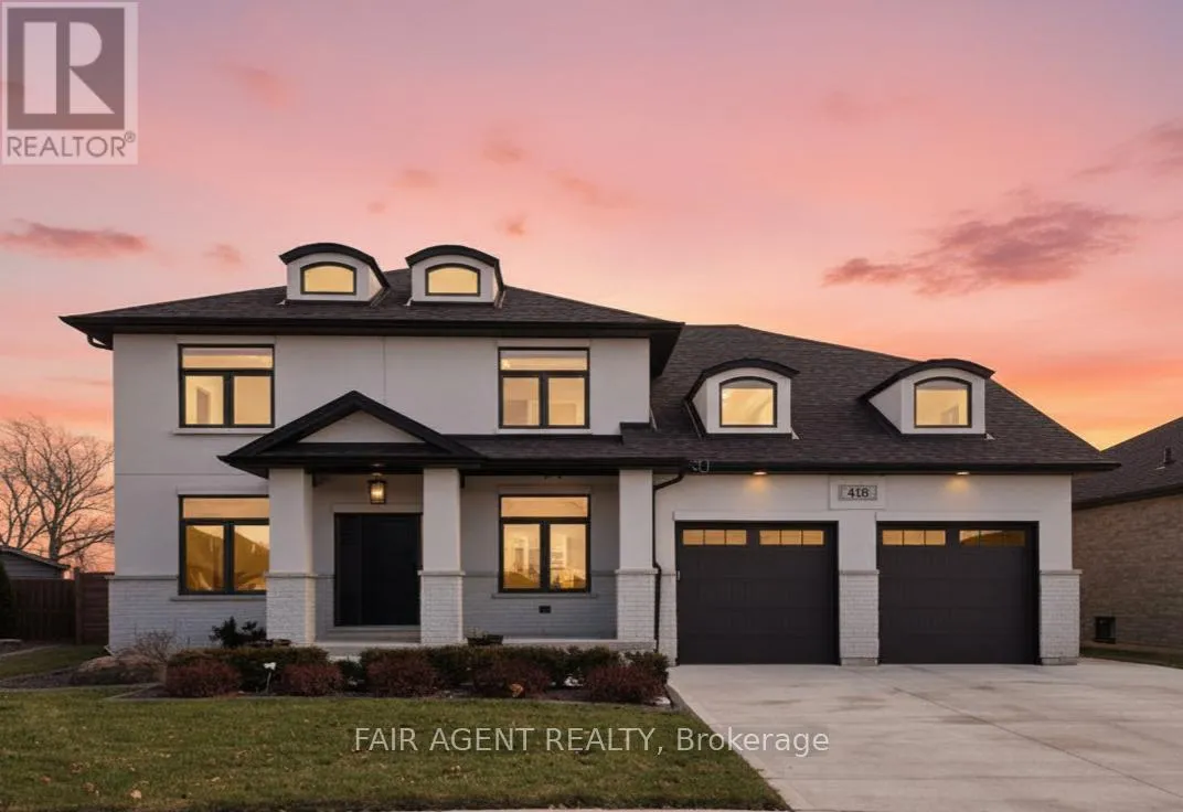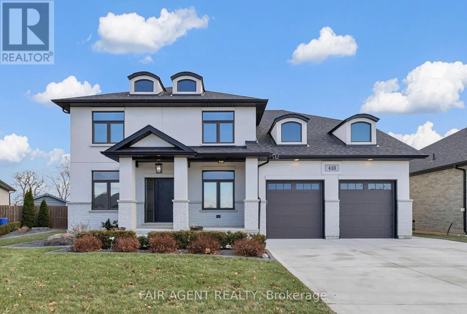 Meadowlew Rd / Pearson St Welcome to 418 Pearson Street, a beautifully maintained two-storey home offering over 2,500 square feet of finished space in one of Amherstburg's most sought-after neighbourhoods. Built in 2020, this 4-bedroom, 4-bathroom property combines modern comfort with thoughtful design, ideal for growing families or those who love to entertain.The main floor features a bright, open-concept layout anchored by a cozy fireplace and generous living and dining areas. The well-equipped kitchen offers ample prep space and flows seamlessly into the heart of the home. A dedicated main-floor office with a built-in Murphy bed adds versatility, doubling as a guest room when needed.Upstairs, you'll find spacious bedrooms and a true primary retreat complete with a luxurious ensuite and plenty of closet space. With four bathrooms in total, including a full bath in the partially finished basement, there's no shortage of comfort and convenience for family and guests alike.Step outside to enjoy your private backyard oasis, complete with a stunning in-ground pool and covered back porch-perfect for lazy summer days or casual evenings with friends. A covered front porch and double garage add both curb appeal and functionality, while an outdoor shed offers additional storage.Located near schools, parks, and the vibrant shops and restaurants, this move-in ready home blends suburban peace with small-town charm. (id:27476)