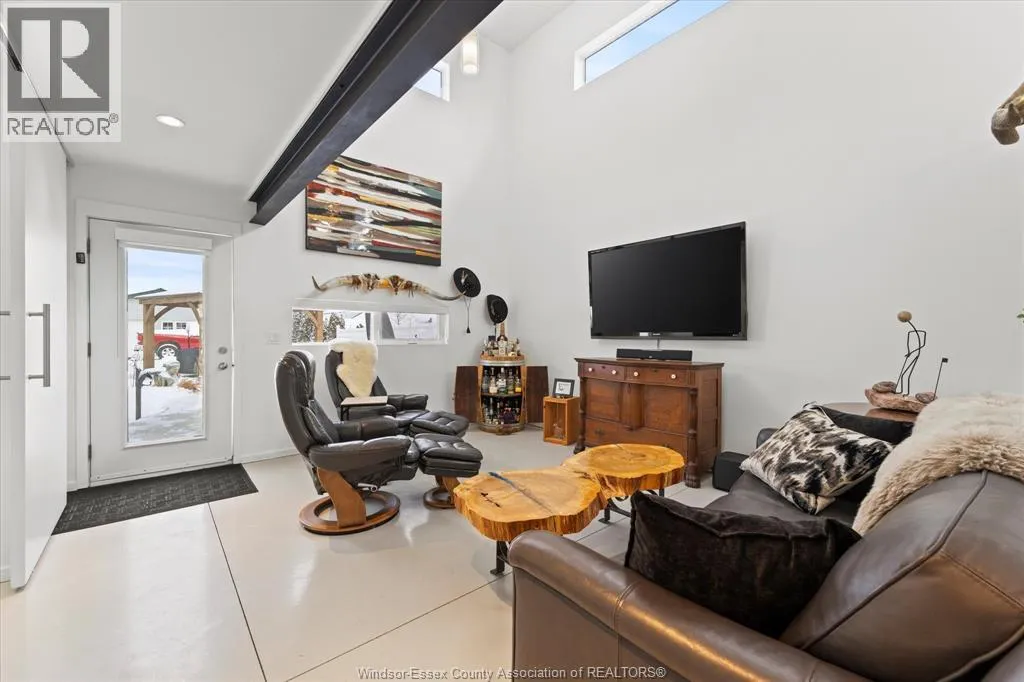 An Absolute Show Stopper! Discover this 2-storey loft-style home located in the charming town of Amherstburg, perfectly positioned on one of the largest residential lots in downtown. Just steps away from one of the busiest waterways and all local amenities, this Energy Star home truly redefines luxury living. On approximately half acre centre of town, desirable location, walking distance to downtown and shopping. This property embodies the perfect balance of a countryside feel with the convenience of urban living. With its stunning loft-inspired design featuring exposed duct work and a suspended airplane cable walkway, this home is a true architectural masterpiece. Heated flooring in the main floor. Step inside to find a custom kitchen and modern concrete flooring equipped with in-floor heating, ensuring comfort during every season. The steel roof adds durability and a contemporary touch. The detached garage and workshop provide ample storage and workspace for all your projects. With 2 spacious bedrooms and 2 full bathrooms, this home is designed to enhance the living experience with a long list of premium features. Experience the allure of this unique property and make it your own! Heated man cave garage with half 1 bath. Potential on this property for additional dwelling unit. (id:27476)