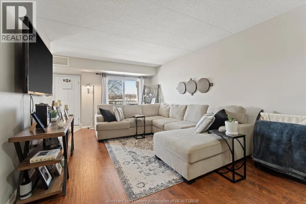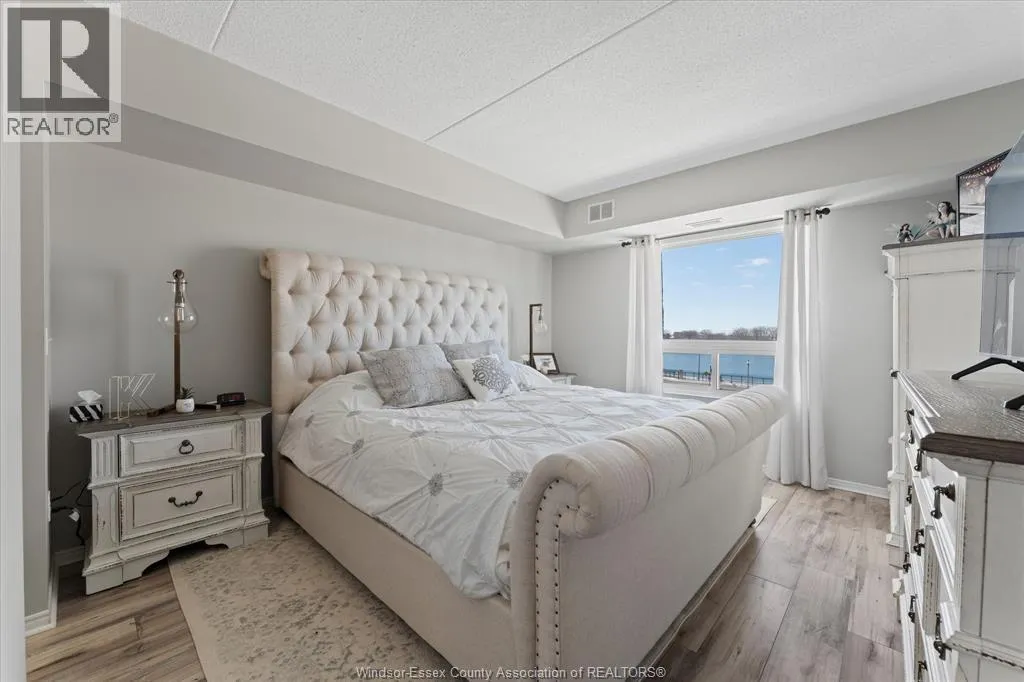 Welcome to 100 Pickering, a beautifully updated 2-bedroom, 2-bath condo offering 1160 sq. ft. of stylish living space. This bright and spacious unit features modern laminate floors throughout the living room, dining room, and kitchen, complemented by convenient ensuite laundry. The open-concept layout flows seamlessly, perfect for entertaining or simply enjoying the serene atmosphere. Step out onto your private balcony and take in the stunning water viewsâa perfect spot to unwind. The primary bedroom boasts an ensuite bath, offering a comfortable retreat. Located close to all amenities, this condo puts you within walking distance of shops, dining, and parks, all in the heart of historic Amherstburg. Experience waterfront living at its best in this move-in-ready home! (id:27476)
