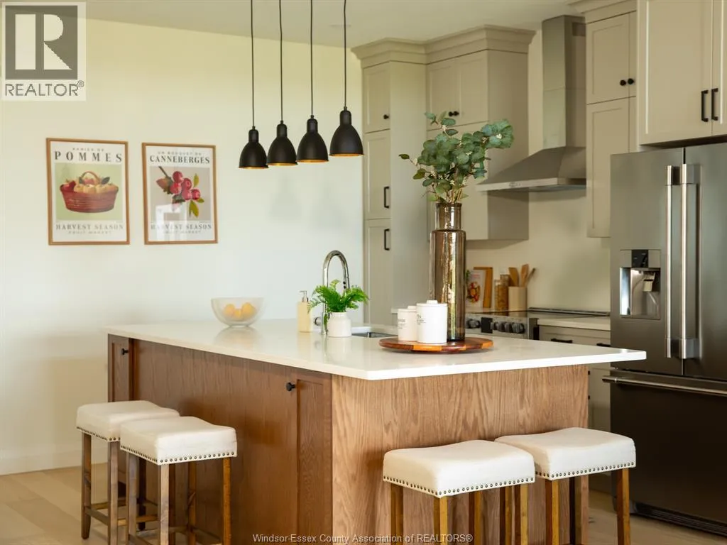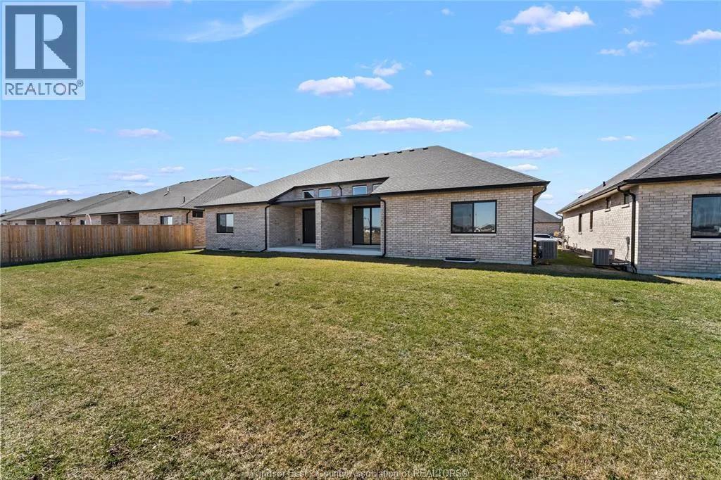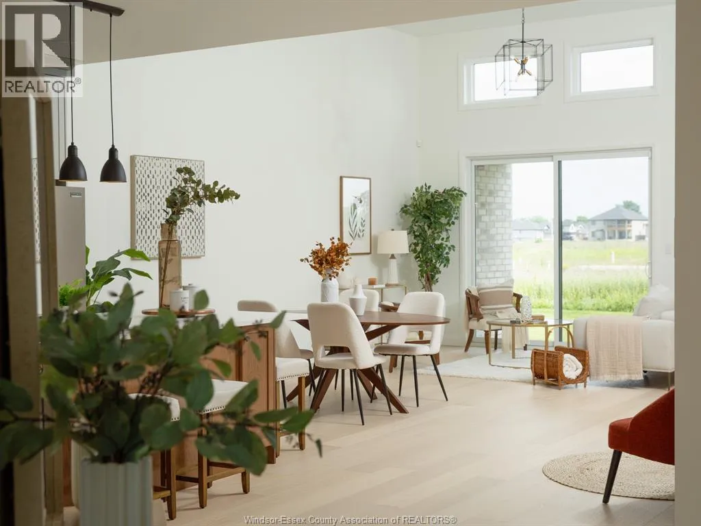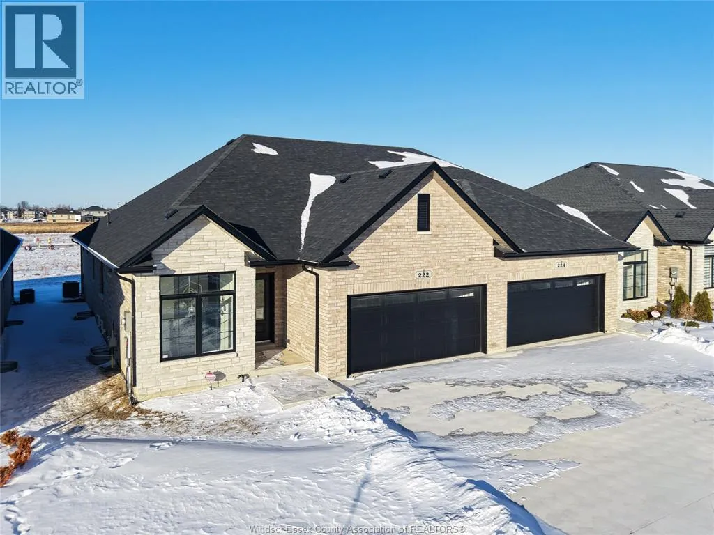 This large, brand new semi detached ranch home is located in one of Amherstburg’s most desirable neighborhoods. Approx. 1550 square feet. Beautifully crafted and never been occupied, it offers refined, modern living throughout. Featuring 2 spacious bedrooms and 2 elegant bathrooms, including a primary suite with private ensuite, plus convenient main floor laundry. The open concept kitchen is designed for both style and function, showcasing a large island, premium cabinetry, and a sophisticated dry bar area ideal for entertaining. Soaring ceilings and expansive windows bathe the home in natural light. Complete with a 2 car garage and a 2 car driveway. Exceptionally built by reputable builder Everjonge, this home is perfectly suited for those seeking luxury, comfort, and low maintenance living. (id:27476)