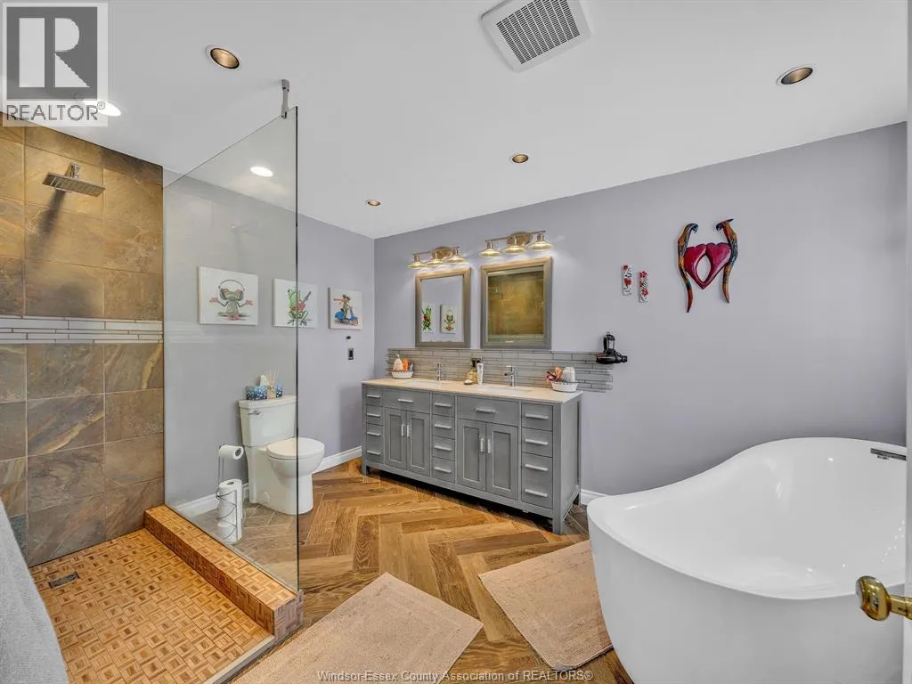 Set on a quiet, well-established street in one of Amherstburgâs desirable neighborhoods, this home offers exceptional curb appeal and a lifestyle thatâs hard to match. Backing directly onto the 9th hole tee-off of Coachwood Golf and Country Club, the property captures sweeping green views through stunning floor-to-ceiling windows that flood the home with natural light. Inside, youâll find three generously sized bedrooms and two bathrooms, including a recently updated ensuite off the primary suite. Step out onto the private balcony from the primary bedroom and enjoy your morning coffee overlooking the fairway. The unfinished basement can also be accessed from the garage providing endless potential for additional living space, a recreation area, or a custom retreat tailored to your needs. A rare opportunity to enjoy peaceful surroundings with a premium golf course backdrop. (id:27476)