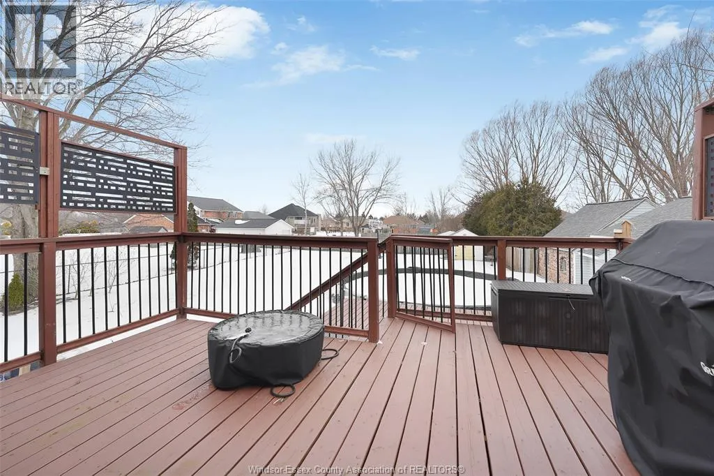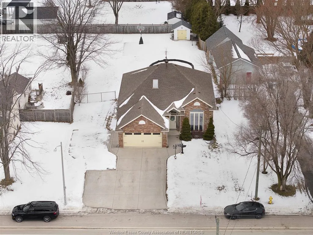 Welcome to 276 Texas Rd, a meticulously maintained California-style raised ranch on one of Amherstburg's most desirable streets. This is the kind of home where memories are made: BBQs on the deck, kids going for a summer swim and playing basketball in the yard with the recently installed 20x24 concrete pad, cozy evenings by the fireplace, and enough space for everyone to spread out and enjoy their own privacy. Step inside to soaring ceilings and natural light flooding through oversized windows framed by a stunning stone accent wall. The open main level flows effortlessly from the spacious living room to a dream kitchen that was built for entertaining guests; crisp white cabinetry, granite counters, premium appliances, gas range, and a massive island where everyone gathers. Walk out to your elevated deck overlooking a fully 200ft fenced yard complete with pool, basketball court, and plenty of room to play. Three bedrooms upstairs, all with hardwood floors. The primary bed includes a private Jack & Jill ensuite with cherry cabinets, a skylight letting in the sunâs rays throughout the day, and a shower/tub combo. The lower bath features a soaker tub, because sometimes you just need to unwind. But here's where this home really shines: the finished basement. A second family room with a natural gas fireplace (perfect for the big game or movie night), 4th bedroom, full bathroom, and youâll find the laundry/utility room with ample shelving and cabinetry. There's even a gym/rec-room tucked into the sub-basement for your private fitness space or used as additional storage. This is the kind of layout that works for all families; space for kids, guests, hobbies, or a home office without renovating. Double attached garage with inside entry. Central Vac. Modern updates throughout. And that Texas Rd address? It means you're getting an oversized lot with peace and tranquility, minutes from amenities, parks, and the riverfront while still enjoying a quiet, established neighbourhood. (id:27476)