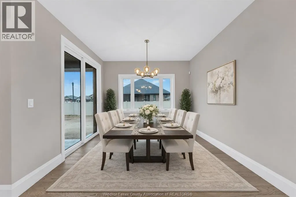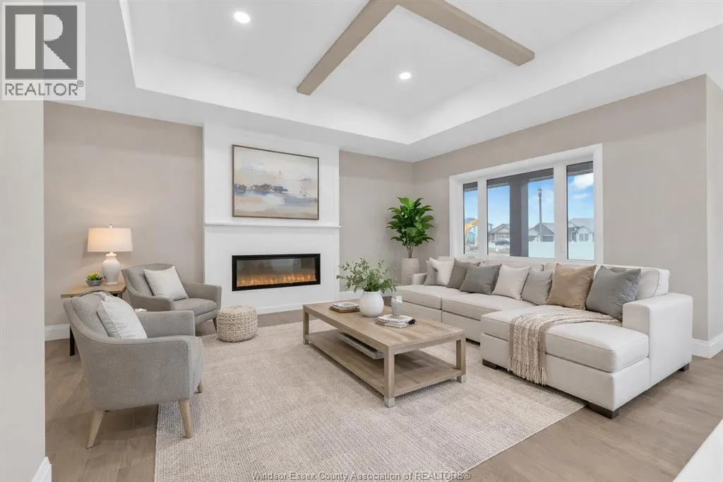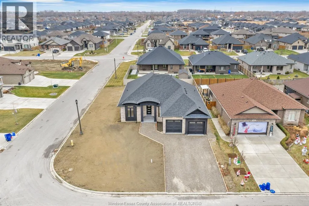Just Listed â This exquisite custom-built ranch residence is set in one of Amherstburgâs most soughtafter locations. Masterfully crafted by the acclaimed Cerasa Design and Build, this home showcases a seamless blend of timeless elegance and modern functionality. Featuring three generously sized bedrooms, two and a half spa-inspired bathrooms â including a luxurious ensuite â and a spacious two-car garage, every detail has been thoughtfully curated. The primary bedroom serves as a private retreat, complete with its own ensuite bath and a spacious walk-in closet. The open-concept living space is highlighted by soaring 9-foot ceilings with refined tray detailing, premium tile and hardwood flooring throughout, and a stylish electric fireplace that creates a warm and inviting focal point. Covered front and rear concrete porches further elevate both the interior and exterior living experience. The basement is unfinished and ready for your personal finishing touches, complete with a convenient grade entrance offering excellent potential for additional living space. Spring Incentive: The builder is offering your choice of either a full sprinkler system with sod, or a cement driveway with a sidewalk leading to the grade entrance â to be completed by the builder. Designed for sophisticated living and everyday comfort, this home is constructed using only the finest materials and superior craftsmanship, ensuring exceptional quality, durability, and lasting beauty. Enjoy added peace of mind with a 7-year Tarion warranty. Contact us today to review detailed floor plans or tour a completed model to truly appreciate the craftsmanship and lifestyle this remarkable home offers. Buyer to verify zoning, taxes, and sizes. Call today! Some photos are virtually staged. (id:27476)