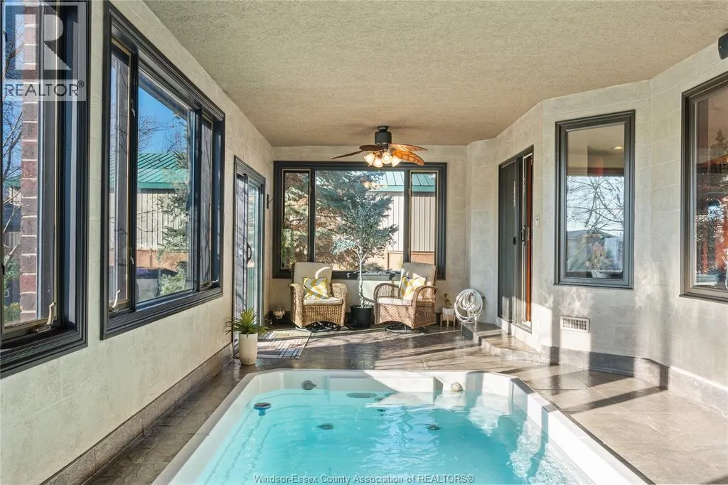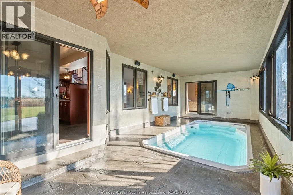 Experience elevated living at 2116 Front Rd. N in Amherstburg, a truly timeless, unique, and elegant estate designed for comfort, luxury, and modern functionality. Offering over 4,300 sq ft of beautifully finished living space, this impressive home features 6 spacious bedrooms, 3.5 bathrooms, and a spectacular grand great room perfect for entertaining. The primary suite is a private retreat with a steam shower, jacuzzi walkout, and balcony access, while the home is equipped with full smart-home integration including security cameras, alarm system, sound systems, sprinklers, and garage controls all accessible by phone. Enjoy year-round wellness with the incredible indoor lap pool and hot tub, plus added peace of mind from a natural gas backup generator. Outdoors, the property shines with a landscaped fenced yard, fire pit area, sunroom, concrete patio, BBQ gas lines, and tranquil canal water access, all with no rear neighbours and unobstructed horizon views. With a heated epoxy-floored 2.5 car garage, abundant storage, and high-efficiency dual-zone HVAC, this extraordinary property blends luxury, privacy, and smart living into one unforgettable dream home. (id:27476)