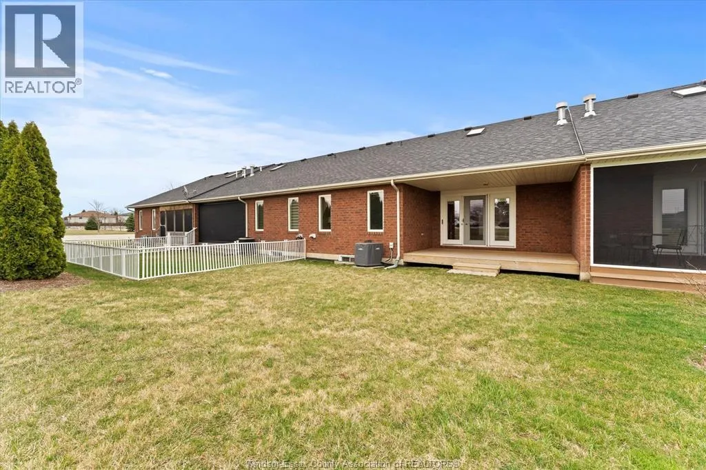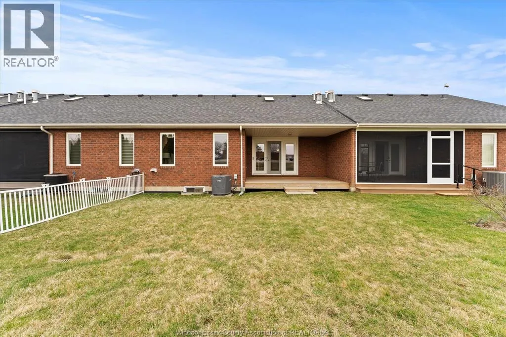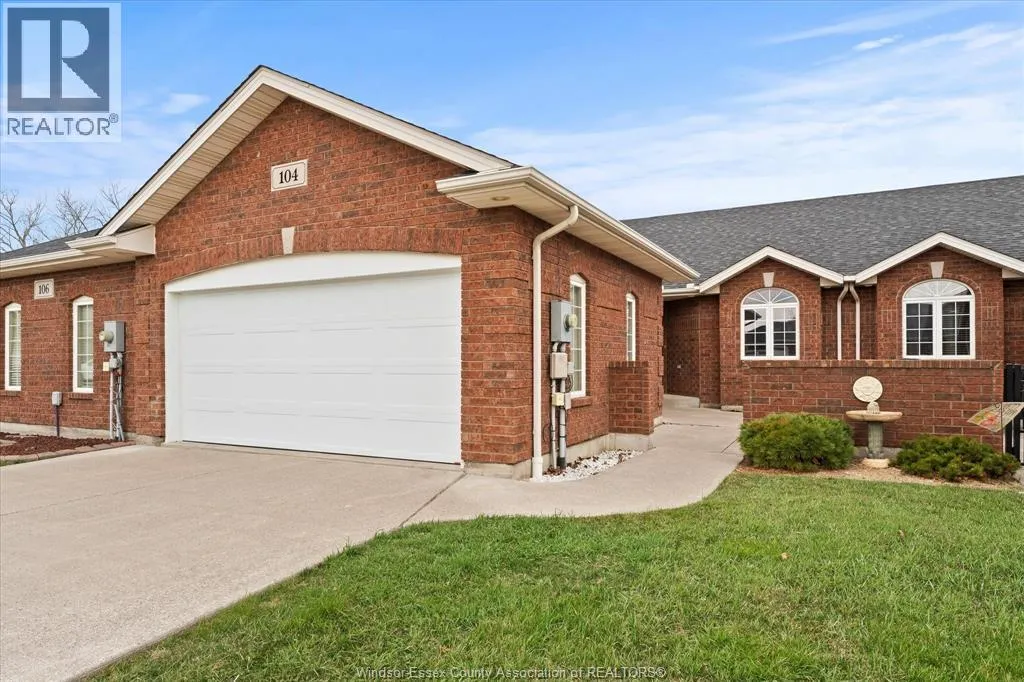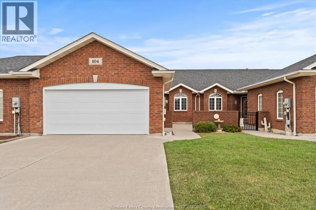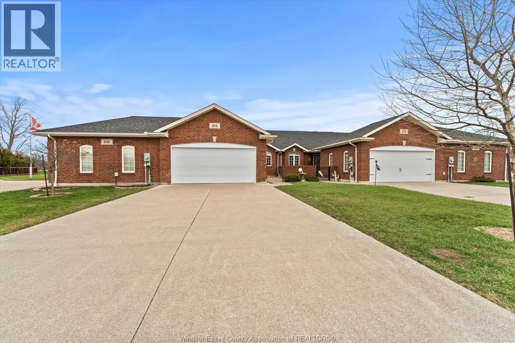 SANDWICH STREET SOUTH TO RIVERFRONT PARK CRESCENT ""Location, Location, Location! Ranch townhome in the heart of Amherstburg with walking distance to shopping, Navy Yard Park and the downtown core. 2 bedroom 2 bath ranch all on one floor with main floor laundry and large finished cement drive and attached 2 car garage. Backs onto no rear neighbor's. Inviting front courtyard for entrance and rear covered patio. No condo or HOA fees. Updated hardwood flooring throughout, roof shingles replaced (2020 approx.). Full unfinished basement. The Seller reserves the right to accept or decline any offer. Schedule B to accompany all offers."" (id:27476)