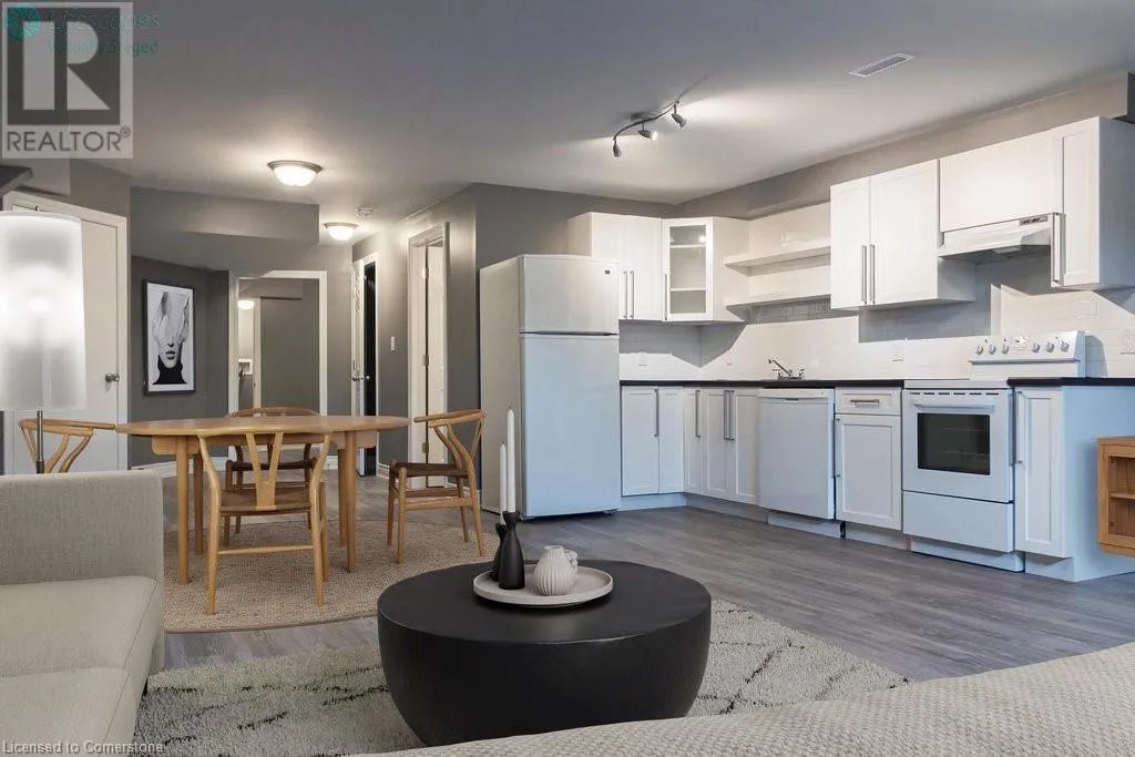 403 to the Linc exit to a right turn on Golf Links, L on Cloverleaf Dr, R on Stonehenge Dr, L on Raymond, R on Fair St Grab your opportunity to live in a brand new 2 bedroom basement apartment located in the Ancaster Meadowlands neighbourhood! Professionally renovated with permits, this spacious unit offers easy maintenance laminate flooring, assuring a clean and fresh living space. The comfort begins with a well-lit, new concrete pathway leading to the separate side entrance. The inside stairway to the unit is short and easy, open and expansive with lots of head space to move comfortably. Relax in this well designed, open concept kitchen and living/dining areas. Two spacious bedrooms each offer amply sized closets, as well as proper egress windows which provide safety and allow LOTS of natural light to shine in! A brand new 3-pc bath has a storage vanity and an easy-care walk-in shower. Extra storage space and the high ceilings round out the comfort. A stacked, in-suite laundry provides extra convenience. All white cabinetry and appliances include a dishwasher, fridge, and new stove. This is an owner occupied, pet free & smoke free home with ample street parking. Last bonus is the fact that ALL utilities, heat, A/C, water and WIFI are included in the rent. Call to book a viewing before it's gone! RSA (id:27476)