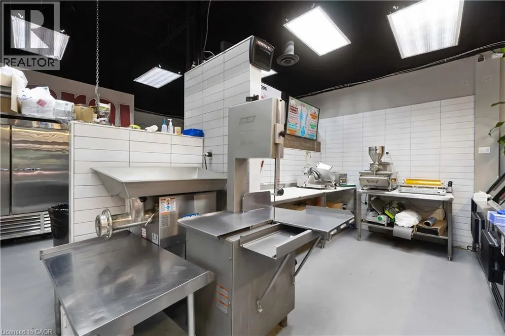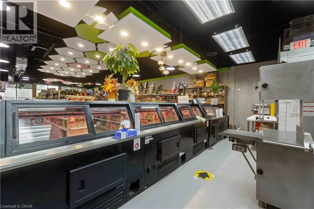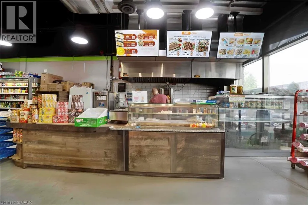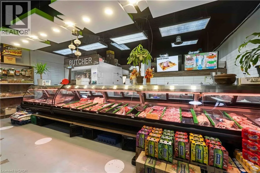 Turn onto Panabaker Dr from Garner Rd Presenting a remarkable opportunity to acquire a thriving grocery store, complemented by a bustling halal butcher shop and takeout restaurant, ideally situated in a sought-after Ancaster location. This established business enjoys a strong connection with the local community and offers a diverse selection of authentic Middle Eastern products. A significant advantage is its proximity to the neighbouring high school, resulting in a notably busy lunch period as students frequent the store. Step inside to discover a genuine taste of tradition and culture, with shelves brimming with authentic delights that capture the rich culinary heritage of the region. The business has been meticulously set up with high-caliber equipment throughout, demonstrating a keen eye for detail. Excellent profit margins, a favorable lease, and its placement within a high-traffic plaza make this an exceptional investment prospect. Key equipment included in the sale comprises: a large stainless steel commercial kitchen exhaust hood, a walk-in fridge, a sizable stainless steel commercial refrigerator/freezer, a multi-burner gas stovetop, a deep fryer, a vertical rotisserie/shawarma machine, an oven, a meat slicer, a meat grinder, stainless steel work tables, food processors, various refrigeration and display units (including refrigerated display cases for meat and open refrigerated display cases for drinks), glass door refrigerators/freezers, an ice cream maker, shelving units, a point-of-sale system, and much more. Don't miss this chance to take the reins of a fully operational business and capitalize on its loyal customer base, including the consistent lunchtime traffic from the adjacent high school (id:27476)