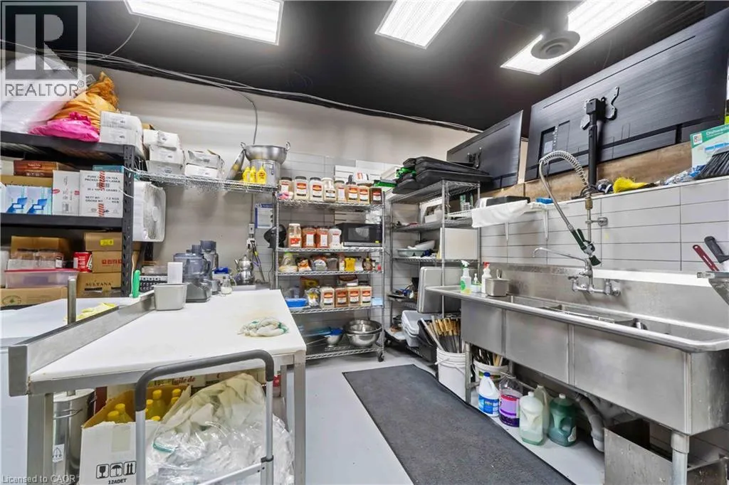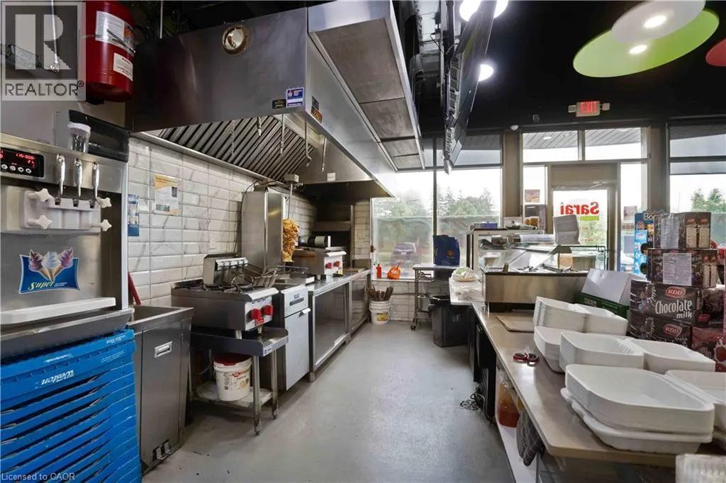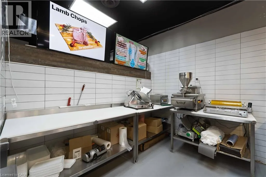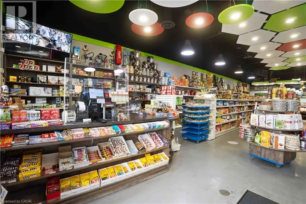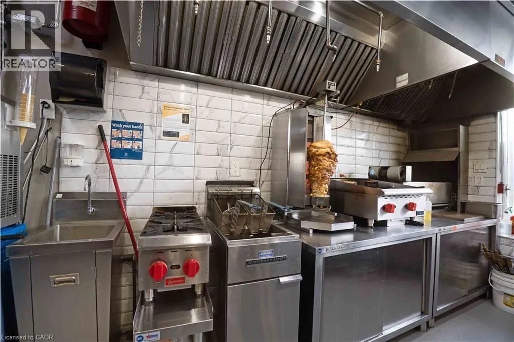 Turn onto Panabaker Dr from Garner Rd Presenting a remarkable opportunity to acquire a thriving grocery store, complemented by a bustling halal butcher shop and takeout restaurant, ideally situated in a sought-after Ancaster location. This established business enjoys a strong connection with the local community and offers a diverse selection of authentic Middle Eastern products. A significant advantage is its proximity to the neighbouring high school, resulting in a notably busy lunch period as students frequent the store. Step inside to discover a genuine taste of tradition and culture, with shelves brimming with authentic delights that capture the rich culinary heritage of the region. The business has been meticulously set up with high-caliber equipment throughout, demonstrating a keen eye for detail. Excellent profit margins, a favorable lease, and its placement within a high-traffic plaza make this an exceptional investment prospect. Key equipment included in the sale comprises: a large stainless steel commercial kitchen exhaust hood, a walk-in fridge, a sizable stainless steel commercial refrigerator/freezer, a multi-burner gas stovetop, a deep fryer, a vertical rotisserie/shawarma machine, an oven, a meat slicer, a meat grinder, stainless steel work tables, food processors, various refrigeration and display units (including refrigerated display cases for meat and open refrigerated display cases for drinks), glass door refrigerators/freezers, an ice cream maker, shelving units, a point-of-sale system, and much more. Don't miss this chance to take the reins of a fully operational business and capitalize on its loyal customer base, including the consistent lunchtime traffic from the adjacent high school (id:27476)