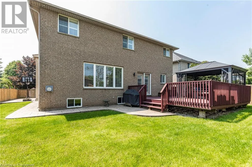 Southcote & Kitty Murray Discover an exceptional opportunity in the sought-after Ancaster Meadowlands community. Step into the epitome of modern living with this magnificent custom built 5600+ sq/ft residence, with over 4000 sq/ft above grade and a 60 ft wide lot. Boasting 5 spacious bedrooms, including 2 master suites and 2 ensuites, 6 bathrooms, security camera system, this home is designed to accommodate your every need. The heart of the home is the expansive kitchen, featuring a large island, quartz countertops and built-in oven. The den on the main floor provides the perfect setting for a home office. The fully finished basement is a true gem, complete with an extra bedroom/gym space, a pub-style wet bar, kitchen, 3-piece bathroom, with a separate entrance from the 20x22 ft oversized garage. Escape to the outdoors and unwind on the spacious 20x20 deck with a large gazebo. Owner is RREA. (id:27476)