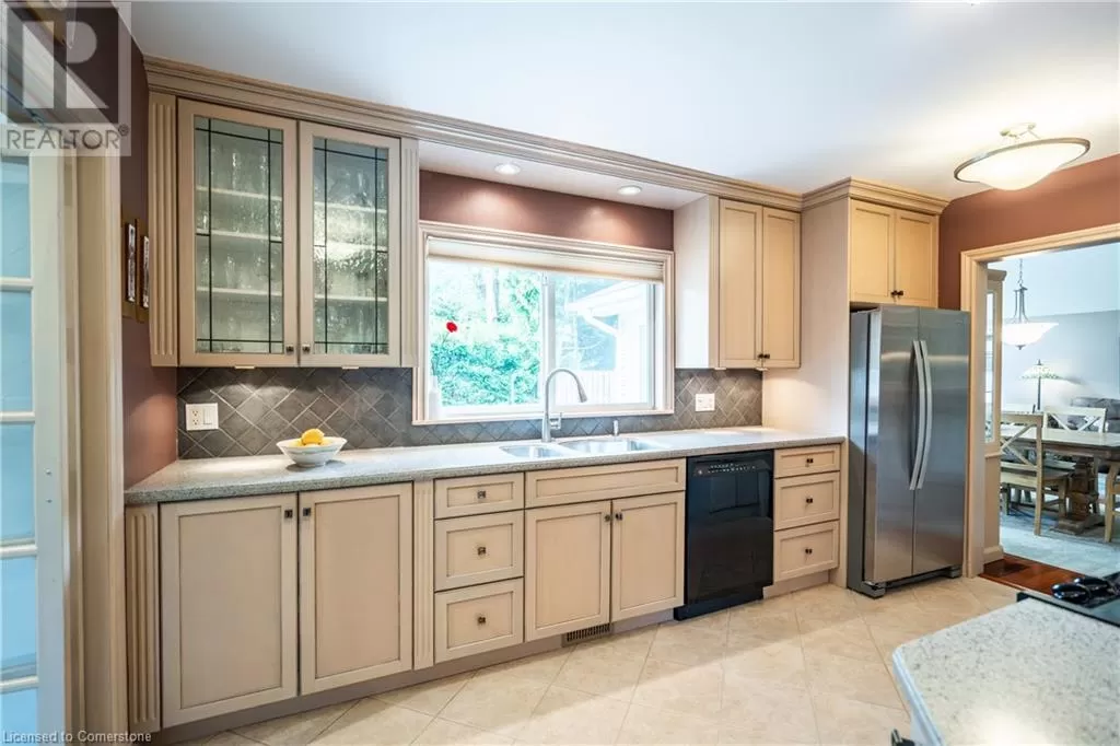 Lovers Lane to Parker to Hadley Step into something special at 98 Hadley Drive-a rare and captivating 4-bedroom, 3-bathroom bungalow with 3,231 sqft of total living space, set on an impressive corner lot in one of Ancaster's most coveted neighbourhoods. Thoughtfully updated and beautifully maintained, this home blends timeless charm with modern comfort in all the right ways. From the moment you walk in, you'll feel the warmth of the sun-filled dining area with skylight, the inviting family room and formal living room each with its own fireplace-and the custom-designed kitchen built for everyday life and entertaining alike. The expansive primary suite feels like a private retreat, featuring a walk-in closet and a spa-like ensuite complete with heated floors, a soaker tub, and double sinks. Plush carpeting in the bedrooms offers comfort, while the finished lower level-with a separate entrance, full bathroom, and generous rec space-adds flexibility for multi-generational living, guests, or your dream home office. A bright, modern laundry area, dedicated workshop, and ample storage space add even more function. Outside, the oversized double car garage and wide driveway offer room for all your vehicles and toys. The real showstopper? The private, fenced backyard with space to dine, play, unwind-and even room for a future inground pool. This is more than a home-it's a lifestyle. 98 Hadley is where memories are made, where comfort meets convenience, and where your next chapter begins. (id:27476)