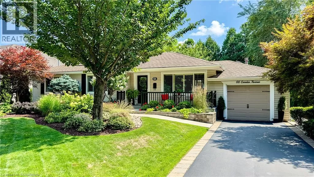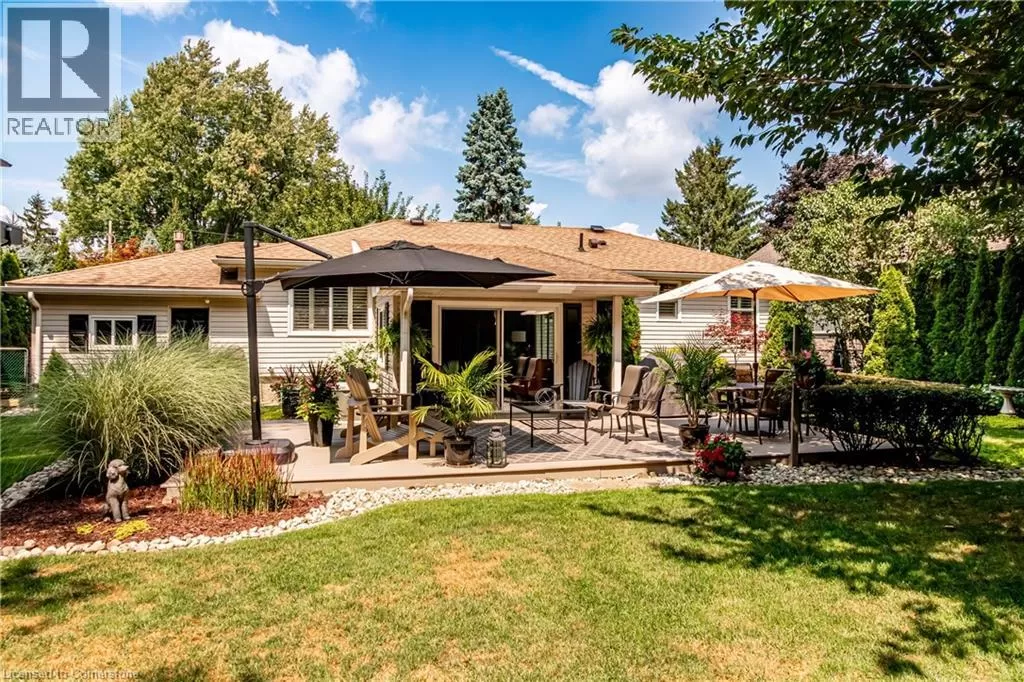 Fiddlers Green Road to Garden Avenue This beautifully maintained bungalow is perfectly situated in a highly desirable neighbourhood known for its peaceful streets, friendly community, and lush surroundings. Conveniently located just minutes away from shops, restaurants, parks, schools, and easy access to the highway. This lovely home offers a harmonious blend of modern updates and timeless charm, making it a true gem in the area. Step inside to discover 2+2 bedrooms, hardwood and laminate flooring throughout, and California shutters that bring a touch of elegance to each room. The spacious living and dining areas feature a cozy gas fireplace, pot lights, and soft grey wall finishes, creating a warm and inviting atmosphere. Gather around the island and enjoy entertaining in the stylish kitchen, featuring solid wood cabinetry, quartz countertops, a sleek undermount sink, stainless steel appliances, and a classic subway tile backsplash. The ensuite boasts a large shower, double sinks, and heated floors while the main bath offers a classic four-piece design with ceramic tile. The fully finished lower level is home to a comfortable rec room with second gas fireplace, two additional bedrooms with large windows, a modern three-piece bath with huge shower and heated floors, and a large, inviting laundry area which makes doing laundry less of a chore. Outside is where this property continues to shine! The spectacular gardens are a feast for the eyes, with vibrant blooms, mature cedar trees, and artfully landscaped beds that create a private backyard oasis. The fully fenced yard, large deck, and charming 10x15â garden shed provide the perfect setting for entertaining or simply enjoying the outdoors. Large sliding doors from the family room open directly to this stunning outdoor retreat. Itâs an exceptional, move-in-ready home that blends comfort, style, and nature-tucked away in one of the area's most desirable neighborhoods. Welcome Home! (id:27476)