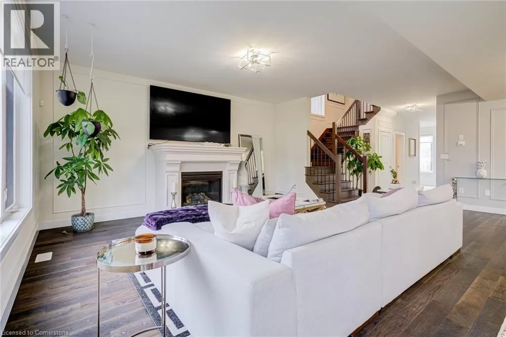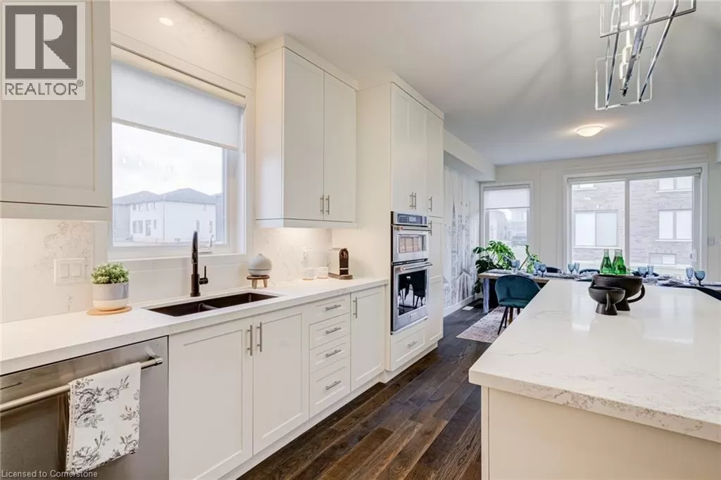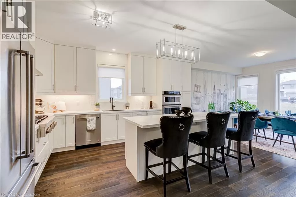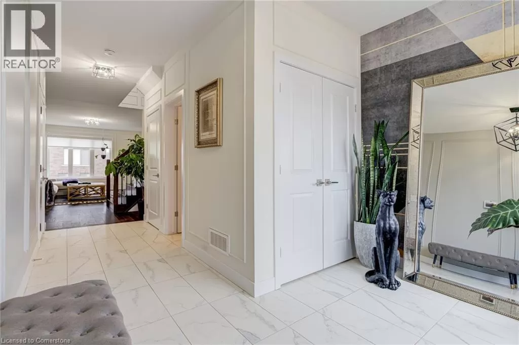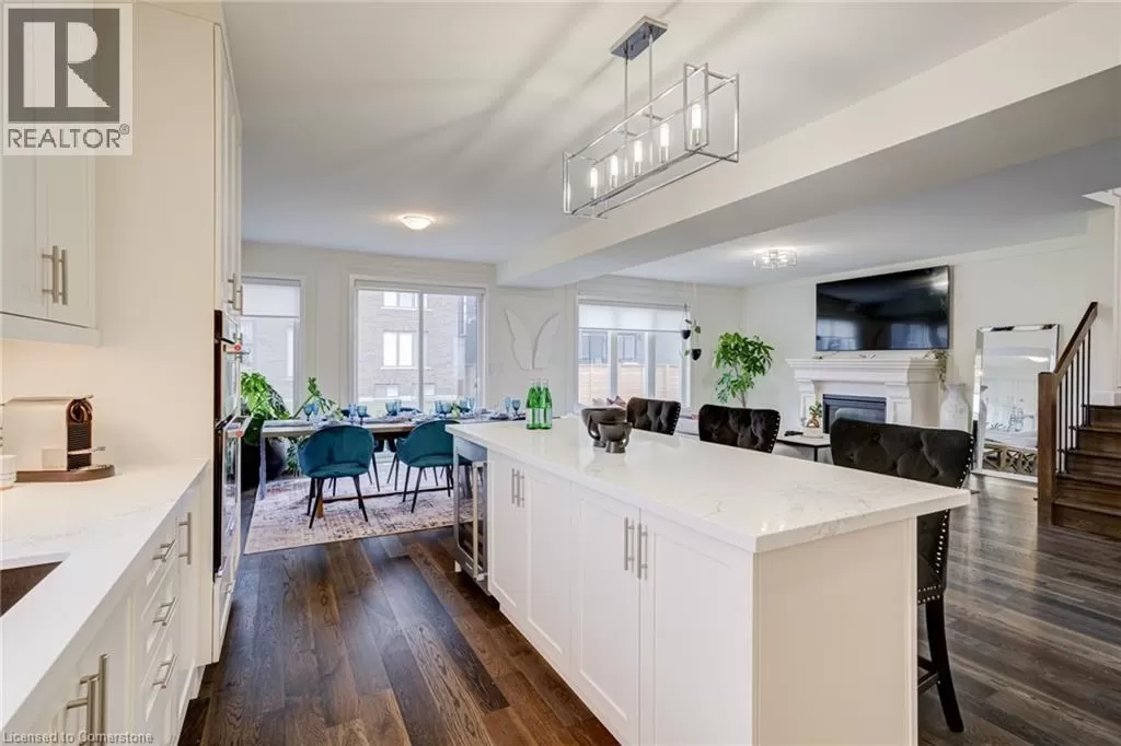 Springbrook Rd/ Klein Circle Beautifully upgraded 4-bed, 3-bath home in Ancasterâs sought-after Meadowlands! This executive residence features 10-ft ceilings, hardwood floors throughout, oak stairs, custom millwork, wallpaper accents, and stylish upgraded light fixtures throughout. The designer kitchen boasts quartz countertops, extended pantry cabinetry, pot filler, wine fridge, and built-in KitchenAid appliances including a 6-burner gas stove. Relax in the open-concept living room with a gas fireplace and electric blinds. Upstairs, enjoy a luxurious primary suite with spa-like ensuite featuring quartz counters, upgraded tiles, and a freestanding soaker tub. Includes home surveillance system, custom blinds, and a double garage. Located near Ancaster High School, big box stores, scenic trails, and waterfalls. (id:27476)