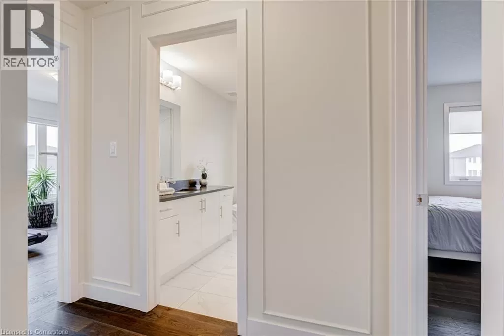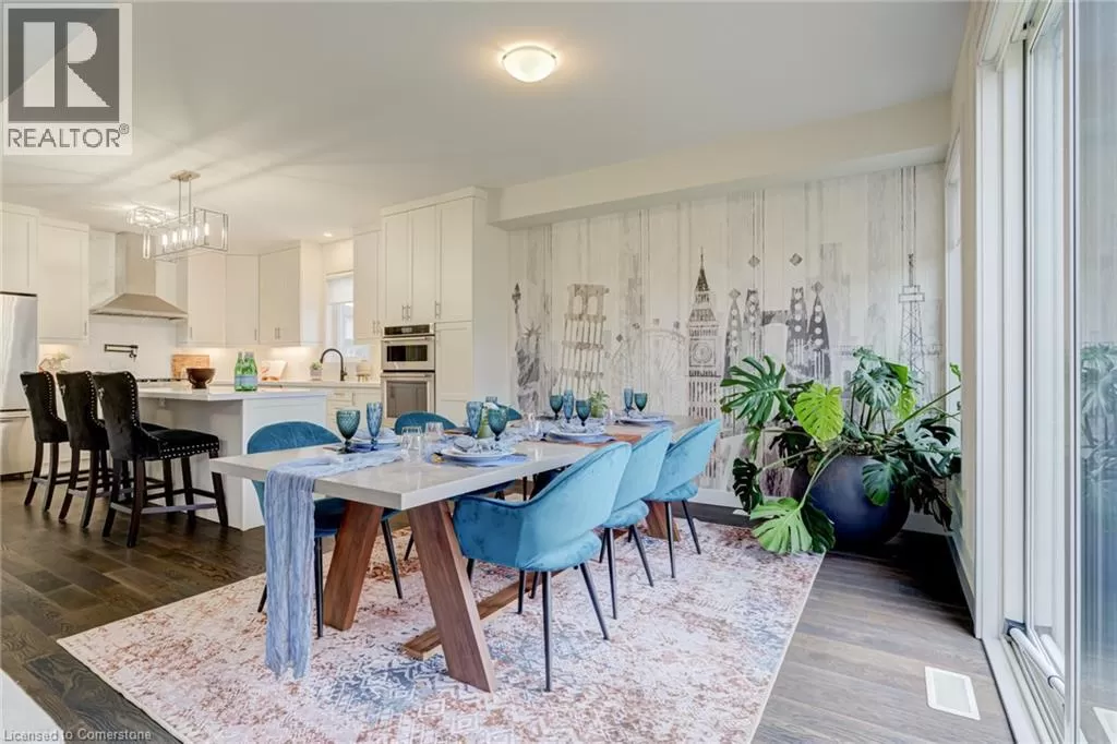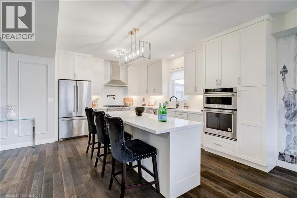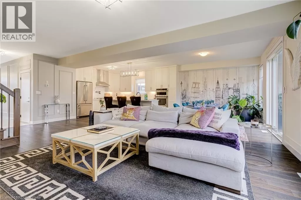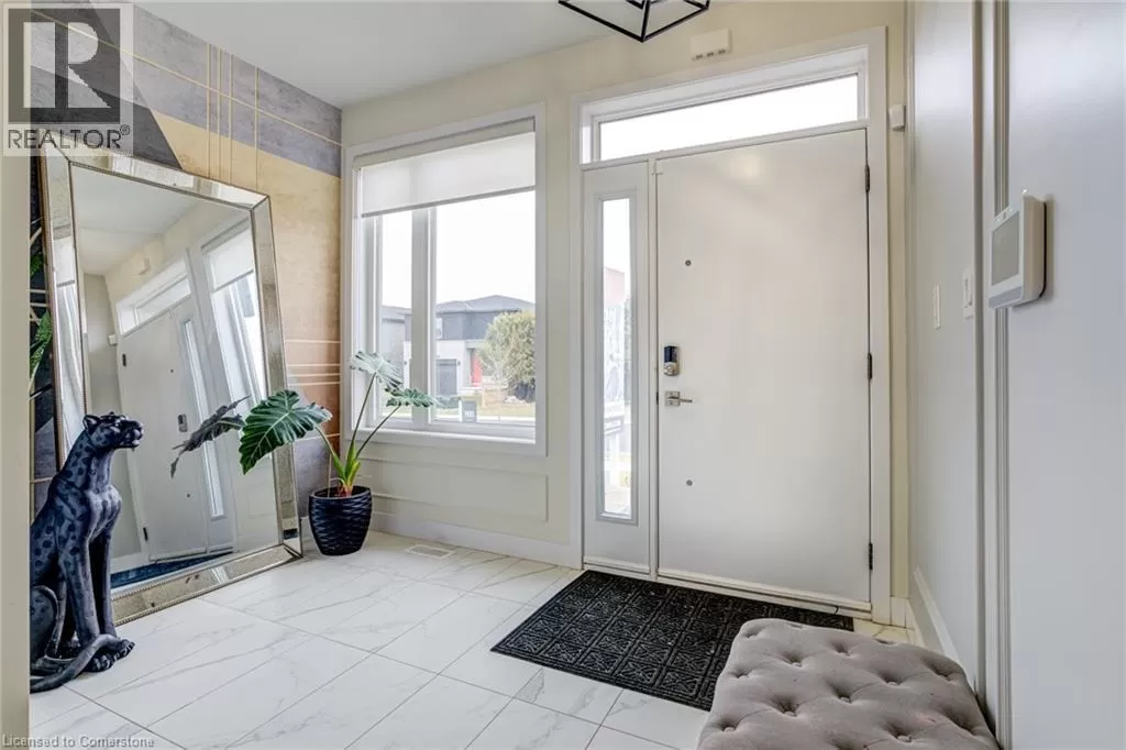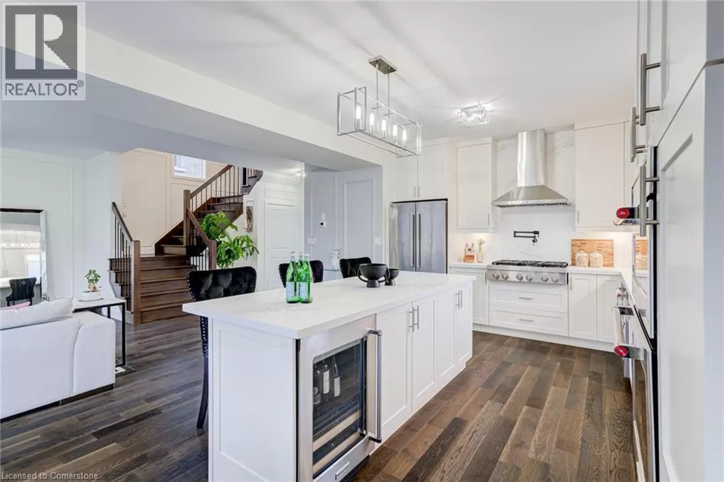 Springbrook Rd/ Klein Circle Beautifully upgraded 4-bed, 3-bath home in Ancasterâs sought-after Meadowlands! This executive residence features 10-ft ceilings, hardwood floors throughout, oak stairs, custom millwork, wallpaper accents, and stylish upgraded light fixtures throughout. The designer kitchen boasts quartz countertops, extended pantry cabinetry, pot filler, wine fridge, and built-in KitchenAid appliances including a 6-burner gas stove. Relax in the open-concept living room with a gas fireplace and electric blinds. Upstairs, enjoy a luxurious primary suite with spa-like ensuite featuring quartz counters, upgraded tiles, and a freestanding soaker tub. Includes home surveillance system, custom blinds, and a double garage. Located near Ancaster High School, big box stores, scenic trails, and waterfalls. (id:27476)