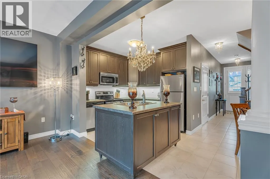 Garner Rd E to John Frederick Dr to Dodman Cres Welcome to 72 Dodman Cres! This freehold townhome (no road fee) features 3 beds and 2.5 baths. This stylish home boasts sleek and modern finishes throughout and an abundance of natural light. Bright and spacious main floor features an open-concept kitchen with oversized island, breakfast area, and great room with upgraded hardwood flooring and walk out to the rear patio. Three bedrooms on the second floor, spacious primary with a walk-in closet and ensuite. Convenient bedroom level laundry. Endless possibilities with the large unfinished basement â finish to suit your lifestyle. Located just minutes to Hwy 403, Lincoln M Alexander Parkway, shopping, restaurants and much more. Fully fenced backyard is perfect for entertaining friends, with a nice patio area where you can BBQ or just relax on a warm summer day. Parking for 3 vehicles - single wide tandem driveway + garage. Nothing to do but move in! (id:27476)