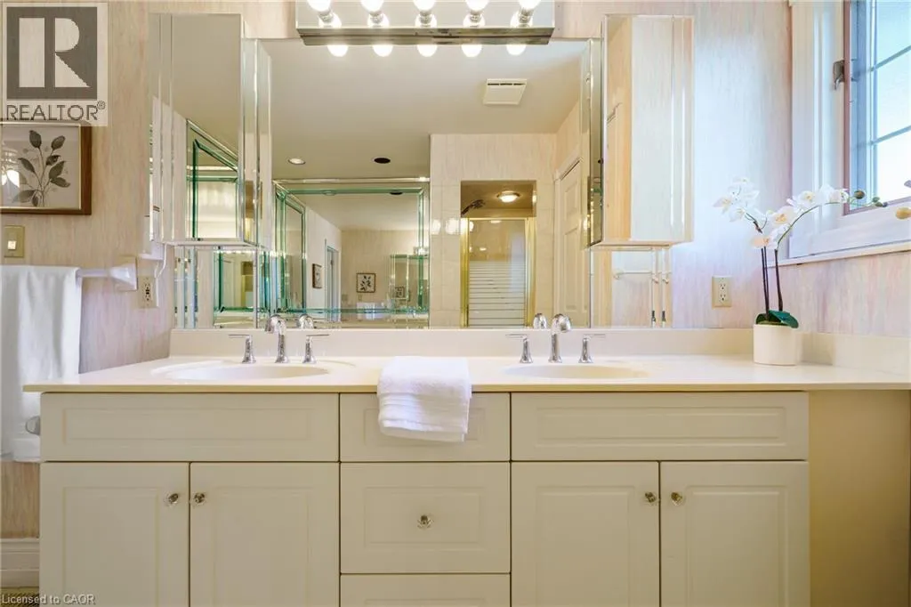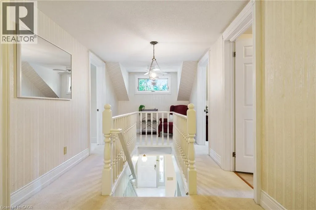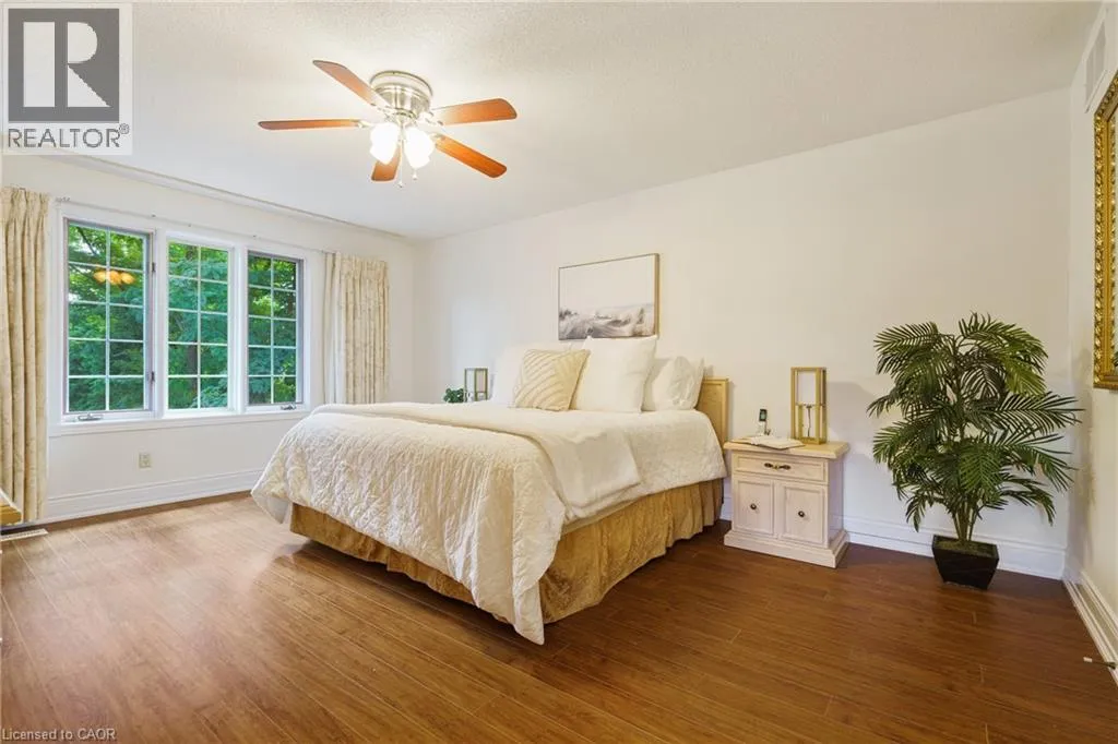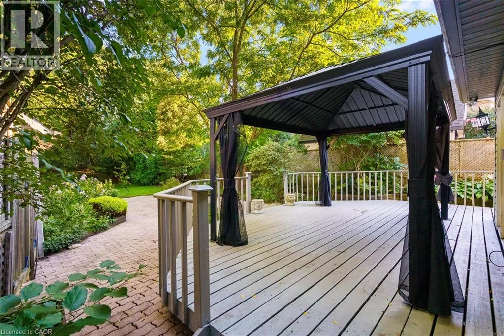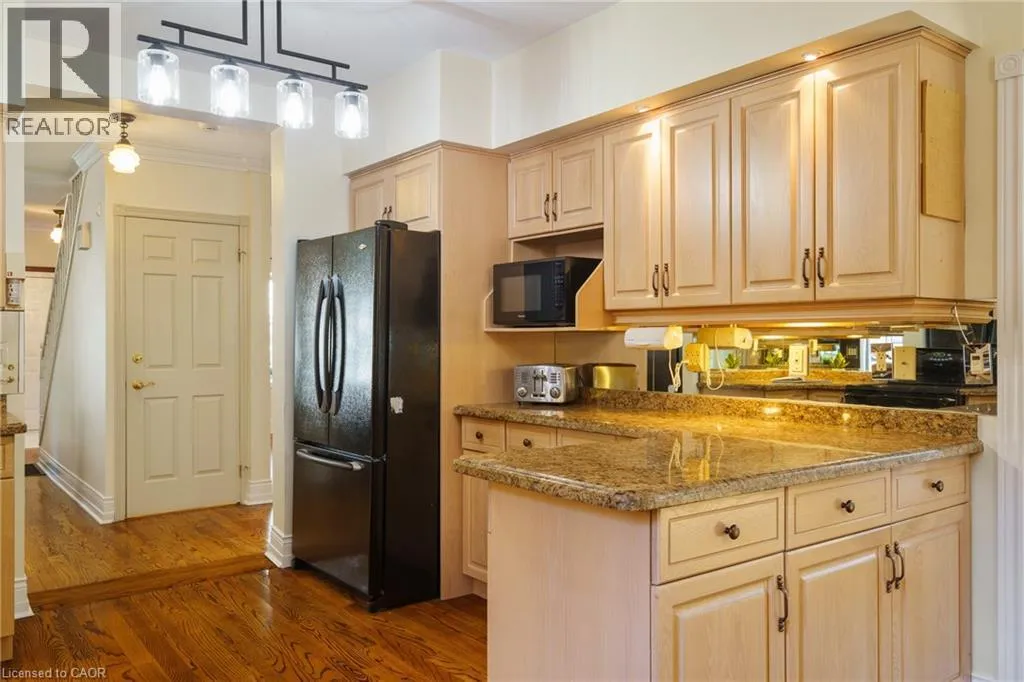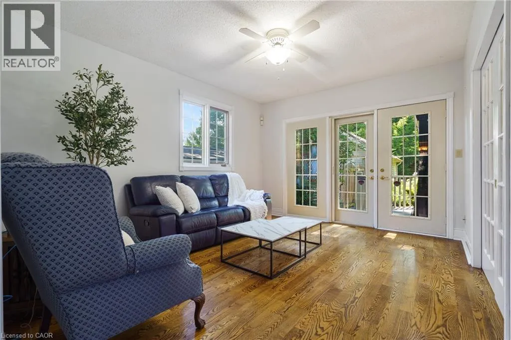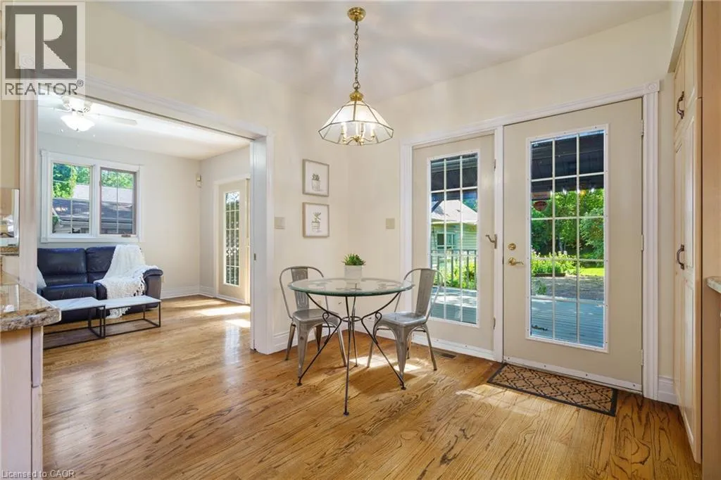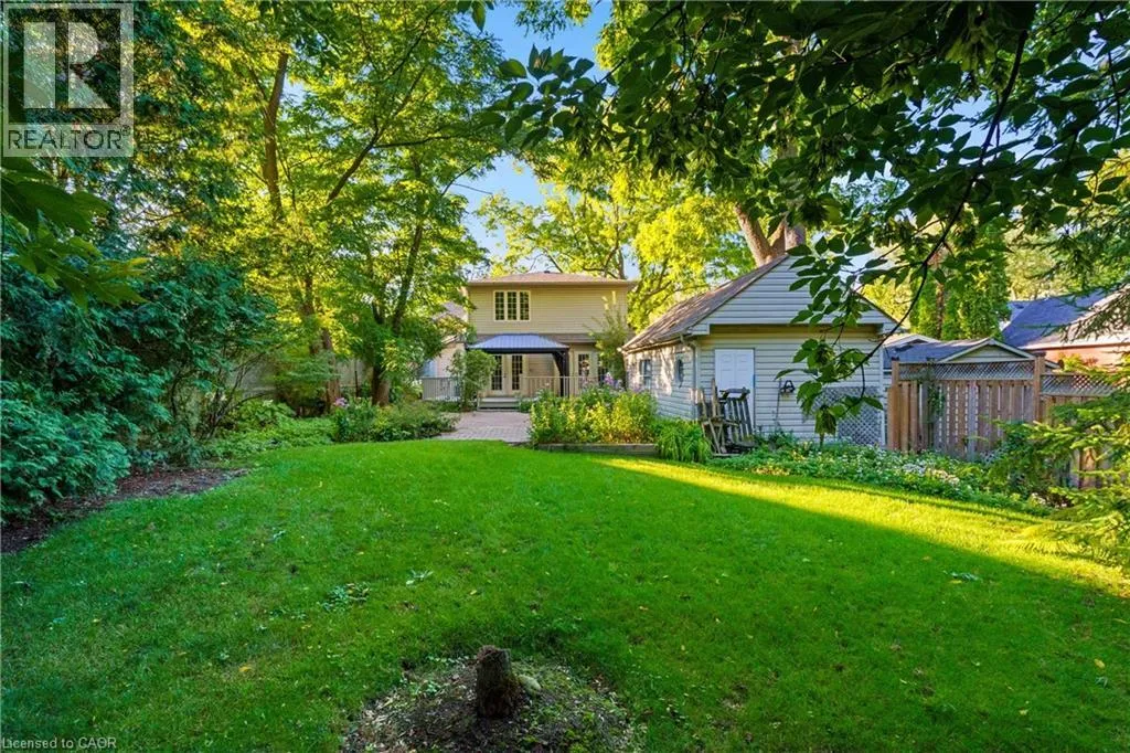 Wilson St E to Academy St 64 Academy Street is the kind of home that feels easy to fall in love with. Thoughtfully maintained and tastefully updated, it sits in the heart of Ancasterâjust minutes from scenic trails, excellent schools, boutique shops, dining, and the Hamilton Golf and Country Club. Move-in ready, it offers both comfort and charm, with a beautifully landscaped, fully fenced backyard featuring perennial gardens, mature trees, a gazebo and deck with natural gas hook-up, all seamlessly accessed from the kitchen. A two-storey addition brings extra space and versatility to the layout, while the main floor impresses with gleaming hardwoods, a 3-piece bath, and an expansive eat-in kitchen designed for gathering and entertaining. Elegant French pocket doors with beveled glass connect the kitchen and family room, where a gas fireplace with a striking hardwood mantel creates the perfect focal point. Upstairs, the principal suite offers a private retreat with serene backyard views, a walk-in closet, and a relaxing jacuzzi tub. Two additional bedrooms add flexibilityâone oversized with a double walk-in closet, the other ideal for guests or a home office. Outside, a circular driveway framed by evergreens and perennials provides a welcoming first impression and ample parking, while the rear garden oasis delivers a peaceful, tree-lined escape that often attracts visiting wildlife. Recent updatesâincluding a new high-efficiency furnace (2025), dishwasher (2025), and roof (2020)âadd peace of mind, while thoughtful extras such as a heated rear driveway, detached garage, and sprinkler system round out this truly inviting property. (id:27476)