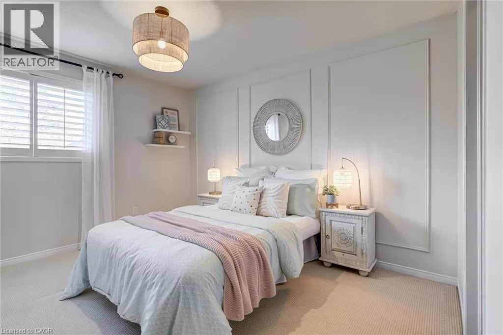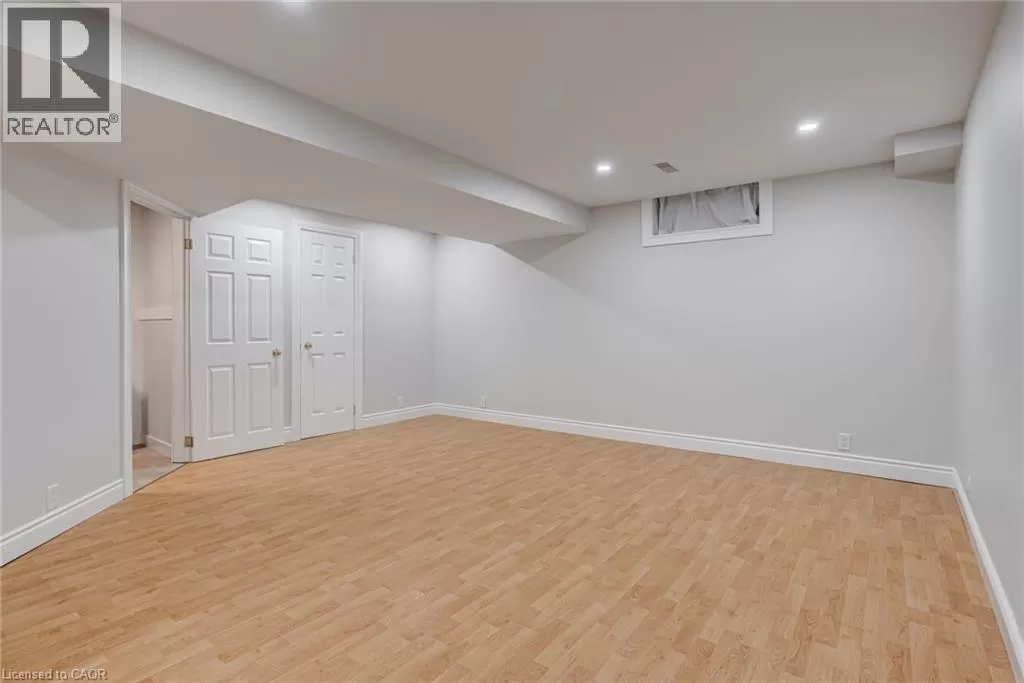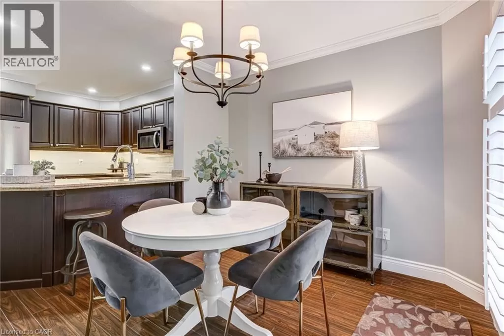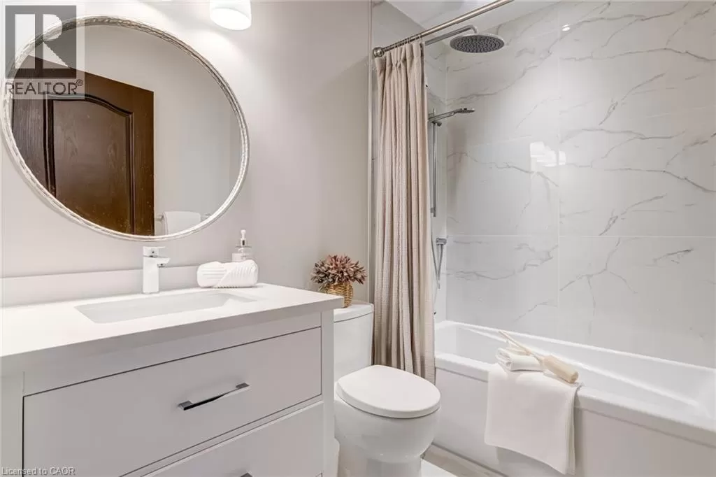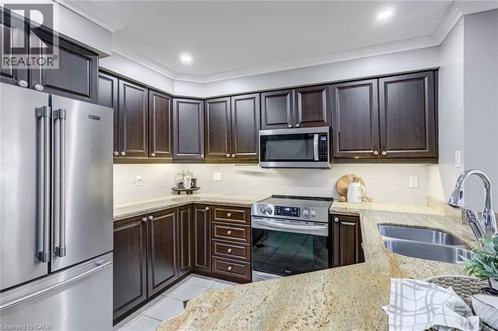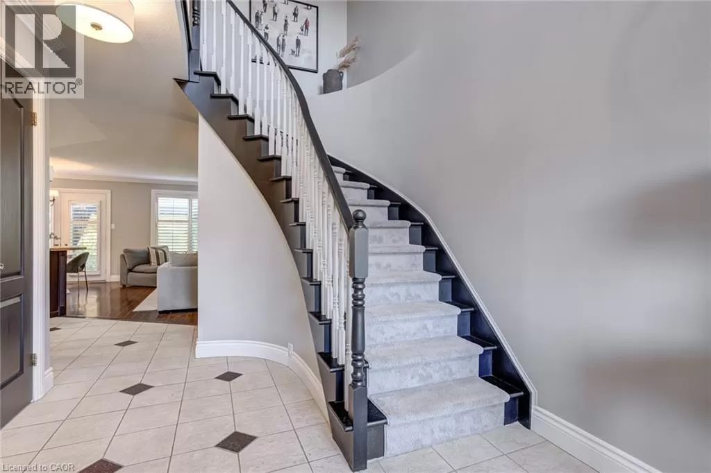 highway 403 to Fiddlers Green to Liam Drive to Foxborough Dr Executive end unit freehold townhome in a mature and family friendly Ancaster neighbourhood just steps to James Smith Park and only a minute drive from highway access. This stunning home offers more than 1600 square feet above grade plus a fully finished basement. Opulent double doors enter into a large two-storey foyer with double coat closet, inside entry from the garage and a main floor powder room. An open concept gourmet kitchen and living area is a fantastic entertaining space offering a gas fireplace, granite counters and stainless-steel appliances. French doors provide access to a fully fenced and beautifully landscaped yard with mature cedar trees providing plenty of privacy while you relax on a large deck with pergola. Additional features include a gas line for BBQ, side access to the front of the home and an entry door into the designer 1.5 car garage with built-in shelving and workbench. The recently renovated upper level offers 3 spacious bedrooms with two walk-in closets and unique to the townhomes in this area, there are two brand new full bathrooms with stylish finishes including a primary ensuite with glass walk-in shower. A fully finished basement provides a fantastic recreation space, a laundry room with sink, cold room, and a cedar storage closet. This wonderful home has excellent curb appeal and it is centrally located close to great schools, as well as all shopping amenities. (id:27476)