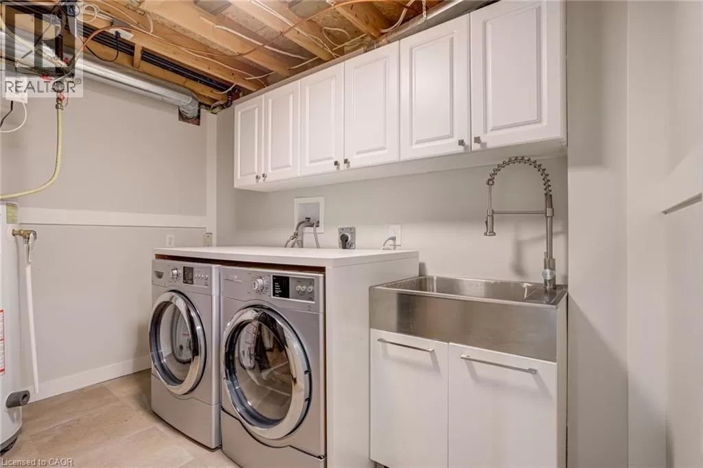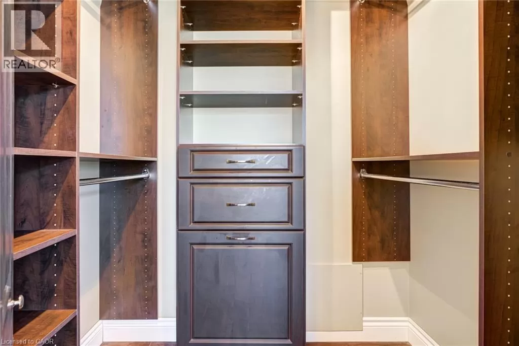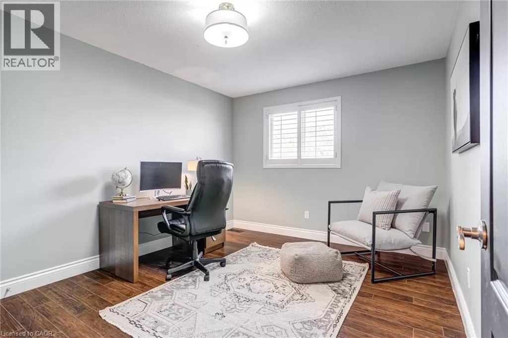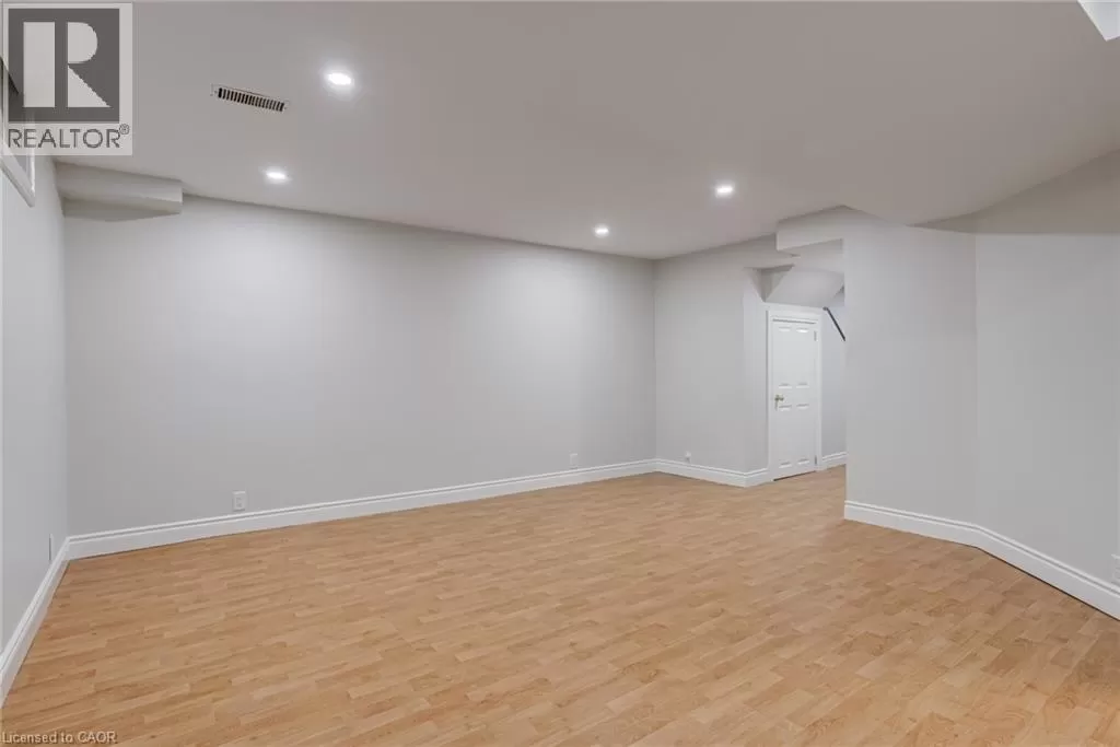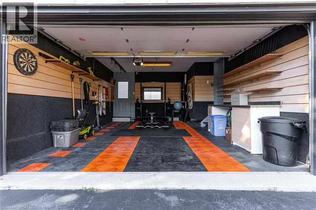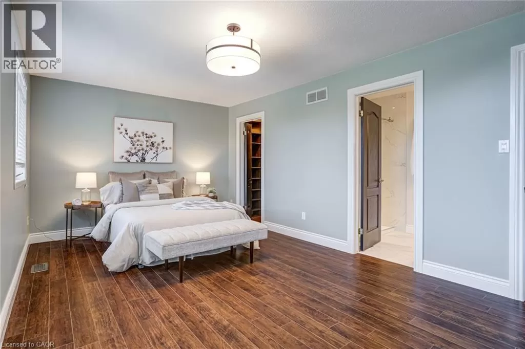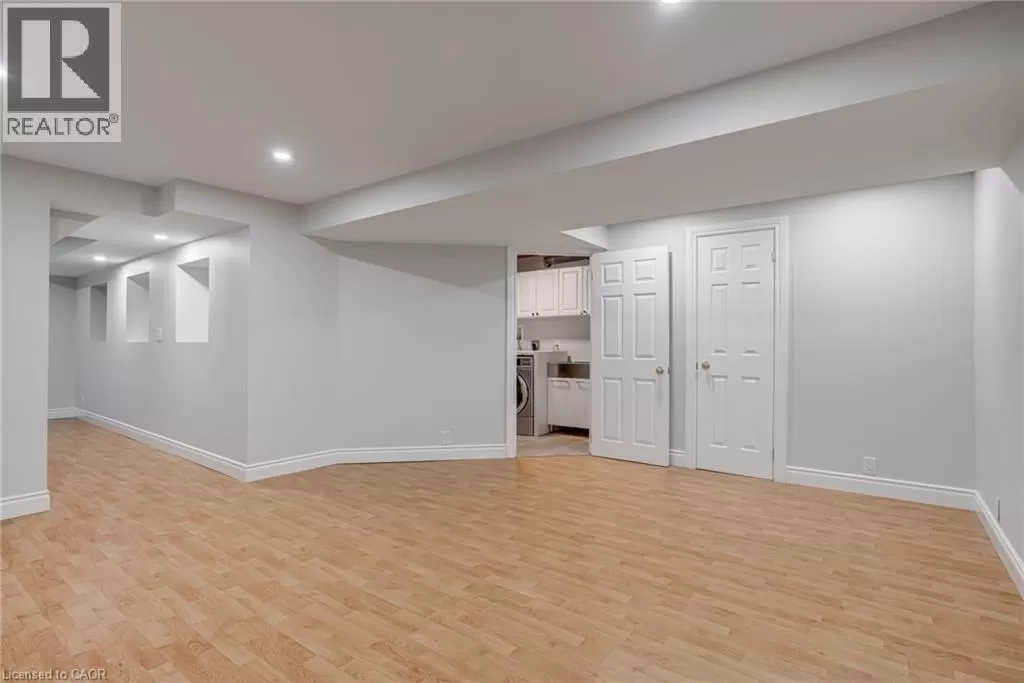 highway 403 to Fiddlers Green to Liam Drive to Foxborough Dr Executive end unit freehold townhome in a mature and family friendly Ancaster neighbourhood just steps to James Smith Park and only a minute drive from highway access. This stunning home offers more than 1600 square feet above grade plus a fully finished basement. Opulent double doors enter into a large two-storey foyer with double coat closet, inside entry from the garage and a main floor powder room. An open concept gourmet kitchen and living area is a fantastic entertaining space offering a gas fireplace, granite counters and stainless-steel appliances. French doors provide access to a fully fenced and beautifully landscaped yard with mature cedar trees providing plenty of privacy while you relax on a large deck with pergola. Additional features include a gas line for BBQ, side access to the front of the home and an entry door into the designer 1.5 car garage with built-in shelving and workbench. The recently renovated upper level offers 3 spacious bedrooms with two walk-in closets and unique to the townhomes in this area, there are two brand new full bathrooms with stylish finishes including a primary ensuite with glass walk-in shower. A fully finished basement provides a fantastic recreation space, a laundry room with sink, cold room, and a cedar storage closet. This wonderful home has excellent curb appeal and it is centrally located close to great schools, as well as all shopping amenities. (id:27476)