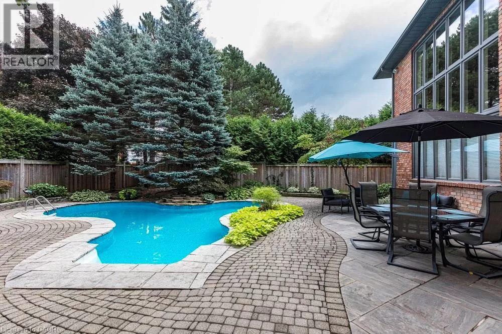 Mohawk Rd Lime Klin Rd Longfield Cres Right onto Briar Hill A home of classic distinction - 223 Briar Hill Crescent is a timeless family residence. Its stately brick façade, arched windows, & gabled roofline showcase refined Colonial-inspired architecture that feels both elegant & welcoming. Thoughtful updates, including a double garage and a beautifully landscaped front entry enhance its curb appeal in a mature, tree-lined setting. Inside, the traditional floorplan was designed with both living & entertaining in mind. The sunken living room offers a warm welcome, while the dramatic great room impresses with open-to-above ceilings. The formal dining area provides the perfect setting for family gatherings, while the updated kitchen & convenient mudroom adds everyday functionality. Upstairs, 4-bedrooms, 2-full baths, plus a dedicated home office provide the versatility that families need. The lower level expands the living space with a large rec room, den, full bath, & abundant storage. Outdoors, the fully fenced yard is a private retreat surrounded by mature trees. An inground pool with waterfall feature, pool shed/change room create the perfect summer escape, while interlock pathways & patio space complete this inviting setting. Ancaster Heights is a coveted neighbourhood, known for its executive homes, and quiet, family-friendly atmosphere. Minutes to the Ancaster Village, Meadowlands shopping center, & top-rated schools, it combines convenience with upscale charm. Easy access to HWY 403, and the LINC, makes it a breeze for commuters. (id:27476)