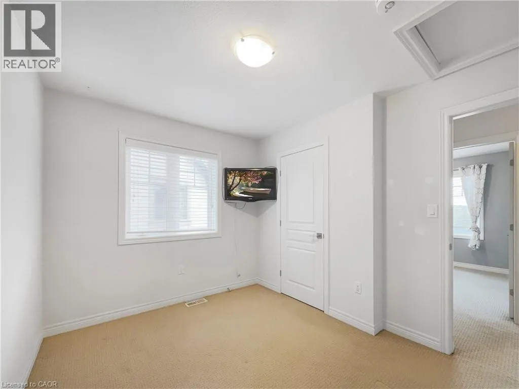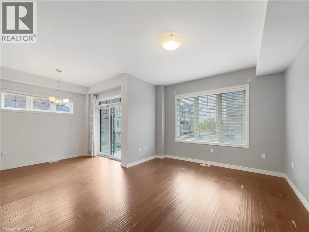 Garner Road East to John Frederick Road to Whaley Lane Welcome to this beautiful 3-bedroom, 2-bath end-unit townhouse in a prime Ancaster location! Enjoy easy access to the highway while living in a quiet, family-friendly neighbourhood. The home features 9-foot ceilings and a versatile main floor space that can be used as a home office, playroom, or even a convenient home gym. The kitchen is bright and modern, with quartz countertops, stainless steel appliances, a breakfast bar, and a dining area that opens to a cozy balcony, perfect for morning coffee or evening relaxation. Hardwood floors run through the main and second levels, while the carpeted third floor adds comfort and warmth to the bedrooms. *****Photos are from when the home was newly built. The property is currently equipped with all appliances. As the home is tenant-occupied, updated photos are not available at this time. (id:27476)