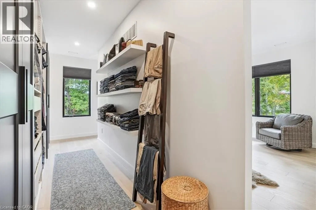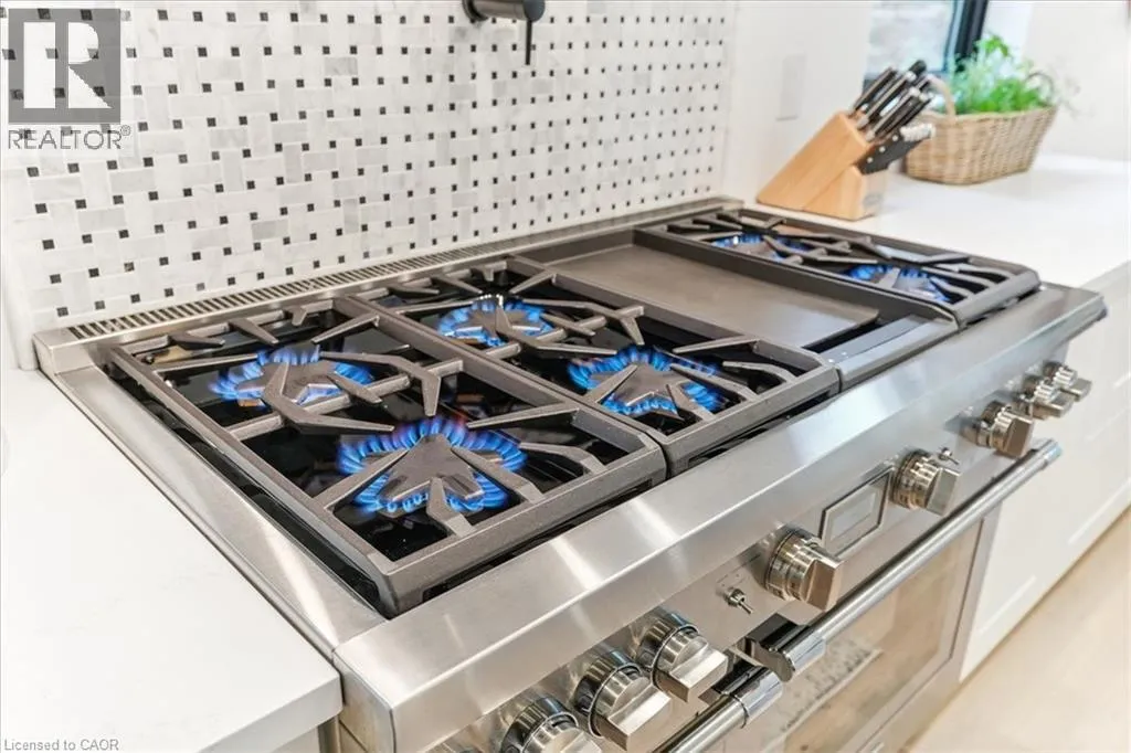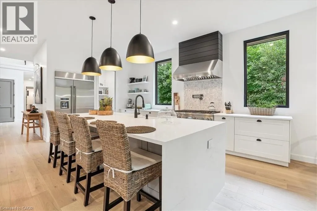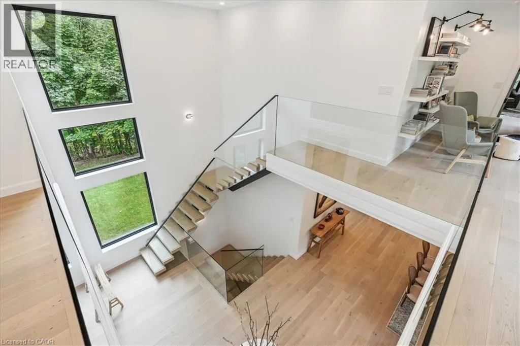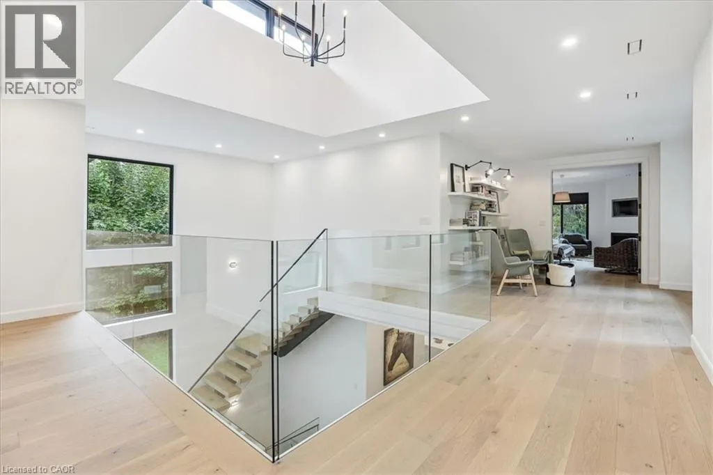 Wilson St E to Sulphur Springs Rd, Left on Mansfield Dr to Reding Rd. Modern prairie-style architecture in the heart of historic Ancaster. This recently completed two-storey custom house, features 5 bedrooms, 5+1 bathrooms with heated floors, a luxurious primary suite with a walk-through closet, and a main floor guest/in-law suite. Perfect for any culinary enthusiast, the gourmet kitchen includes a spacious waterfall quartz island, high-end appliances, two dishwashers, and a butler's pantry. This contemporary property offers two laundry rooms, three gas fireplaces, a cedar sauna, a heated salt water 32'x16' rectangular pool, and professionally designed gardens backing on Mansfield Park. There are integrated ceiling speakers, alarm system, security cameras, and whole house Cat6 wired network. Electrolux wine cooler in butler's pantry is a practical luxury as well as central vacuum and towel warmers and heated floors in all bathrooms. Large expanses of glass and an open floor plan allow for enjoyable circulation and a tranquil connection to nature throughout the house. Walking distance to restaurants, arts centre, scenic Ancaster Mill, Dundas Valley conservation area, and hiking trails, renowned Hamilton Golf and Country Club, all-season tennis courts, library, shopping, schools, and other amenities. Close proximity to McMaster University and major highways. (id:27476)