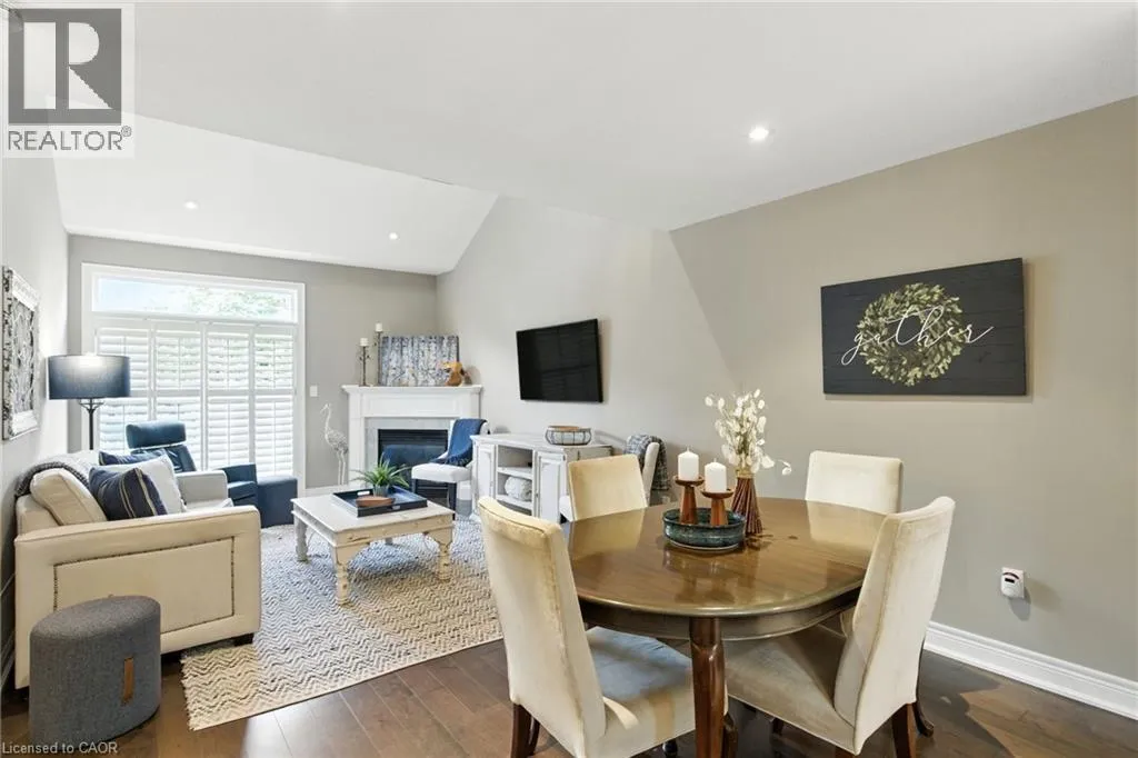 Kitty Murray Lane to Belfort Terrace to Toulon Avenue to Burgundy Grove Welcome to 4 Burgundy Grove, an executive-style bungaloft designed for those looking to downsize without compromise. With exterior maintenance taken care of, you can relax and enjoy almost 1,700 sq ft of elegant living space paired with a finished lower level for added versatility. The main floor offers a thoughtful layout with a primary suite featuring two closets and a spacious five-piece ensuite, ensuring comfort and convenience. At the front of the home, a bright office/den or sitting room and a two-piece powder room create the perfect work-from-home or guest-friendly space. The open-concept kitchen, dining and living area is ideal for entertaining, flowing seamlessly onto a private patio with wrought iron fencing overlooking peaceful greenspace. Upstairs, the loft level presents a large family room and a second generously sized bedroom with its own ensuite, perfect for guests or extended family. The finished basement extends the living space with a second family room, two additional bedrooms, a full bathroom and plenty of storage. Located in Ancasterâs sought-after Meadowlands community, this home is close to shopping, dining, and everyday conveniences, with easy highway access for commuters. Donât be TOO LATE*! *REG TM. RSA. (id:27476)