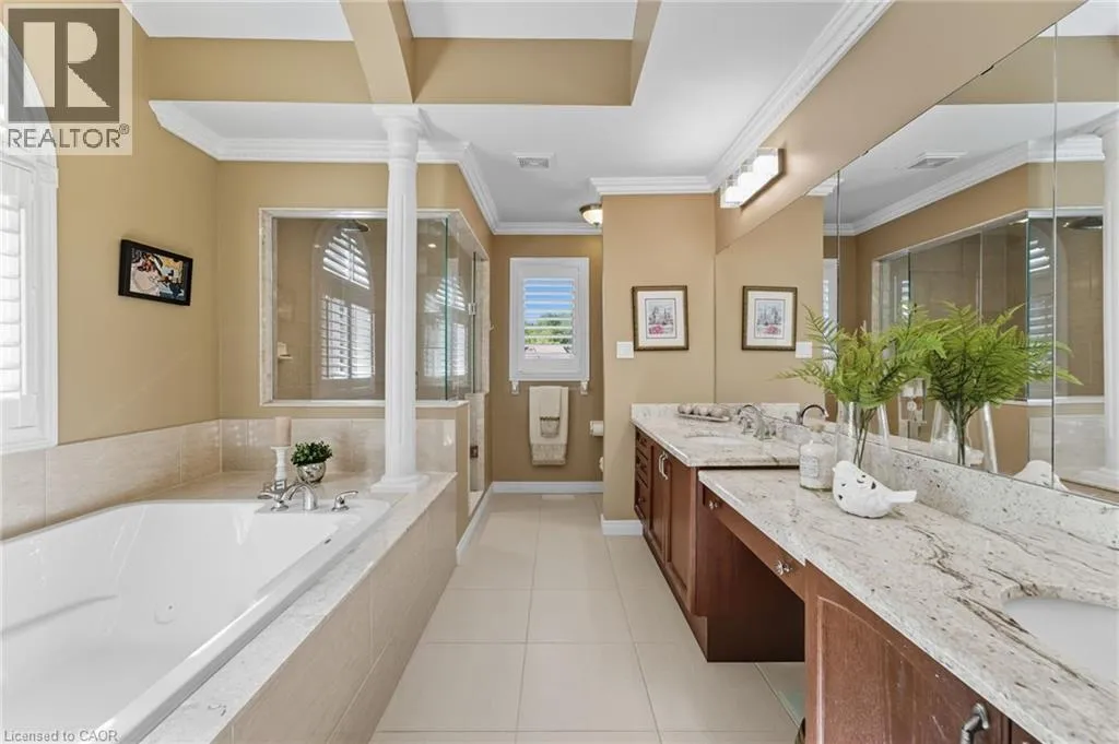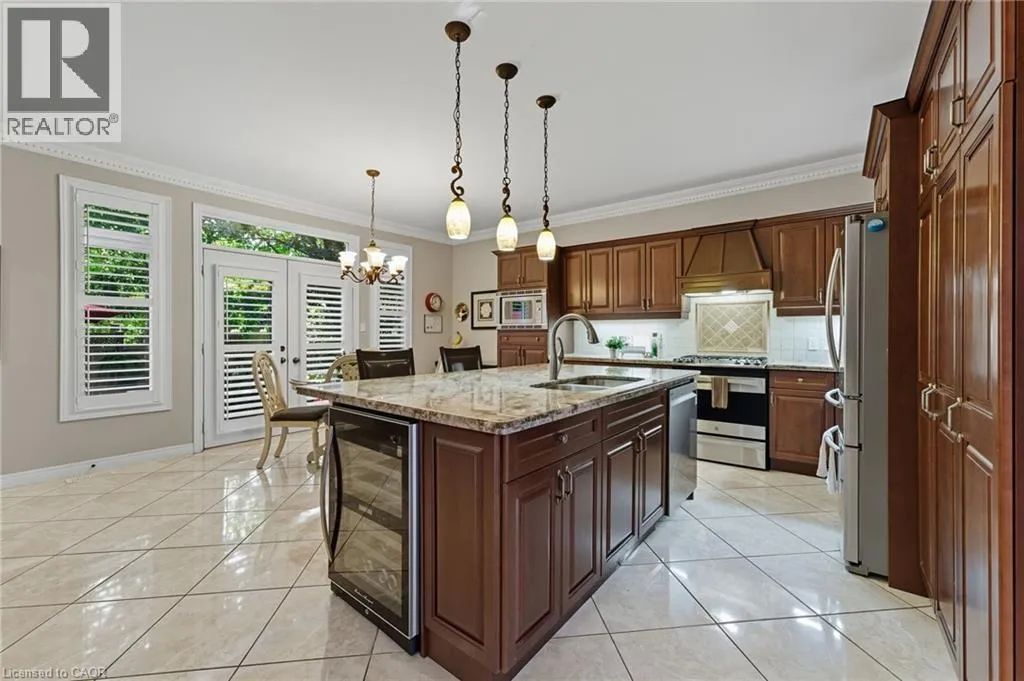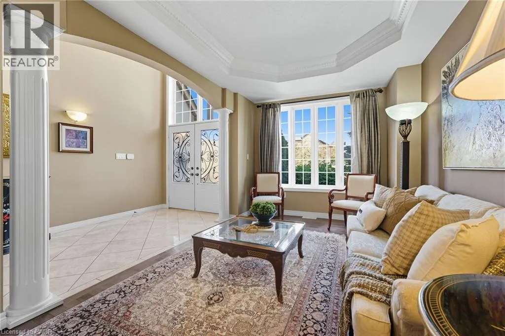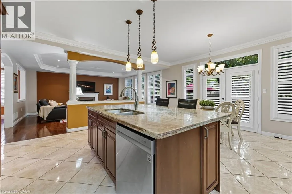 Southcote to Bookjans, left on Maplevale, left on Lorupe Welcome to this exceptional 3300+ sq. ft. home with a fully finished basement on a pie shaped, mature lot in adesirable court location. Perfectly designed for families, multigenerational living, and entertaining, this property combines elegant finishes with functional spaces. Step inside to find hardwood floors throughout the main level, crown moulding, coffered ceilings, and decorative art niches that add timeless character. The home boasts large principal rooms filled with natural light, creating an inviting atmosphere for gatherings and everyday living.At the heart of the home is the chefâs kitchen, featuring a substantial island with extensive workspace, abundant cabinetry, and the perfect setting for family meals or entertaining guests. The rear wall of windows overlooks the beautifully landscaped backyard, complete with mature shade trees, river rock accents, and a spacious aggregate concrete patioâideal for outdoor dining and relaxation.Upstairs, youâll find four generous bedrooms, each with its own ensuite or ensuite privilege, ensuring comfort and privacy for the whole family. A bright loft area offers the perfect spot for a home office or cozy den. The fully finished basement features a separate entrance, making it an excellent in-law suite or multigenerational living option. With a kitchenette/wet bar, built-in counter space, and an additional bedroom, the possibilities are endlessâwhether for extended family, a private retreat, or entertaining space.Set on a large pie-shaped lot in a quiet court, this home offers both privacy and prestige. With its combination of space, elegance, and functionality, itâs a rare opportunity not to be missed. (id:27476)
