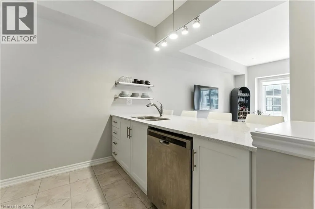 Garner Road to Glancaster Welcome to this bright and spacious 2-bedroom, 2-bathroom townhome nestled in a quiet and desirable Ancaster neighbourhood. Designed with both comfort and functionality in mind, this home wonât disappoint! The main floor features a versatile multi purpose den, perfect for a home office, workout area, or cozy retreat, along with a large closet for ample storage. Upstairs, discover a stunning open-concept living space bathed in natural light from expansive windows and patio doors leading to a Juliet balcony. Entertain with ease in the upgraded kitchen, complete with stainless steel appliances, quartz countertops, pot lights, a breakfast bar that comfortably seats four, and a seamless flow into the dining area. The living room is equally inviting, featuring wide-plank hardwood floors and brilliant natural light by day, transitioning to warm, ambient lighting at night. The third floor offers an upgraded primary bedroom with a generous walk-in closet and a large window that fills the space with light. A spacious second bedroom also features a walk-in closet, offering plenty of room for guests, family, or additional office space. Convenient bedroom-level laundry adds modern practicality, while the main bathroom impresses with a double vanity and a sleek glass-enclosed shower. Ideally located just minutes from the vibrant Meadowlands shopping and dining district, highway access, and scenic nature trails, ensuring the perfect balance of urban convenience and peaceful surroundings. (id:27476)