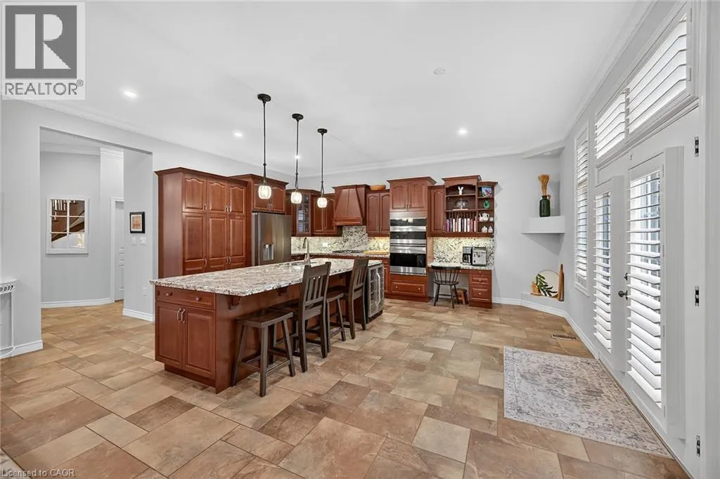 STONEHENGE TO CLOVERLEAF Welcome to 248 Cloverleaf Drive in Ancaster â an elegant & spacious executive home in a quiet, family-friendly area backing onto a forest. With over 3,500 sq. ft. above grade, plus a professionally finished basement (2022), this home has 5+1 bedrooms, 4.5 bathrooms & a layout designed for modern living. The main floor combines formal & open spaces, including a separate living room & dining room, a large bright eat-in kitchen, family room with fireplace, 2-piece washroom & separate laundry room. Upstairs are five generous bedrooms & three full, renovated bathrooms including a luxurious primary bedroom & 5-piece ensuite (2023). The lower level adds versatile living space featuring a recroom with custom fireplace, a glass-enclosed gym, 3-piece bath, office or guest bedroom, wine cellar & large storage room. Step outside to a beautifully landscaped yard with an in-ground gunite pool with water feature, custom pool house, expansive stonework, all backing onto a picturesque, forested area. Other recent updates include: metal roof (2023), new garage doors (2023), furnace & AC (2022) pool heater (2025) chlorinator (2024). Close to excellent schools, parks, Hamilton Golf & Country Club, shopping & highway access â this is a superior, move-in-ready home. (id:27476)