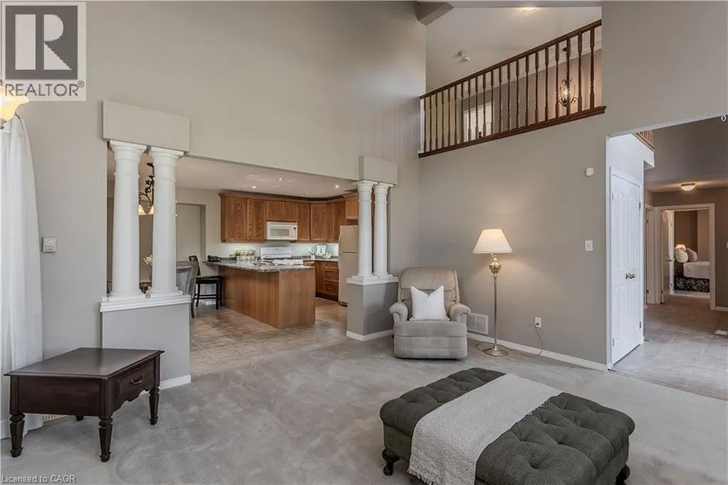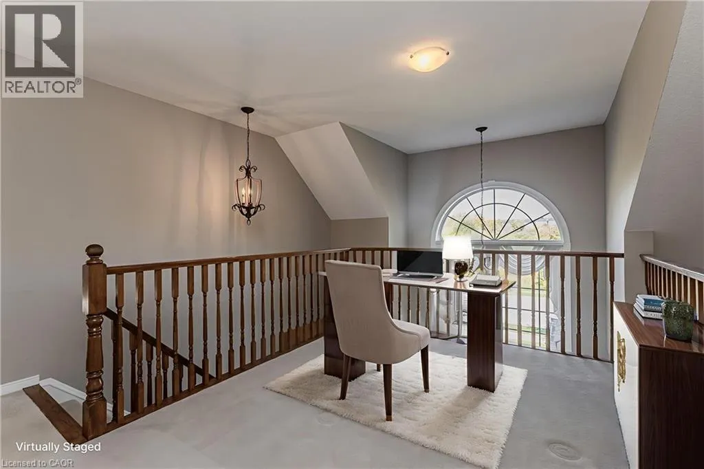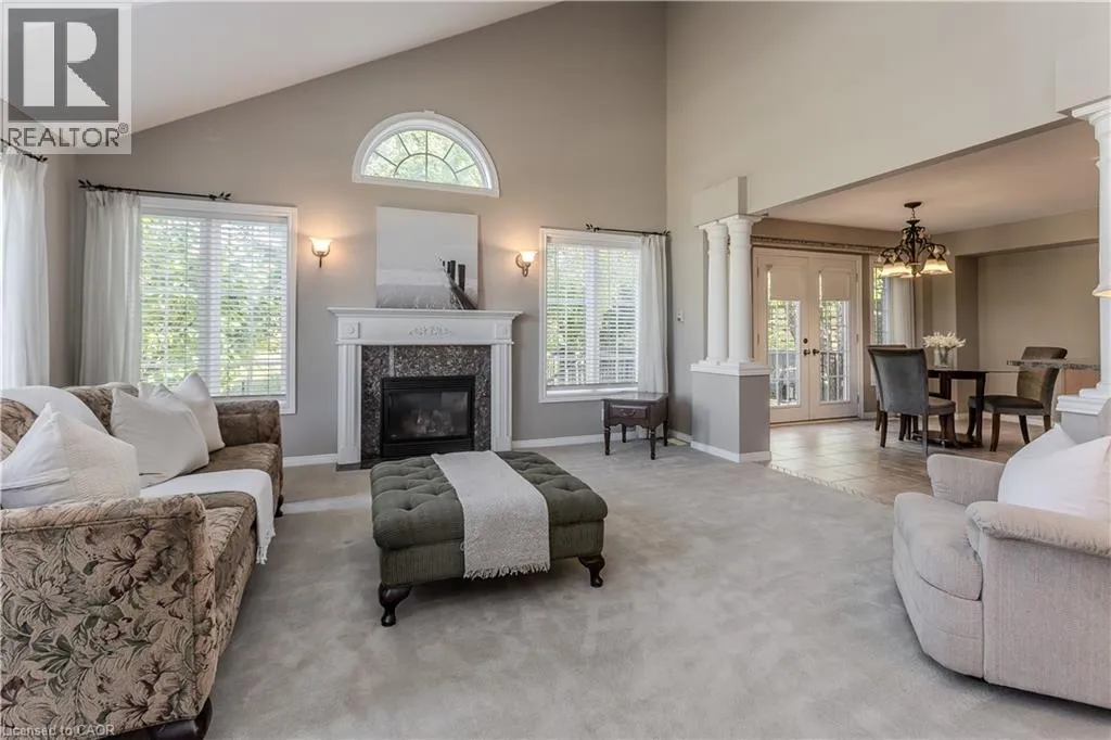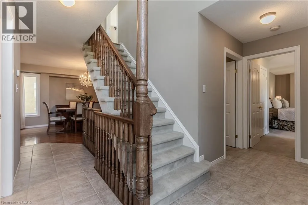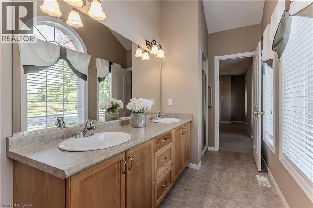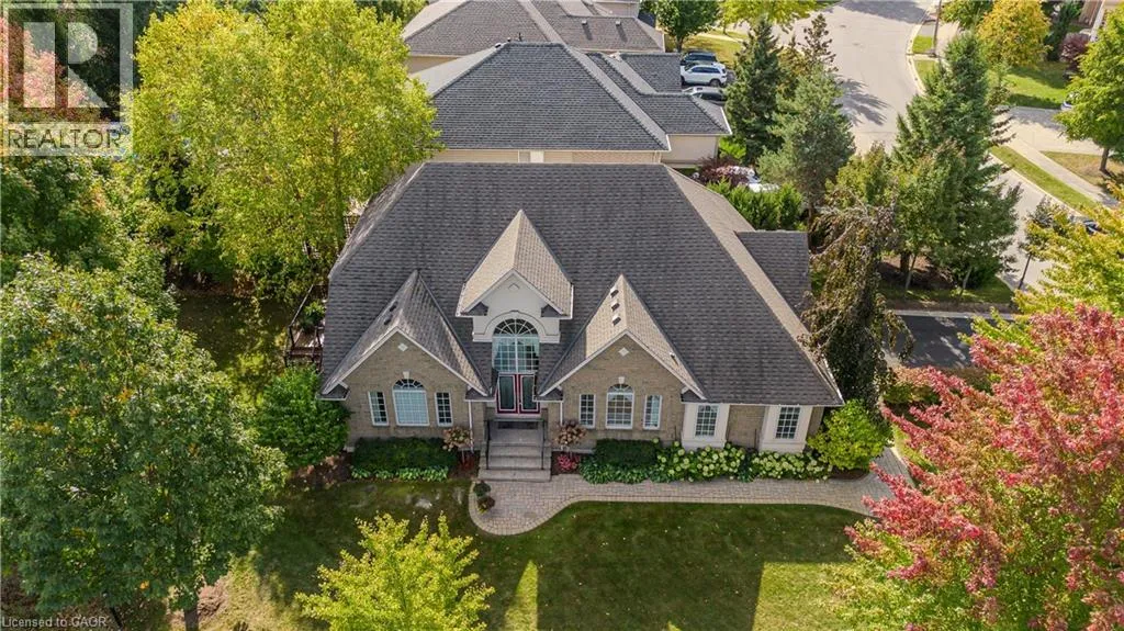 Stonehenge Drive to Diiorio Circle Welcome to a rare offering in the heart of Ancasterâan impeccable bungaloft perfectly positioned on a premium corner lot, backing onto a ravine with no rear neighbours. Offering 3174sf of living space, this meticulously maintained home delivers the ideal blend of elegance, functionality, and privacy for growing families seeking both space and serenity. Perfect for bird/animal lovers, with sightings of deer, turkey and various wildlife at your doorstep. Professional landscaping and interlock walkway set the tone for whatâs found within. Step into a main floor designed for effortless living. The living room features soaring vaulted ceilings, large sunlit windows, and a gas fireplace with stone surround and timeless mantle, creating a welcoming space for family gatherings. The generous eat-in kitchen offers abundant cabinetry, undermount lighting, large peninsula w/ breakfast bar, and access to the rear deckâideal for indoor-outdoor entertaining. A formal dining room with rich hardwood flooring provides a refined setting for family meals and celebrations. The main floor primary suite offers the luxury of single-level living, with dual closets and a 4pc ensuite featuring a dual-sink vanity and walk-in shower. A convenient powder room and main floor laundry add everyday ease. Upstairs, the spacious loft level is perfect for children or guests, offering a cozy sitting area and two well-sized bedrooms, both with ensuite privileges to a shared 6pc bathroomâensuring smooth morning routines and personal comfort. The fully finished lower level expands the homeâs versatility with an oversized recreation room, ideal for a games room, media lounge, or teen retreat, complemented by an additional 3pc bathroom. Outside, the backyard retreat is a serene escape, backing onto mature trees and a tranquil ravine, with a wooden deck and ample green space for children to play and families to unwind. A rare combination of size, privacy and lifestyle in an unbeatable Ancaster location. (id:27476)