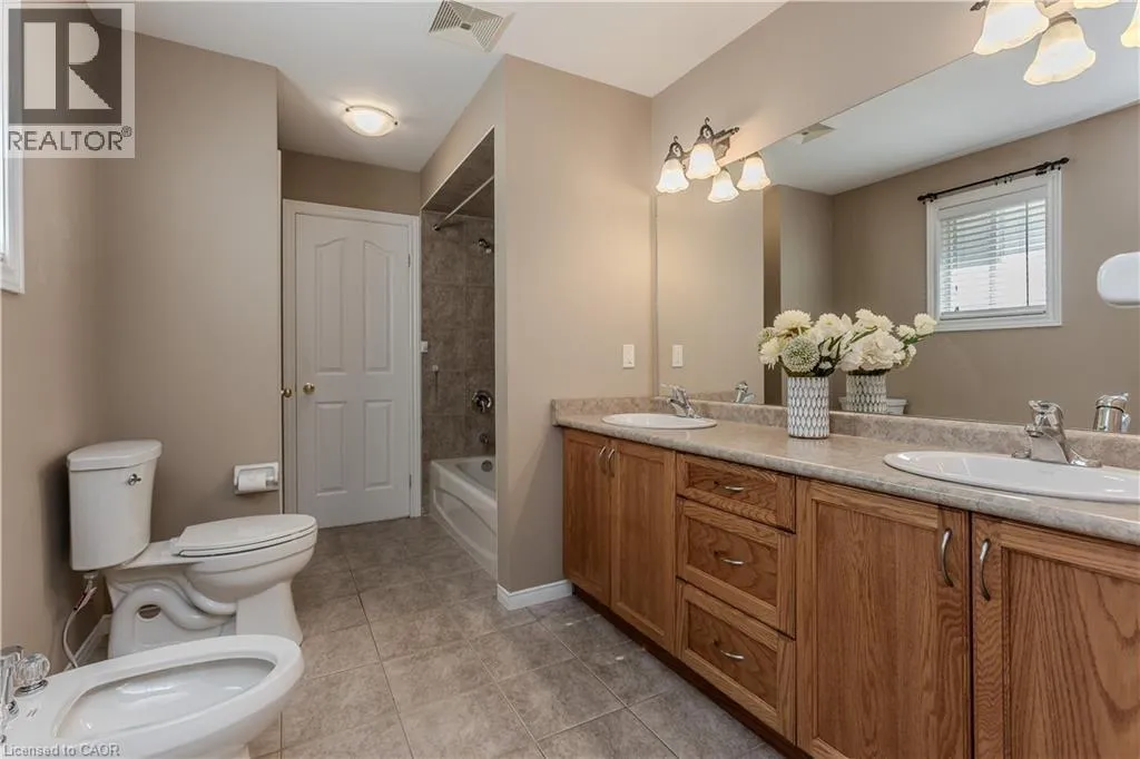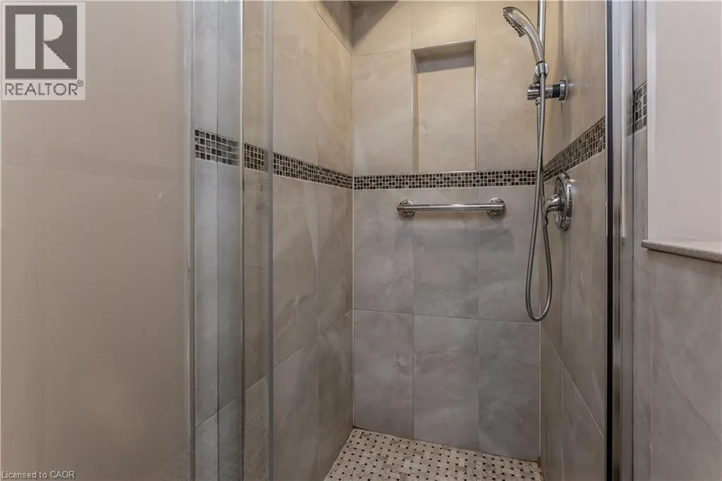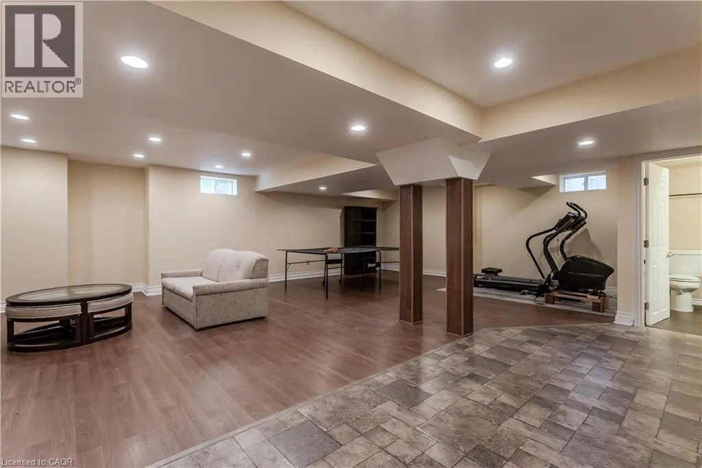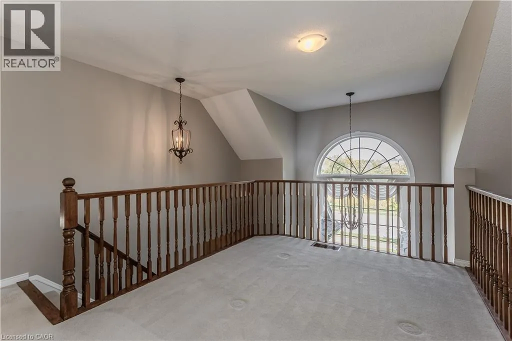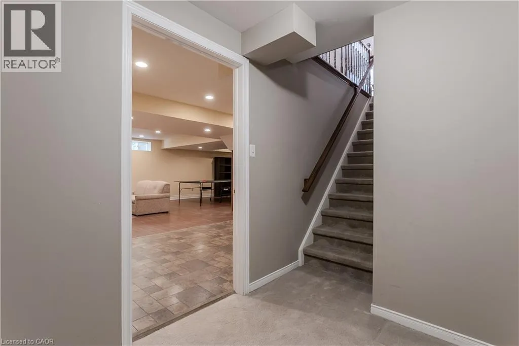 Stonehenge Drive to Diiorio Circle Welcome to a rare offering in the heart of Ancasterâan impeccable bungaloft perfectly positioned on a premium corner lot, backing onto a ravine with no rear neighbours. Offering 3174sf of living space, this meticulously maintained home delivers the ideal blend of elegance, functionality, and privacy for growing families seeking both space and serenity. Perfect for bird/animal lovers, with sightings of deer, turkey and various wildlife at your doorstep. Professional landscaping and interlock walkway set the tone for whatâs found within. Step into a main floor designed for effortless living. The living room features soaring vaulted ceilings, large sunlit windows, and a gas fireplace with stone surround and timeless mantle, creating a welcoming space for family gatherings. The generous eat-in kitchen offers abundant cabinetry, undermount lighting, large peninsula w/ breakfast bar, and access to the rear deckâideal for indoor-outdoor entertaining. A formal dining room with rich hardwood flooring provides a refined setting for family meals and celebrations. The main floor primary suite offers the luxury of single-level living, with dual closets and a 4pc ensuite featuring a dual-sink vanity and walk-in shower. A convenient powder room and main floor laundry add everyday ease. Upstairs, the spacious loft level is perfect for children or guests, offering a cozy sitting area and two well-sized bedrooms, both with ensuite privileges to a shared 6pc bathroomâensuring smooth morning routines and personal comfort. The fully finished lower level expands the homeâs versatility with an oversized recreation room, ideal for a games room, media lounge, or teen retreat, complemented by an additional 3pc bathroom. Outside, the backyard retreat is a serene escape, backing onto mature trees and a tranquil ravine, with a wooden deck and ample green space for children to play and families to unwind. A rare combination of size, privacy and lifestyle in an unbeatable Ancaster location. (id:27476)