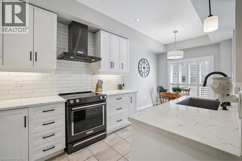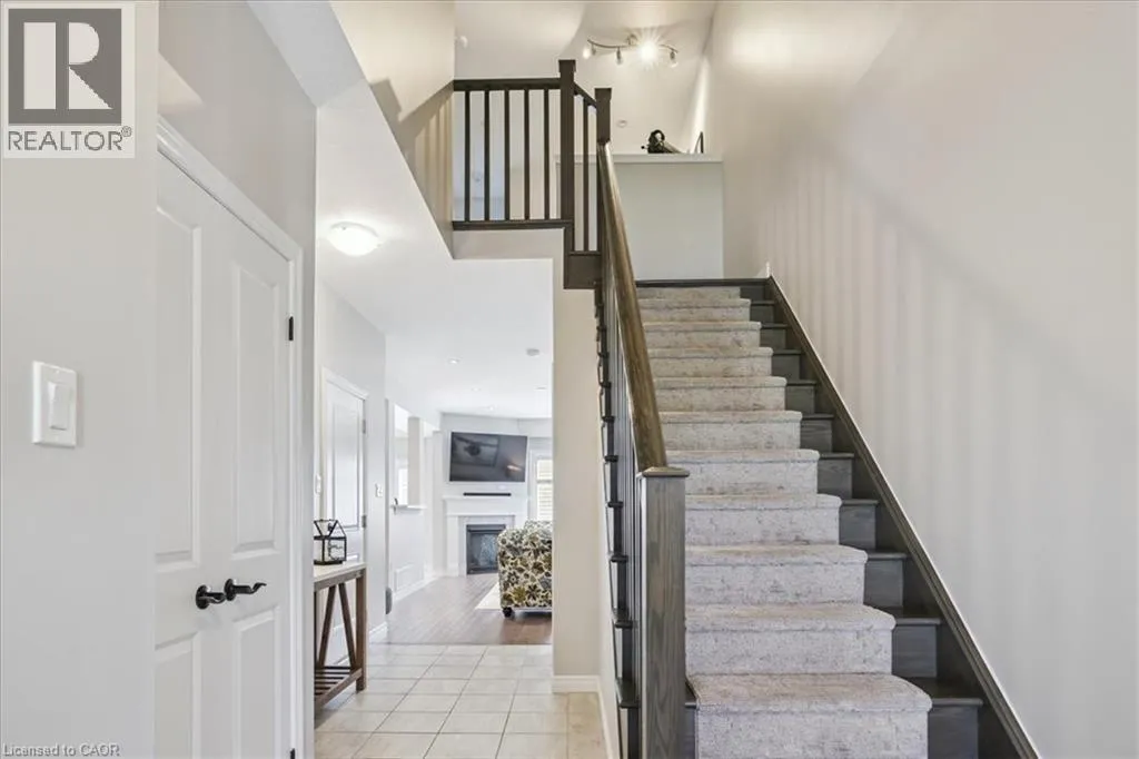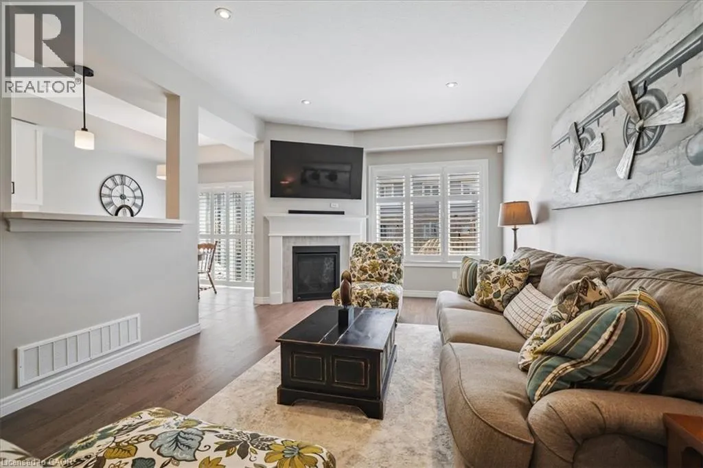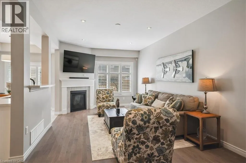 RAYMOND TO ROBERTSON. LEFT ON BEASLEY Welcome to 81 Beasley Grove - Upgraded Freehold Townhome on a quiet cul de sac, in desirable Meadowlands in Ancaster! Located on a quiet, family-friendly street, this beautifully upgraded freehold townhome offers 3 bedrooms, 3 bathrooms, and approximately 1,600 square feet of thoughtfully designed living space in the desirable Meadowlands community. This home is packed with premium features, including quartz countertops throughout, California shutters, and striking custom board and batten accent walls that add a designer touch. Enjoy the glow of pot lights in the kitchen, living room, and upper hallway/loft, and unwind by the cozy gas fireplace. The oak staircase adds timeless character, while the gas line in the backyard is perfect for BBQs and entertaining. You'll also love the professionally installed irrigation system in both the front and back yards, keeping your lawn and gardens lush with minimal effort. The home is equipped with a Beat Recovery Ventilation (BRV) system, ensuring fresh, filtered air and improved energy efficiency year-round. Upstairs, you'll appreciate the convenient second-floor laundry and a spacious loft ideal for an office, playroom, or reading nook. The basement offers a bathroom rough-in, giving you flexibility for future development. Enjoy the perks of freehold living with no condo fees, in a peaceful neighborhood close to top-rated schools, parks, shopping, and transit. Don't miss your chance to own this turn-key gem at 81 Beasley Grove - book your private showing today! (id:27476)