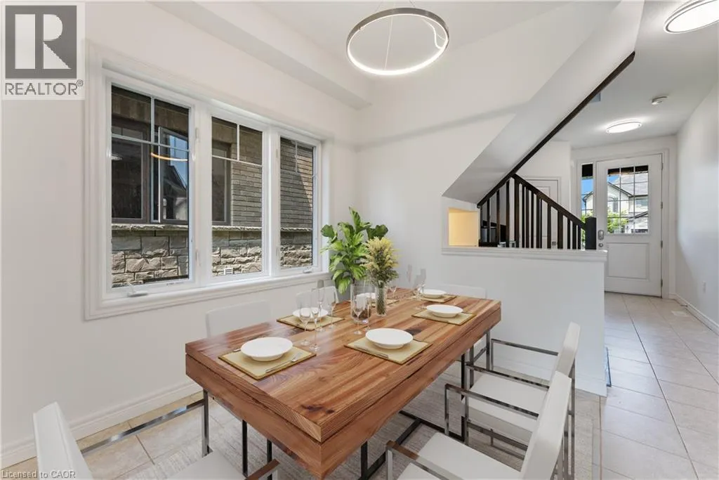 Garner to John Frederick if coming from the East Executive End Unit townhome (this is a true freehold! NO CONDO OR ROAD FESS!!!) in Ancaster! This spacious home offers a bright open-concept layout with oversized windows and plenty of natural light throughout. The main level features a modern kitchen with granite countertops, brand new Fridge and Stove, a large island, and hardwood floors, all complemented by soaring 9 ft ceilings. Upstairs, you'll find 3 bedrooms, including a spacious primary suite with ensuite bath, plus the convenience of second-floor laundry. Tucked away in a quiet and family-friendly neighborhood, just minutes from schools, shopping, restaurants, Hamilton Golf & Country Club, Hwy 403, & transit to McMaster & Redeemer Universities. Note: Long driveway Parking for 2 cars + the Garage.(total 3 parking spaces) Fully fenced spacious back yard. (id:27476)