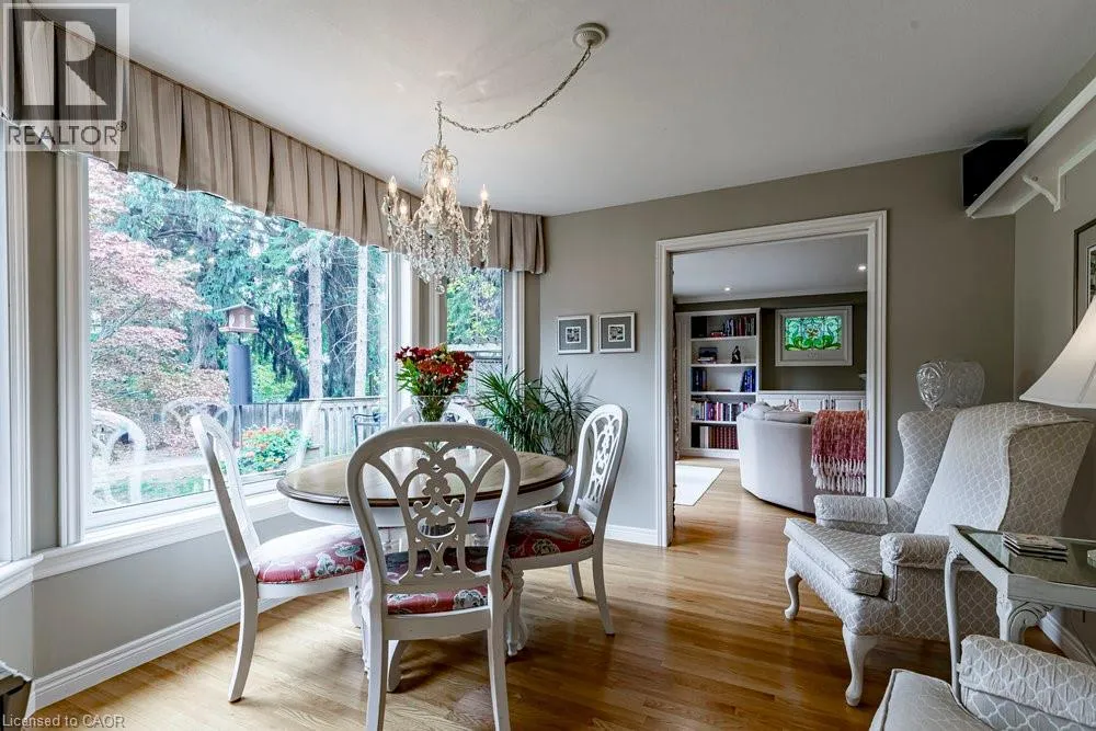 Wilson to Jerseyville to Lovers Tucked away on one of Ancasterâs most admired streets, this exceptional property sits on a stunning half-acre private lot surrounded by mature trees and lush landscaping. The home strikes a perfect balance between elegance and ease, with a blend of formal spaces and relaxed living areas finished to a high standard throughout. The thoughtfully designed kitchen and inviting gathering areas make entertaining and everyday living equally enjoyable. Upstairs, the spacious primary suite offers a peaceful escape, complete with a beautifully appointed ensuite bath and generous storage. The fully finished lower level adds even more versatility, providing space for a media room, gym, or guest accommodations. Outside, the property truly shines â featuring a large pool, expansive rear deck, and a detached garage with an integrated pool house that extends your living space outdoors. All of this is just moments from Ancasterâs charming downtown core, with easy access to trails, parks, schools, and major highways. 27 Lovers Lane offers the rare combination of privacy, sophistication, and connection to everything that makes Ancaster special. (id:27476)