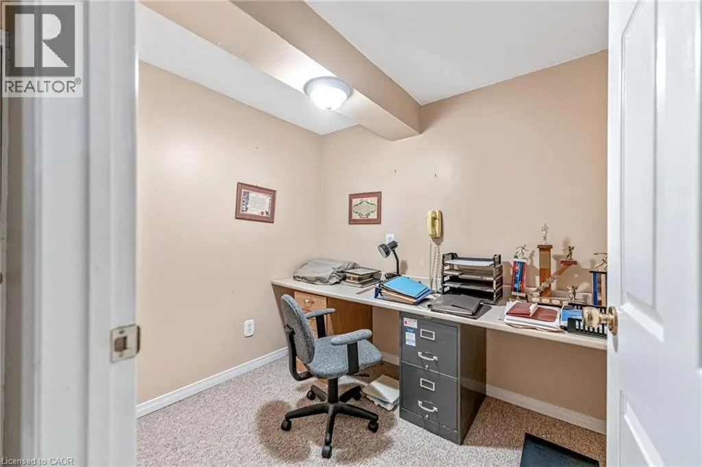 Golf Links Rd to Kitty Murray Lane Experience Exceptional Adult-Lifestyle Living in Ancaster Welcome to this beautifully maintained bungalow townhome in the highly desirable Bungalows of Meadowlands community. Ideally located just steps from public transit, restaurants, grocery stores, and shopping, and offering quick access to Highway 403 and the Lincoln M. Alexander Parkway, this home truly offers the best of comfort and convenience. With approximately 1,100 sq. ft. of thoughtfully designed living space, this bright and airy home features vaulted ceilings and a skylight, creating an open and inviting atmosphere. Enjoy seamless indoor-outdoor flow with a private patioâideal for relaxing or entertaining. The fully finished basement adds incredible value and versatility, offering a second kitchen, a spacious recreation room with a cozy fireplace, and additional living spaceâperfect for extended family, guests, or entertaining. Whether you're downsizing or seeking a low-maintenance lifestyle, this charming bungalow offers comfort, style, and unbeatable location all in one package. RSA (id:27476)