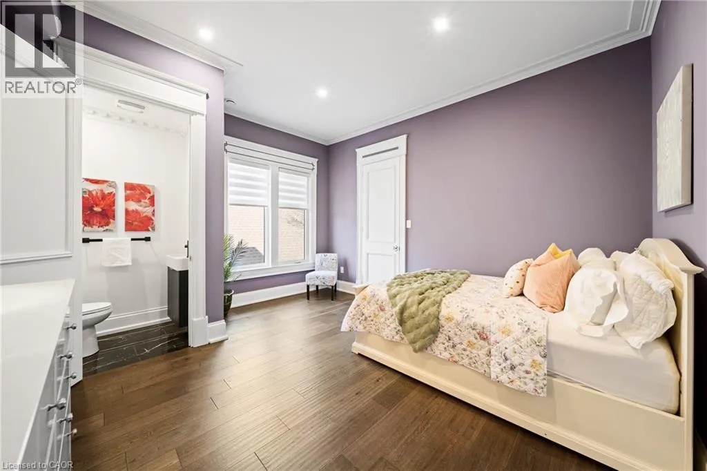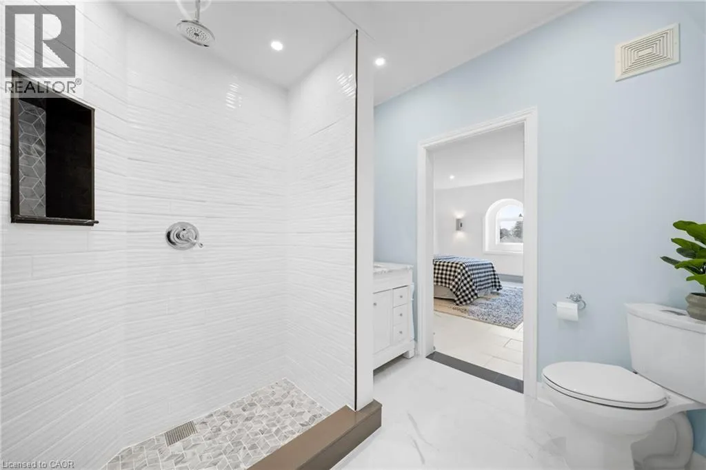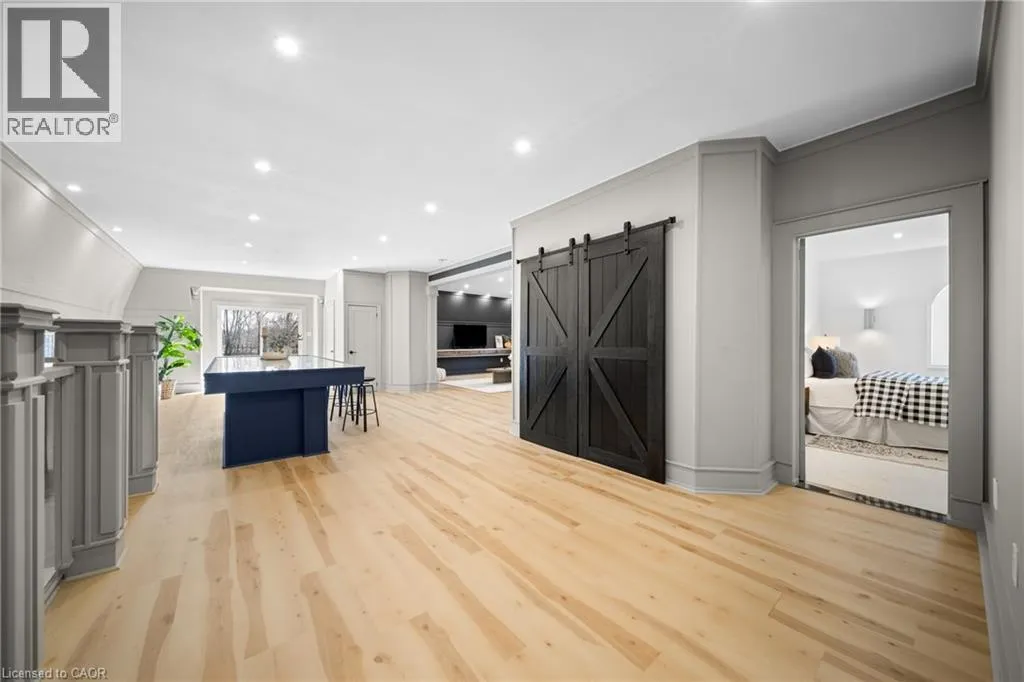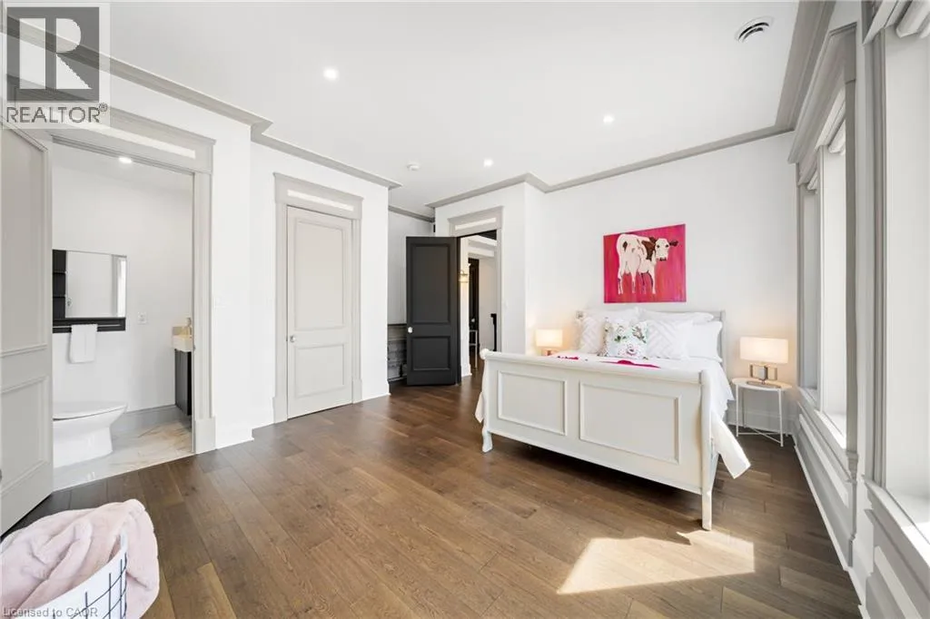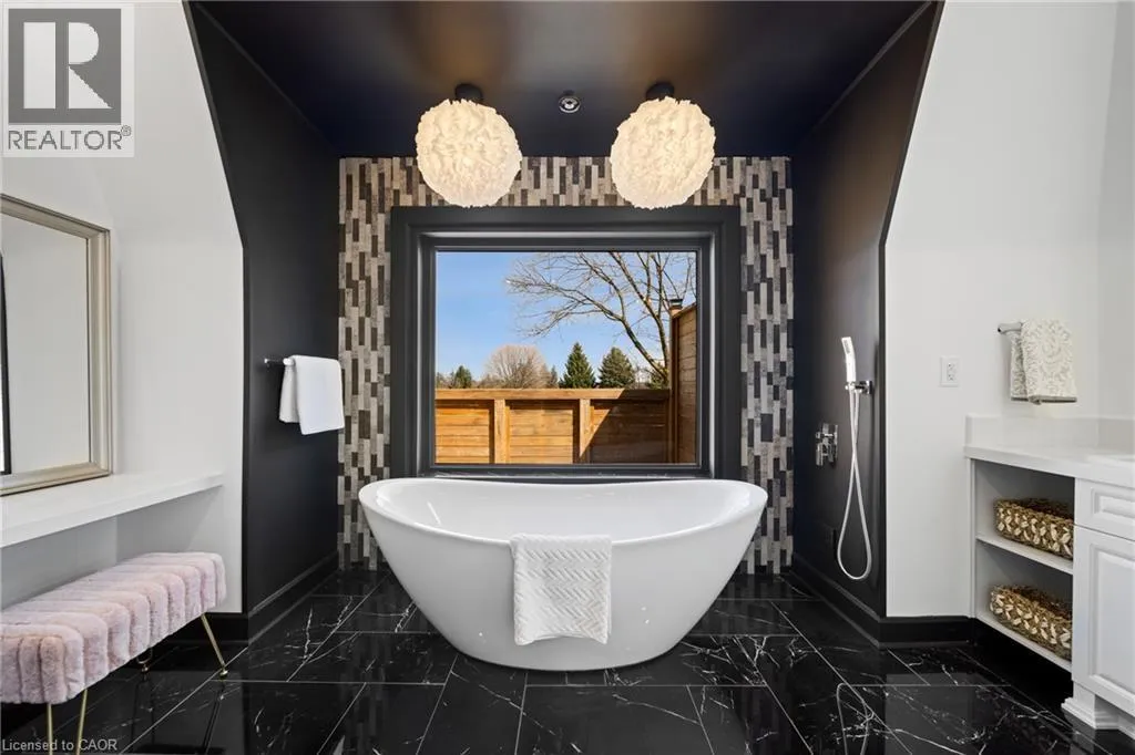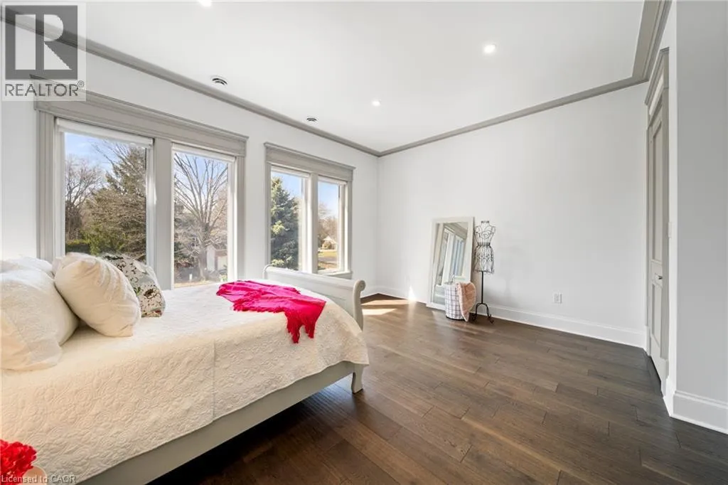 Wilson Street to Cameron Nestled in scenic Ancaster Village, this French Chateau-inspired residence offers over 7,000 sqft of luxury backing onto the iconic Hamilton Golf Club, with sweeping views of one of Canadaâs premier courses. This 3-storey masterpiece features 4 beds, 7 baths, 10.5â soaring ceilings, custom millwork, and refined European design. The main floor is designed for entertaining, showcasing a gourmet kitchen with high-end appliances, quartz counters, custom cabinetry and a large island. Three sets of double doors open to a covered outdoor dining area. A formal dining room with chandelier, fireplace and wet bar adds elegance, while the family room with built-ins and fireplace connects seamlessly to the landscaped yard. Second level is dedicated to ultimate comfort, 3 spacious bedrooms each with private baths & walk-in closets. Primary suite boasts gorgeous stone fireplace, custom walk-in closet & spa-like ensuite with freestanding tub, rainfall shower, glass shower, and private terrace overlooking the golf course. Third level serves as a secluded refuge with spacious living room, large bedroom, full bath & kitchenette. A walk-out portico terrace offers panoramic views of the golf course. Lower level features 9' ceilings, a recroom, fitness room, family room with another fireplace, full bathroom, heated floors & a kitchenette. A wine cellar completes your chateau experience. The property boasts a cedar-ceiling covered deck, outdoor gas fireplace, mature trees for privacy, 5 fireplaces, 3 dishwashers, Terrazzo concrete driveway & large tandem garage with 4-post car lift for the car enthusiast. Crafted with an ICF foundation and whole-home hydronic in-floor heating across all four levels, the residence delivers year-round comfort, remarkably low operating costs, and a reduced carbon footprintâluxury thatâs as smart as it is beautiful. Close to fine dining, shopping, trails, and conservation areas, this property is a rare haven of sophistication, luxury, and timeless elegance. (id:27476)