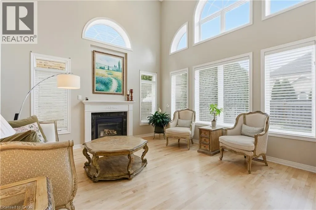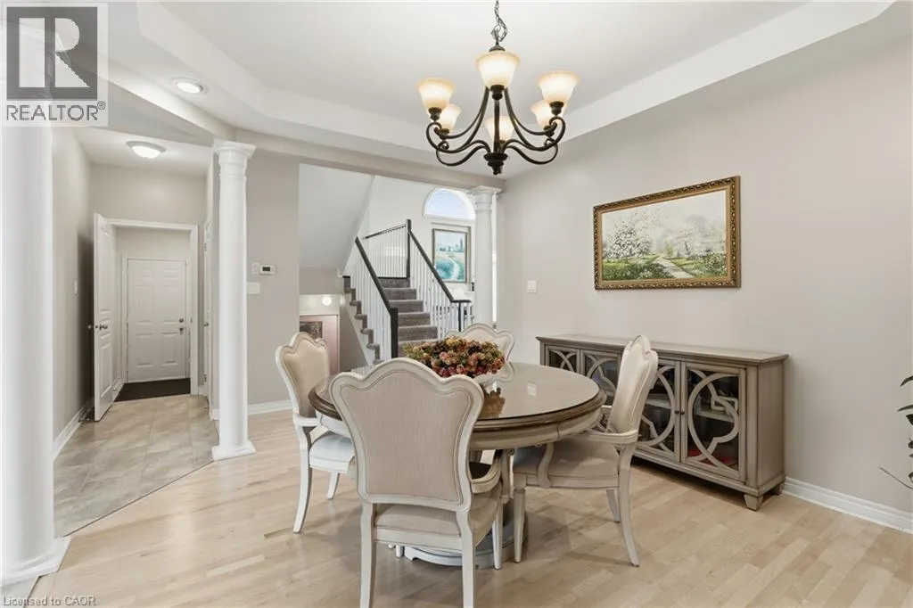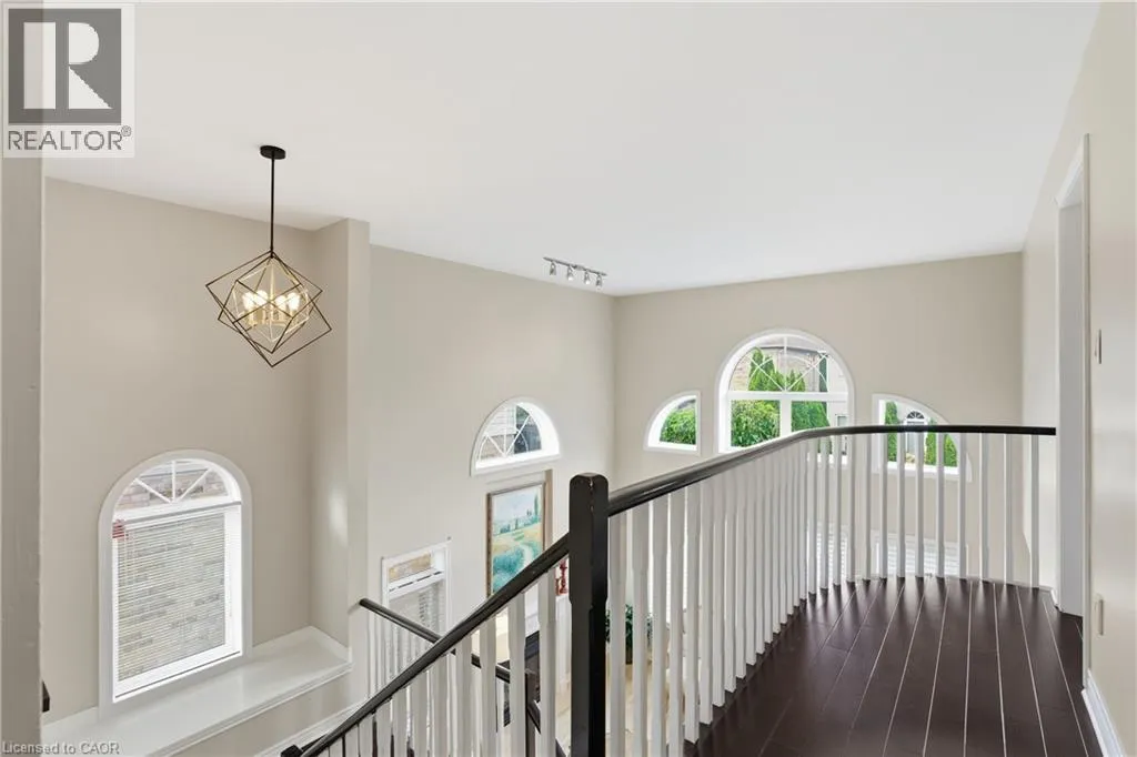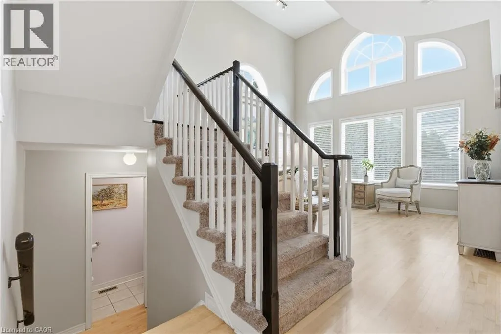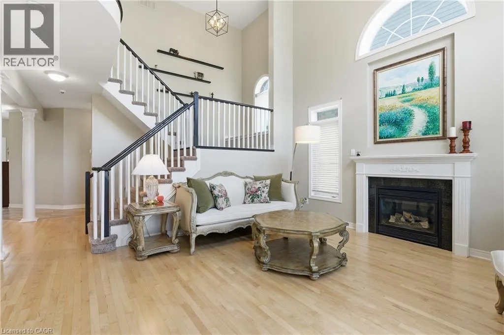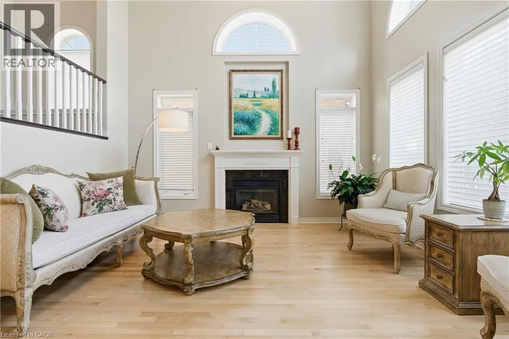 Kitty Murray to Thoroughbred Blvd to Yorkshire Blvd Location is everything! Nestled in the sought-after Meadowlands of Ancaster, this beautiful home offers the perfect blend of convenience and comfortâjust minutes to shopping, highway access, and top-rated schools. Featuring 3 spacious bedrooms and 2.5 bathrooms, this home includes a double car garage with inside entry to a functional mudroom and laundry area. The inviting living room boasts stunning 17-foot vaulted ceilings and a cozy gas fireplace, open to the second-floor balcony for an impressive view. Enjoy hardwood flooring throughout the main level and an eat-in kitchen that walks out to a fully fenced backyard with a cement patioâperfect for entertaining or relaxing. This home truly has it all! (id:27476)